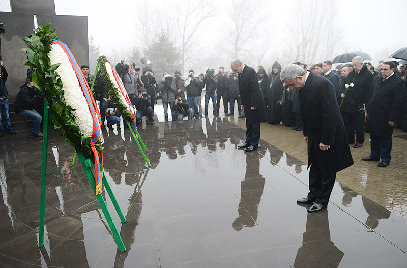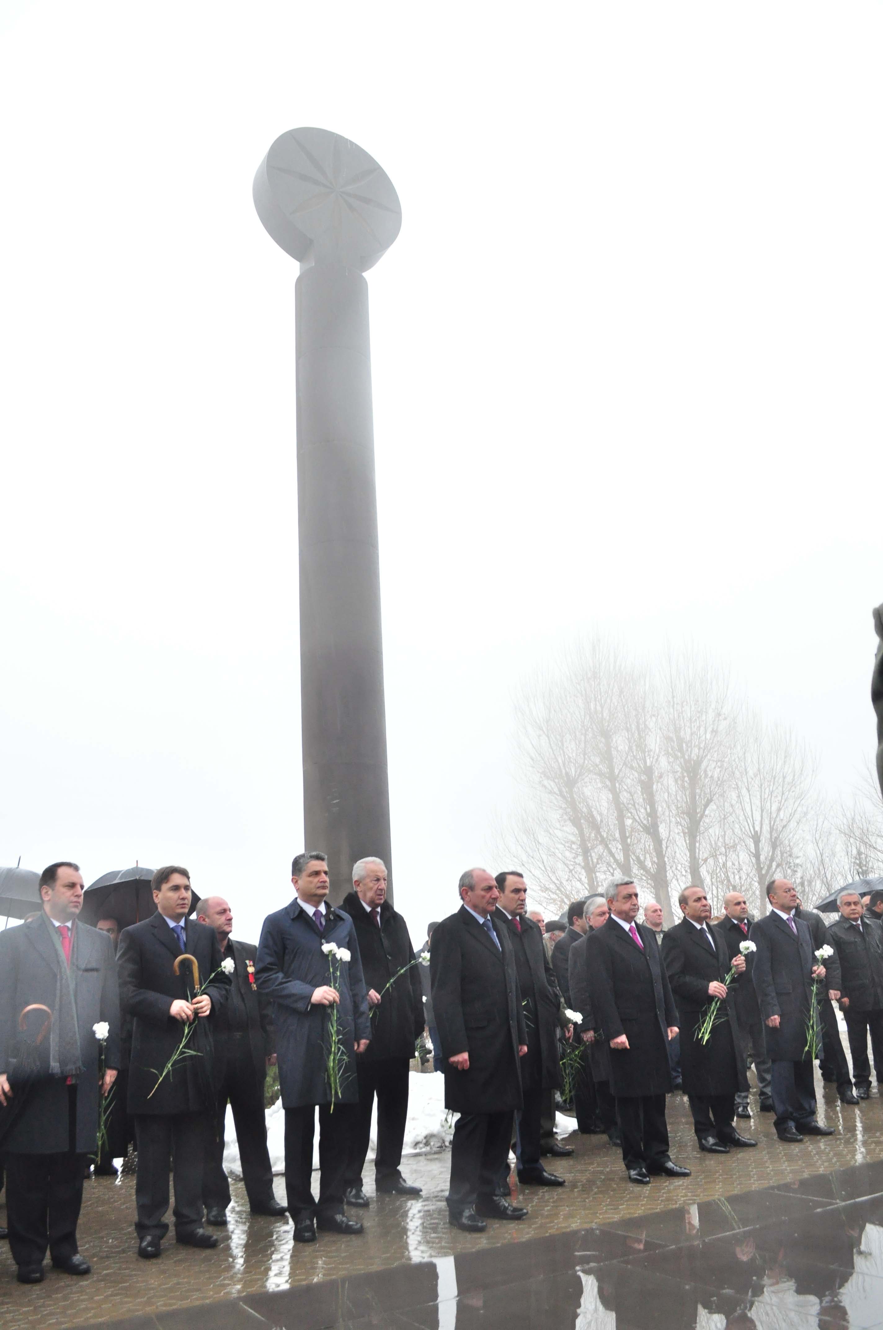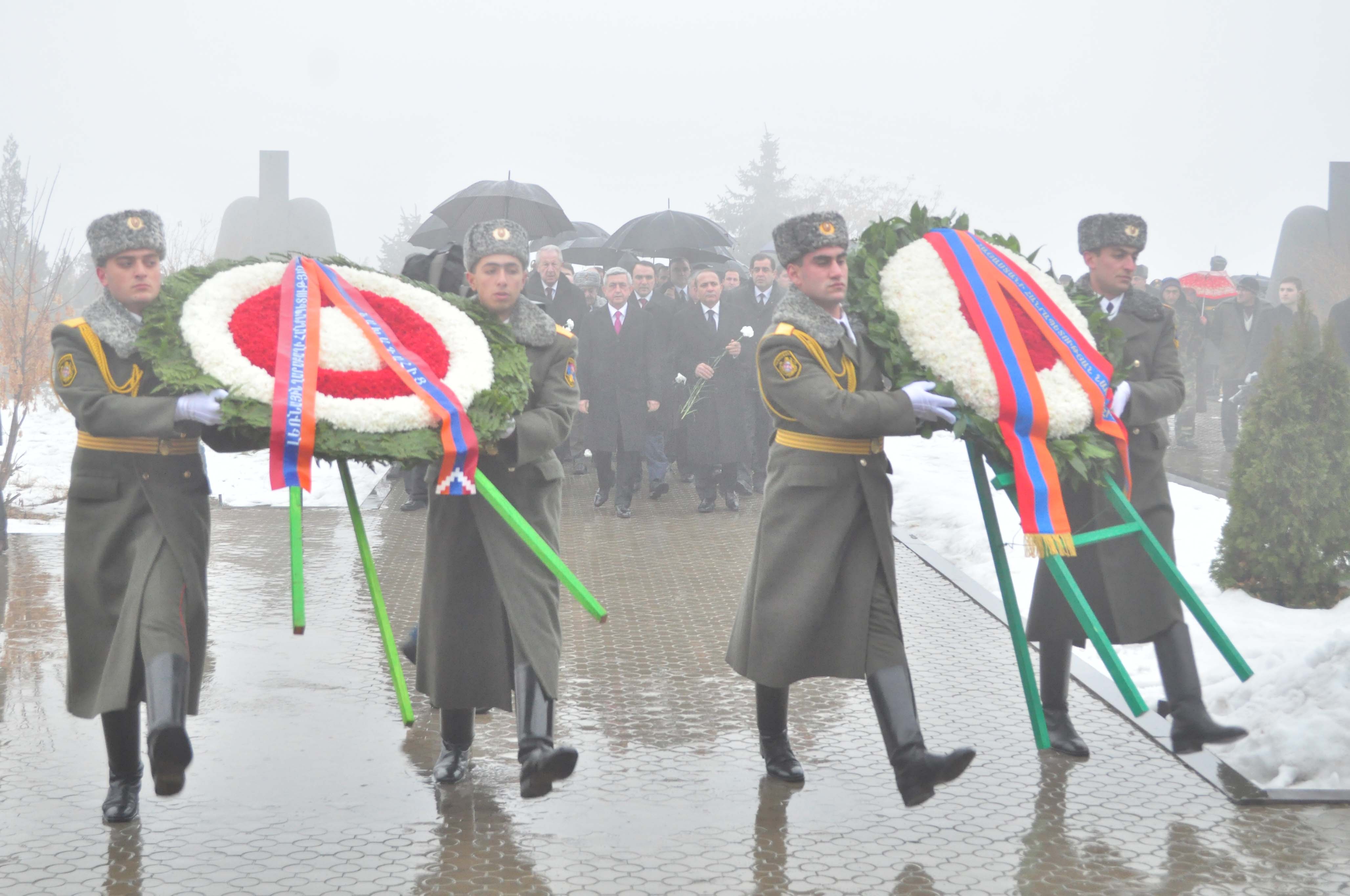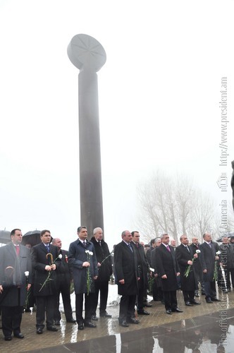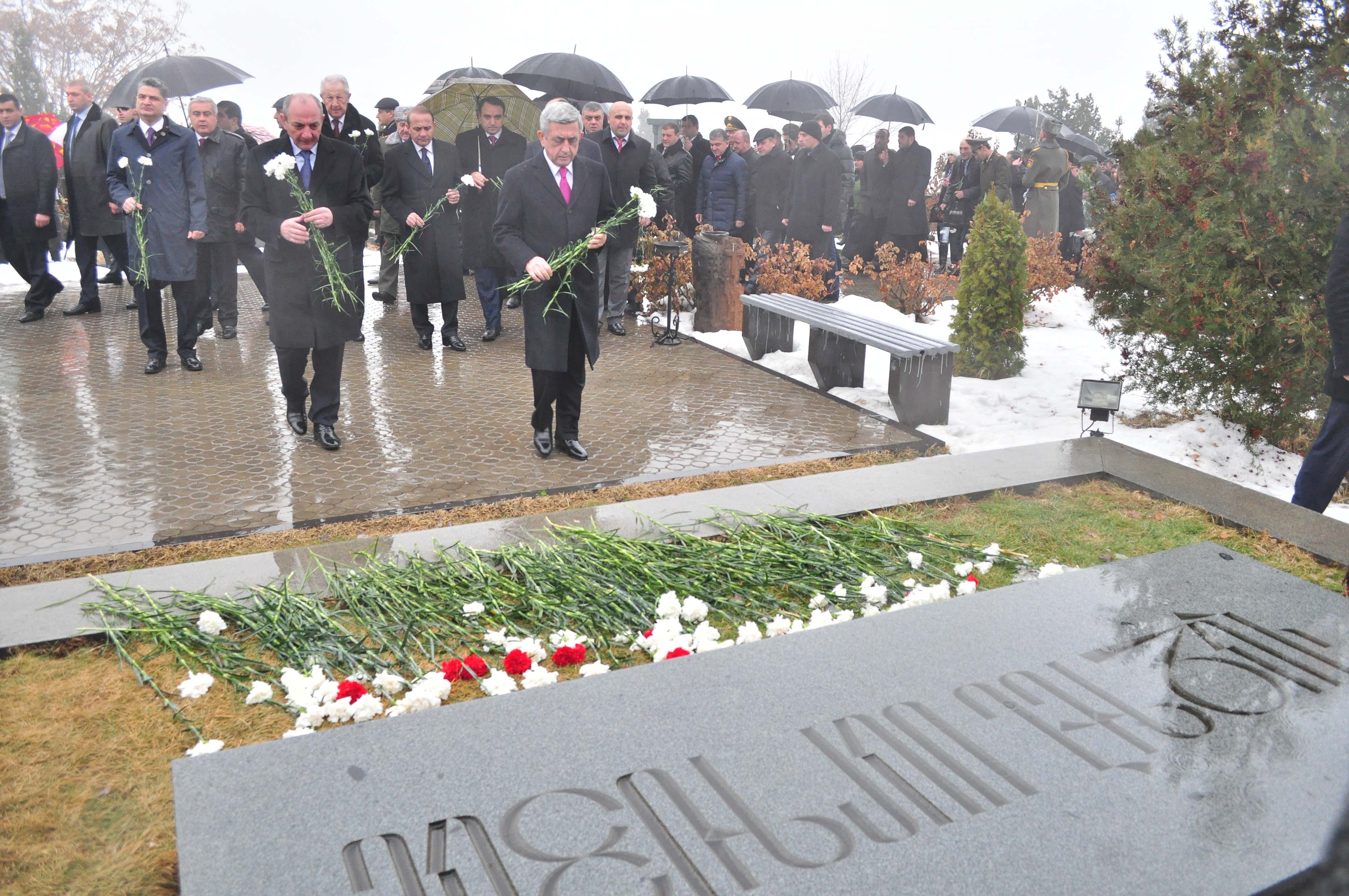 В связи с Днем Армии Президент Серж Саргсян с Президентом НКР Бако Саакяном и в сопровождении высшего руководства РА и представителей армянского духовенства сегодня посетил воинский пантеон «Ераблур» и воздал дань уважения памяти сынов Армении, пожертвовавших своими жизнями во имя независимости Родины.