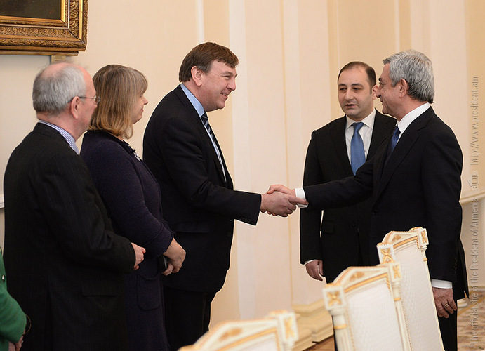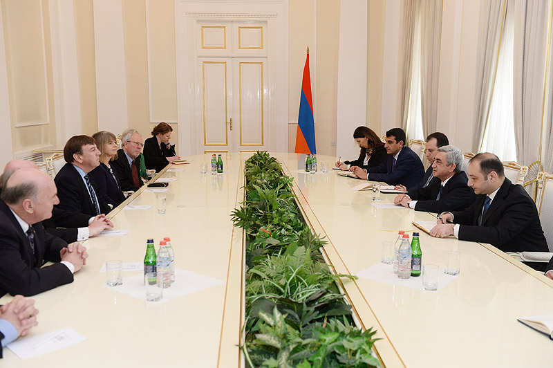 Президент поприветствовал гостей в нашей стране, с удовлетворением констатируя, что некоторые из членов делегации уже несколько раз посещали Армению, хорошо осведомлены о повестке дня армяно-британских отношений и внесли свой вклад в дело развития двустороннего сотрудничества. Серж Саргсян выразил надежду, что впервые посещающие нашу страну другие британские парламентарии будут иметь возможность в дни визита максимально открыть для себя Армению. «В деле углубления отношений Армения-Соединенное Королевство, конечно, я придаю важное значение межпарламентскому сотрудничеству, деятельности британо-армянской группы и уверен, что то оживление, которое мы видим в течение последних двух лет, является также результатом активного участия этой фракции, остальных парламентариев. А мы очень заинтересованы в углублении этих отношений», - подчеркнул Президент Республики.