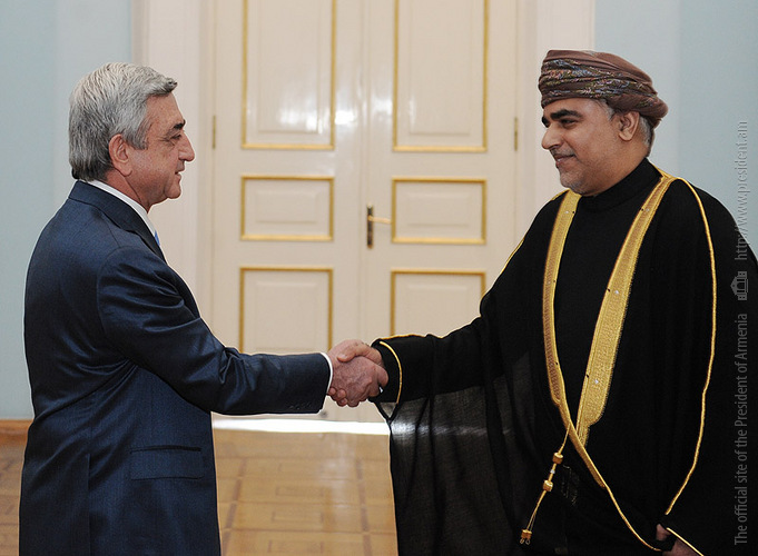 Президент Серж Саргсян подчеркнул, что развитие отношений с арабским миром является одним из первоочередных направлений внешней политики Армении, и Армения придает большое значение развитию отношений с арабскими государствами Залива, в том числе с Султанатом Оман. Для дальнейшего расширения и углубления сотрудничества между двумя странами Президент РА и посол Омана отметили важность совершенствования договорно-правовой базы, в направлении чего уже осуществляются работы: на этапе обсуждения находятся проекты ряда законов, направленных на сотрудничество в различных сферах.