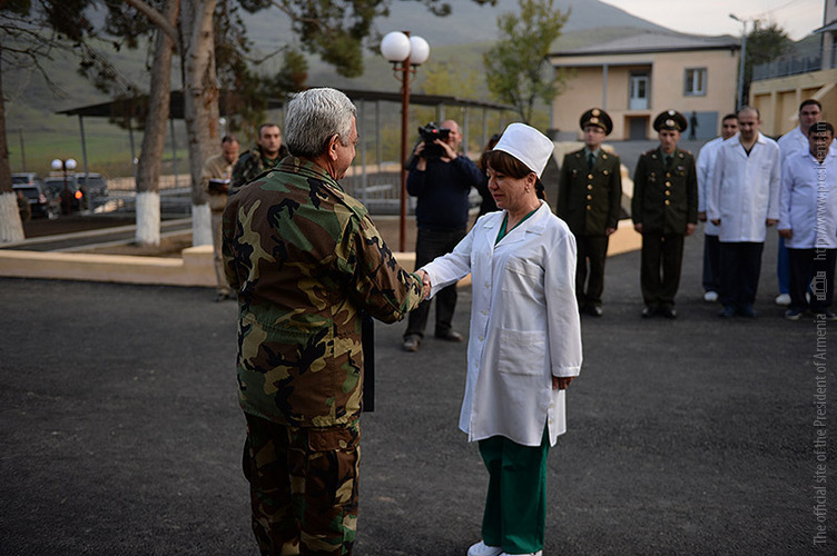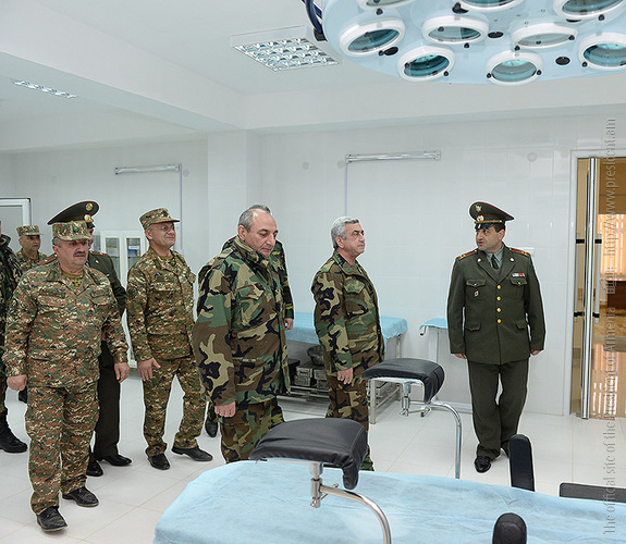 Президенты Серж Саргсян и Бако Саакян сегодня присутствовали также на открытии в городе Мартакерте новопостроенного здания военного госпиталя.
