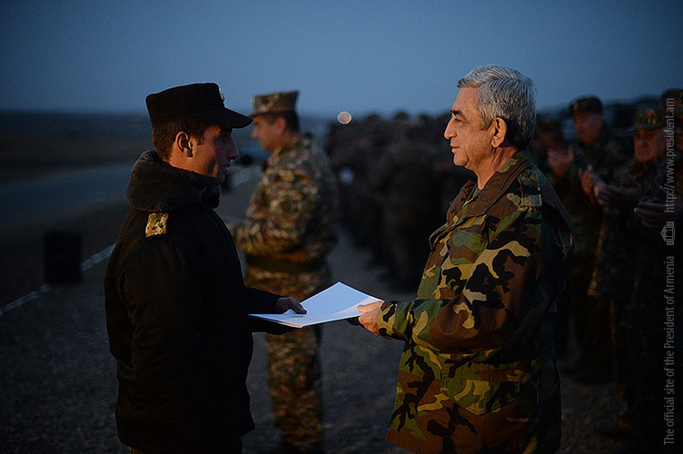 Успешной службы», - сказал в своей речи, адресованной участникам учений, Президент РА, Верховный главнокомандующий Вооруженными силами РА Серж Саргсян.