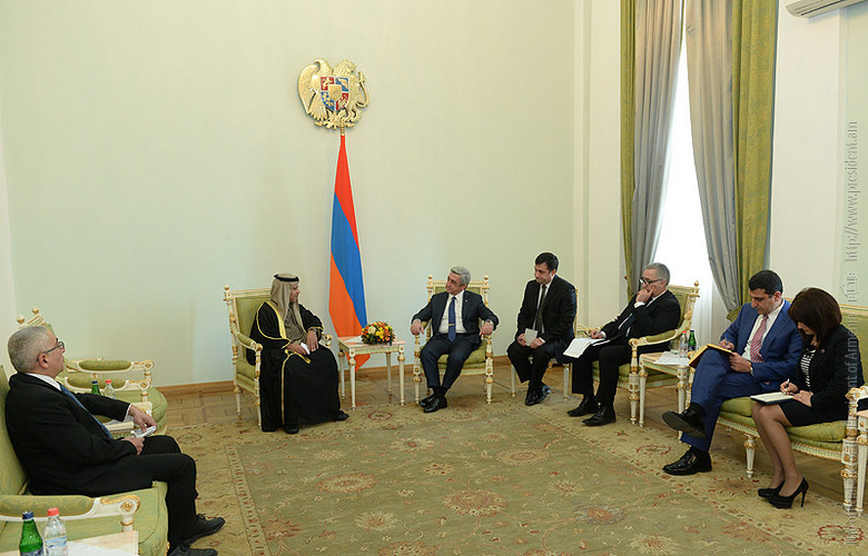 На встрече Президент РА и посол ОАЭ обсудили возможности развития сотрудничества в экономической сфере, привлечения ивестиций и с этой целью реализации конкретных программ в ряде перспективных сфер, таких, как сельское хозяйство, горная промышленность, здравоохранение, туризм, авиация, ювелирное дело и производство бриллиантов, банковская система, инфраструктуры, энергетика и др.