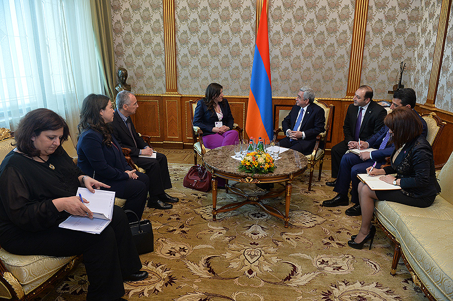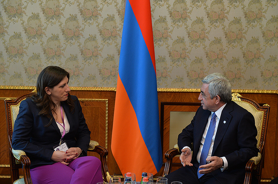 Серж Саргсян поприветствовал высокопоставленную гостью и поблагодарил за прибытие в Армению и участие в имеющих большое значение для армянского народа мемориальных мероприятиях, посвященных 100-летней годовщине Геноцида армян. Пользуясь возможностью встречи, Президент Республики поздравил госпожу Констандопулу со вступлением в высокую должность Председателя Парламента Греции и выразил уверенность, что ее профессиональные способности и энергия наилучшим образом будут служить делу развития дружественной Греции.
