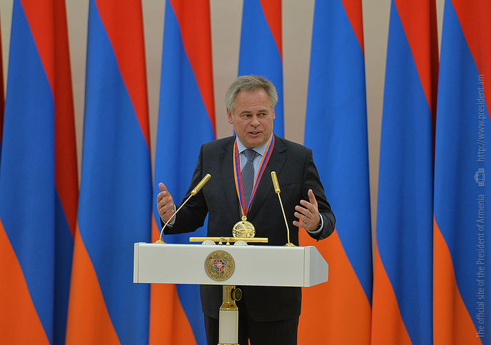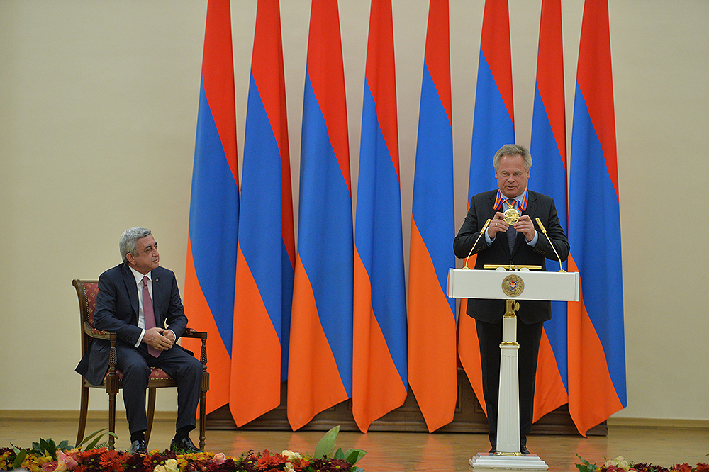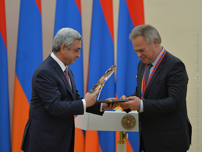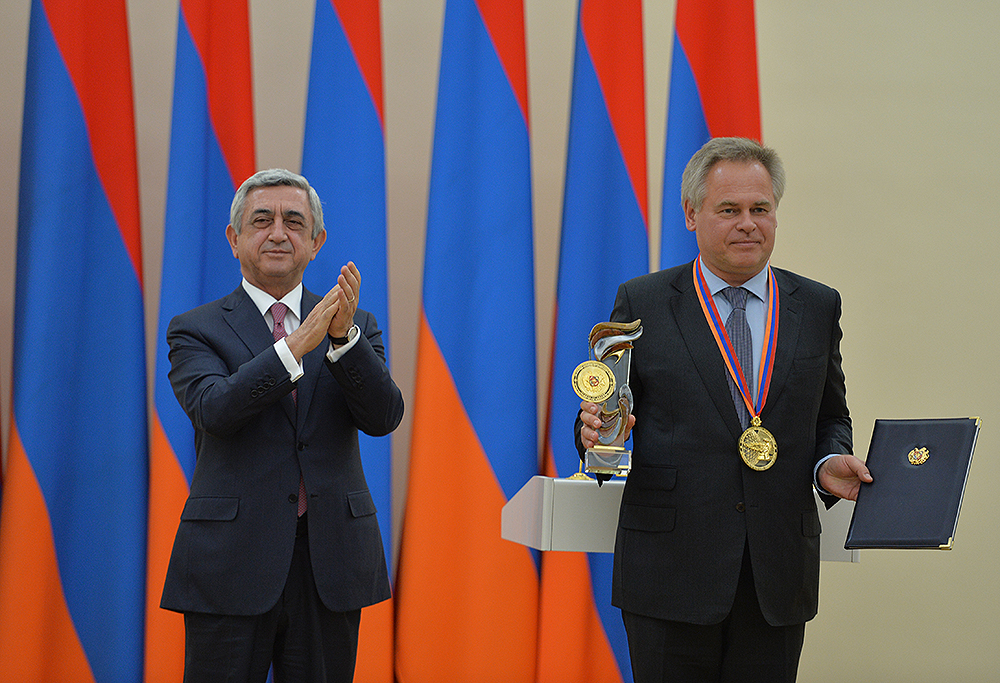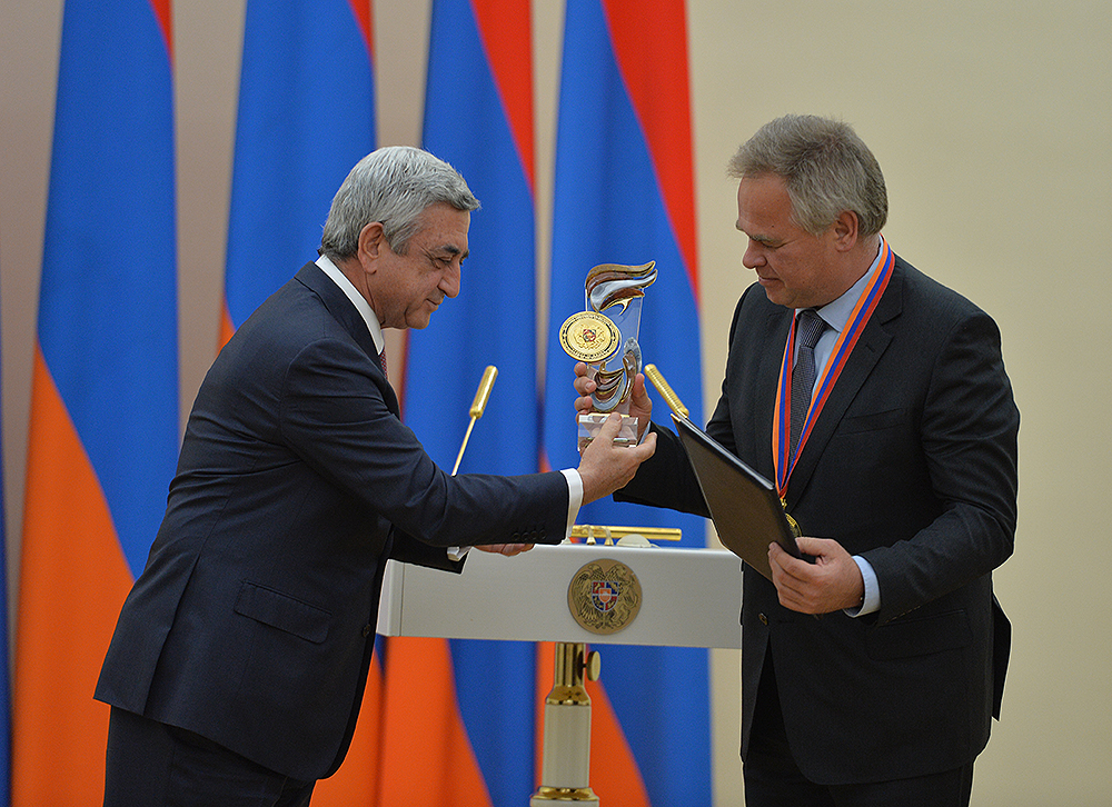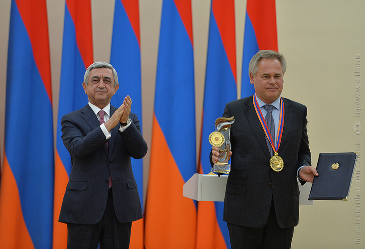 Я с большим удовольствием выполнил приятную обязанность: вручил господину Евгению Касперскому премию Президента Республики Армения «За вклад мирового значения в сферу информационных технологий» за этот год.