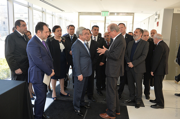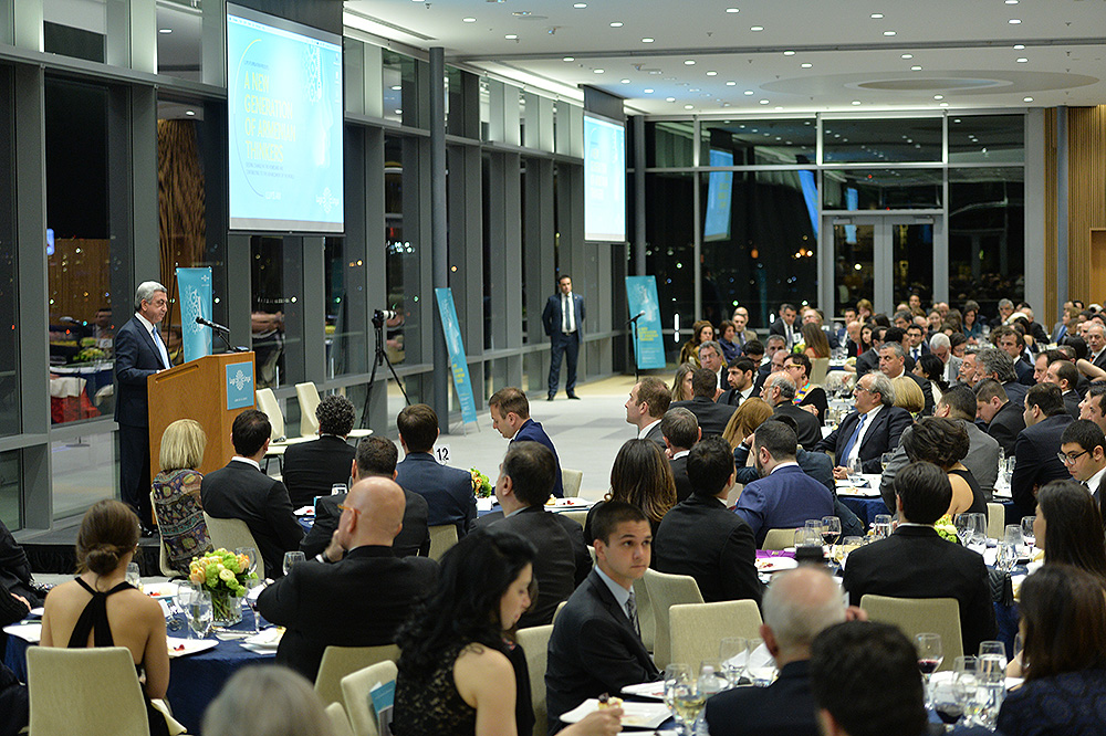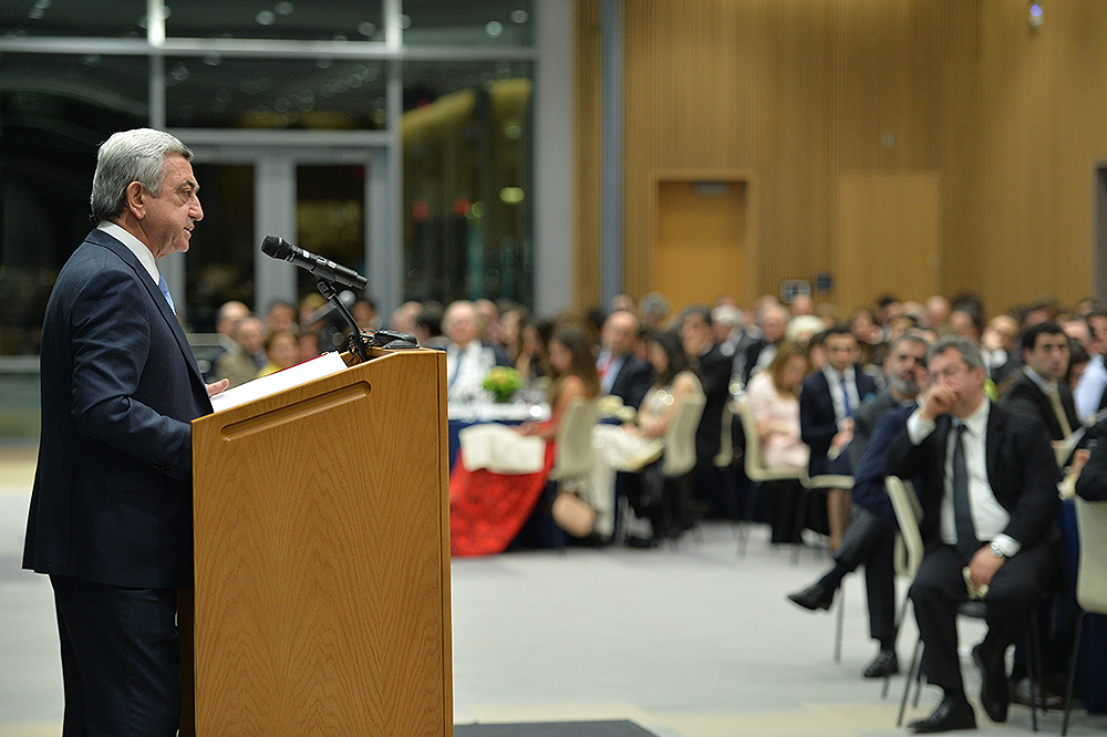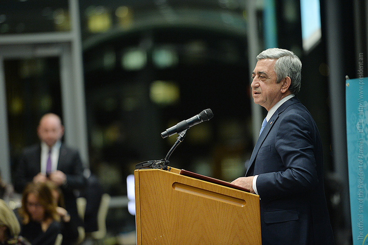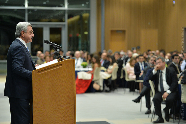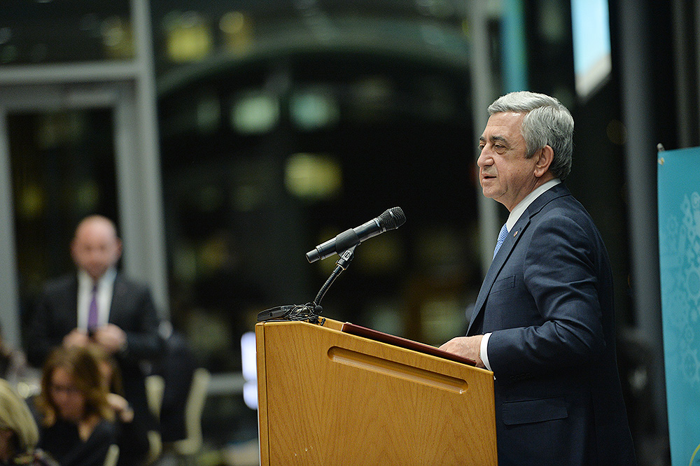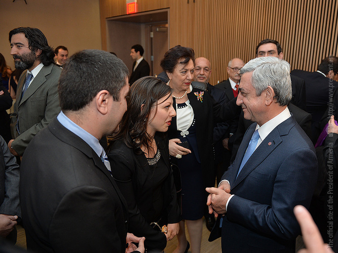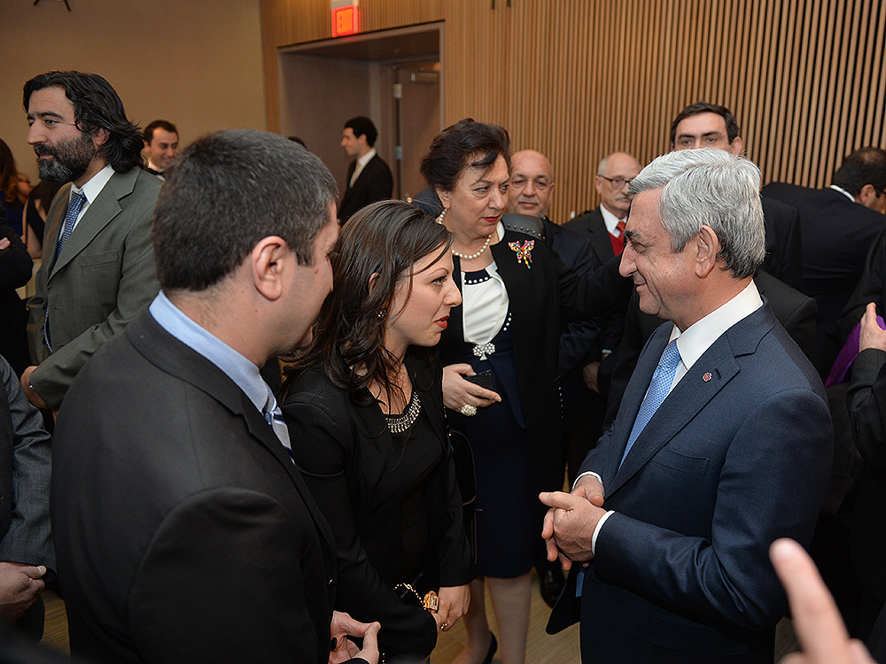 Затем Президент Серж Саргсян отправился в конференц-центр Samberg, где состоялись прием с участием американских ученых армянского происхождения и встреча со стипендиатами и выпускниками фонда “Луйс”. Президент выступил с речью.
