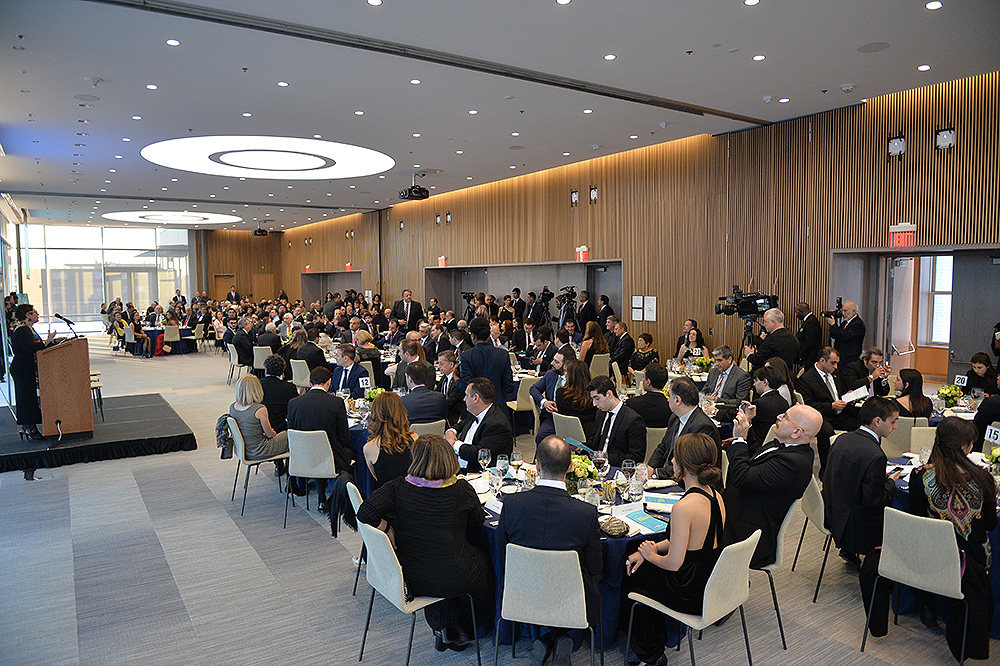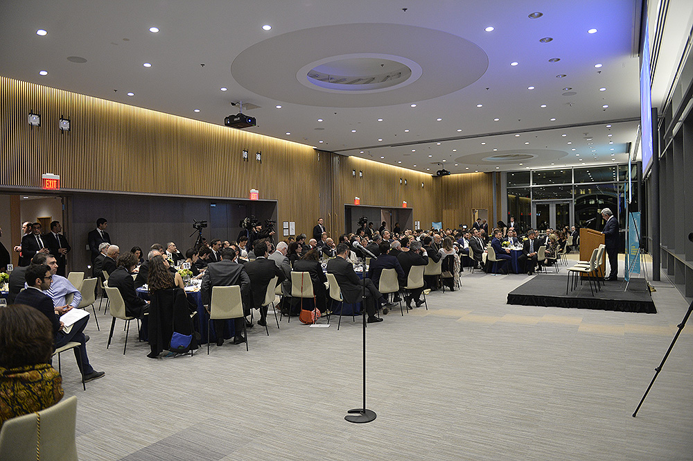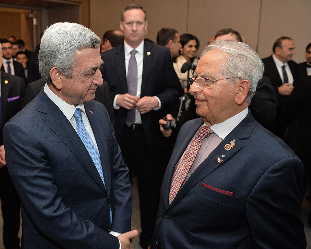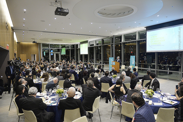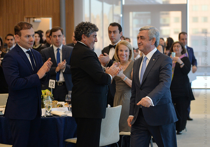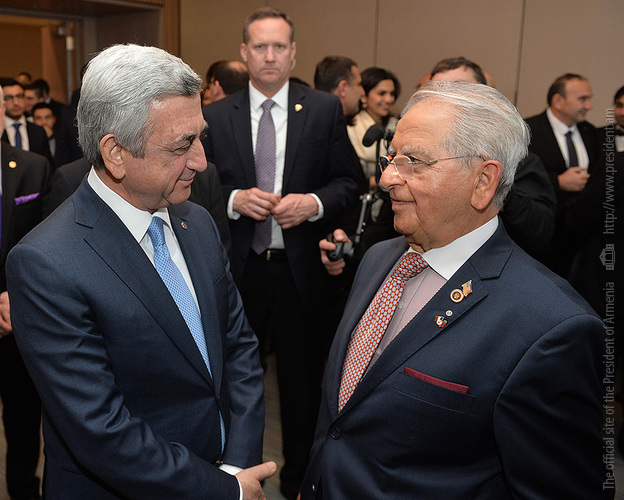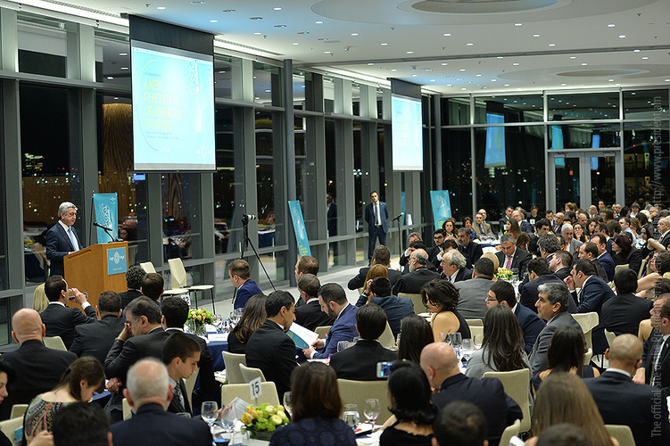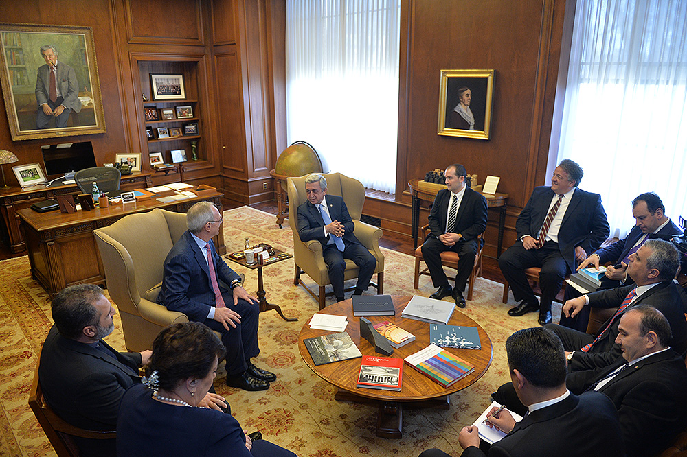 Затем Президент Серж Саргсян отправился в конференц-центр Samberg, где состоялись прием с участием американских ученых армянского происхождения и встреча со стипендиатами и выпускниками фонда “Луйс”. Президент выступил с речью.
