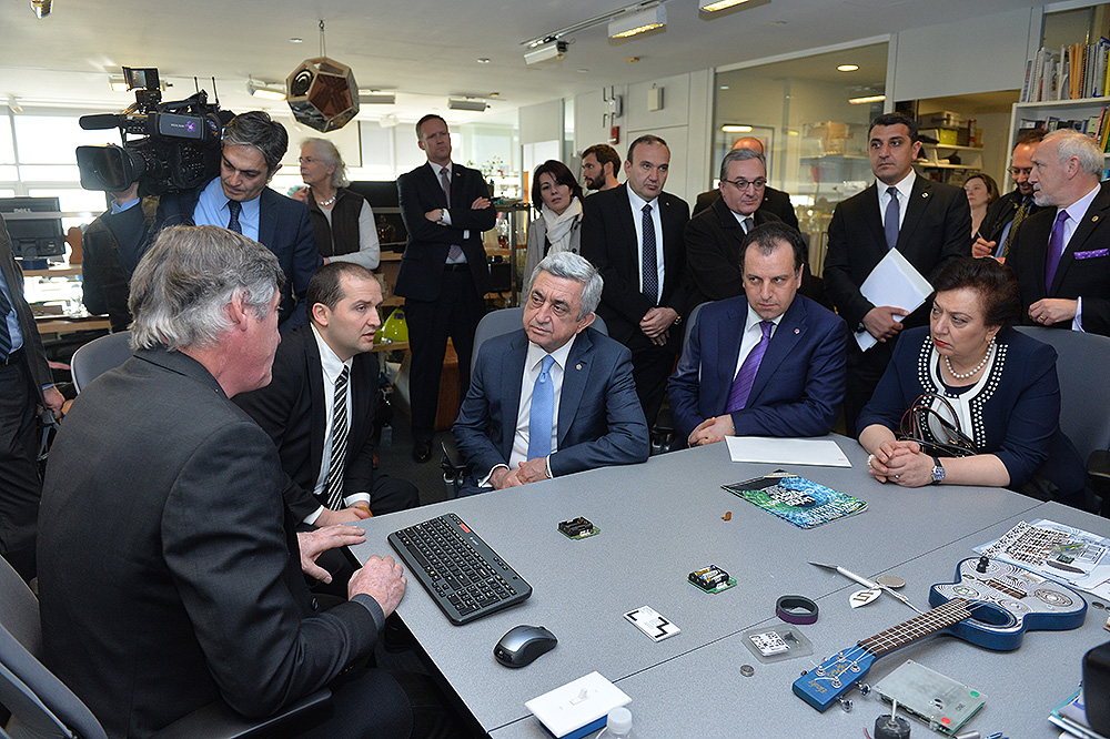 Президенрт Республики в тот же день посетил Массачусетский технологический институт (МТИ) и Медиа- лабораторию этого учебного заведения. Серж Саргсян сначала провел встречу с ректором института Рафаэлем Райфом, после чего совершил экскурсию по Медиа-лаборатории в сопровождении соучредителя Медиа-лаборатории Николаса Негропонте и исполнительного директора образовательной программы фонда “Луйс” Жаклин Караасланян.