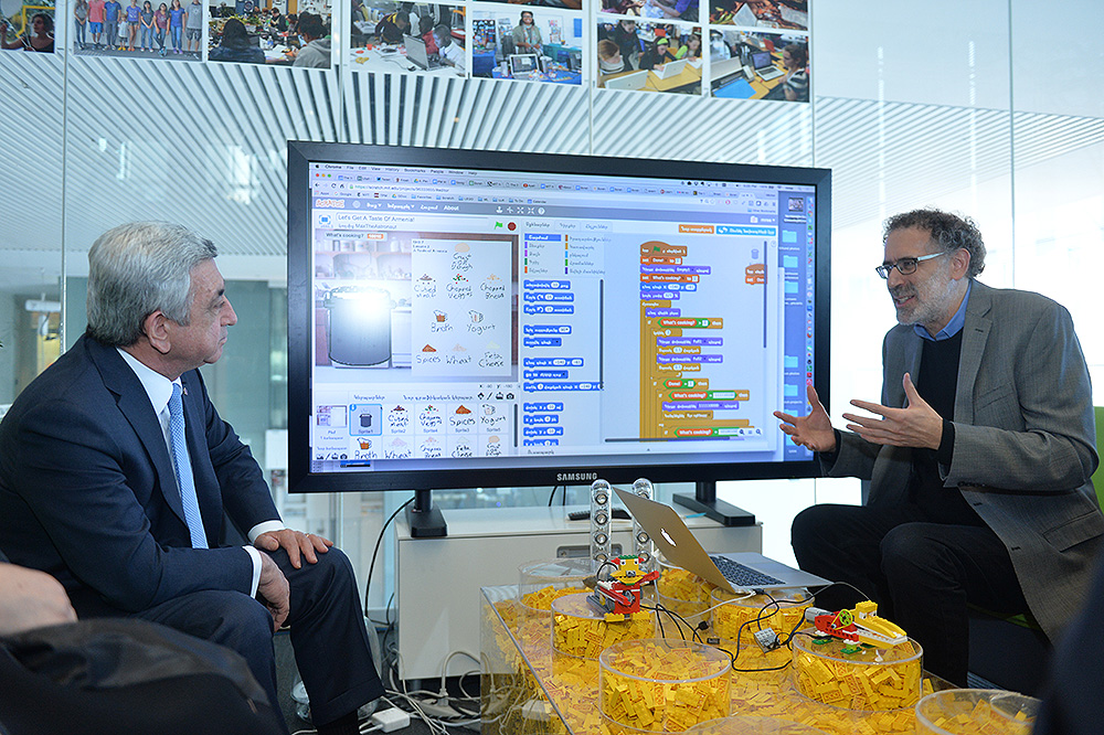 Сотрудничество армянских партнеров с медиа лабораториями Массачусетского технологического института существенно обогатило систему образования Армении новаторскими идеями и проектами. Созданную в Армении школу «Айб» можно по праву считать результатом этого. В наших поисках нового образовательного содержания и создания среды большую роль сыграл ряд известных ученых, в частности, Сеймур Паперт и Билл Митчелл. Мы очень благодарны. В этом году в Армении открыли две лаборатории искусственного интеллекта, которые дали большую возможность для новаторства и творчества армянским молодым людям, интересующимся инженерией и технологиями. Внедрение разработанной в этом институте программы «Перевернутая классная комната» дает в Армении ощутимые результаты и существенно меняет представления учеников и учителей о современном образовании.