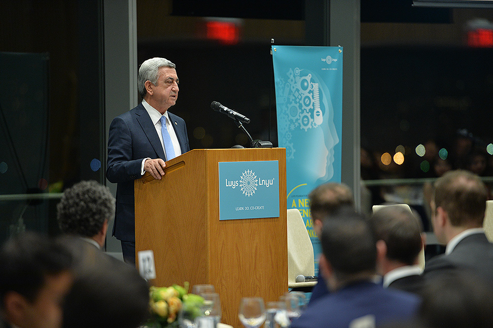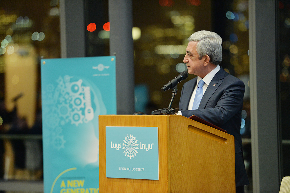 Для того чтобы воспитать новое конкурентоспособное поколение, мы создали Фонд «Луйс», который предоставляет стипендии для армянских молодых людей, поступивших в ведущие университеты мира. Конечно, существует опасение, что мы можем потерять наши человеческие ресурсы. Однако, как по одному случаю мне сказал светлой памяти премьер-министр Сингапура Ли Куан Юнь, даже если наши соотечественники не вернутся на родину после учебы, всё равно, они являются нашим богатством вовне, благодаря им мир узнает нас, они разными способами помогают как стране, которая их приняла, так и развитию собственной родины.