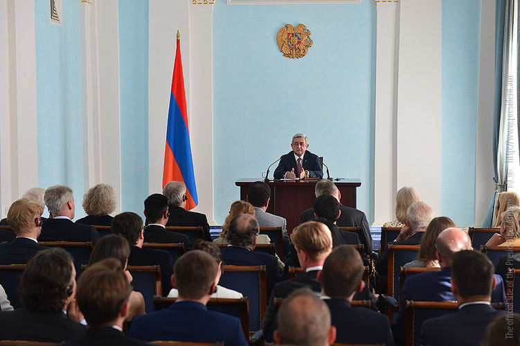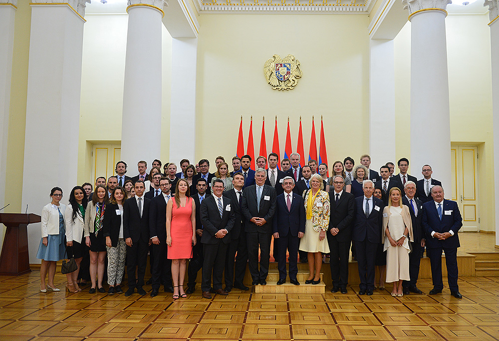 Президент Серж Саргсян сегодня принял участников XV Форума молодых лидеров, организованного «Global Bridge», из около 50 стран мира. Во встрече также приняли участие посол Германии в Армении Матиас Кислер, президент организации «Global Bridge» Ханс Альбрехт и исполнительный вице-президент организации Беате Линдеман.