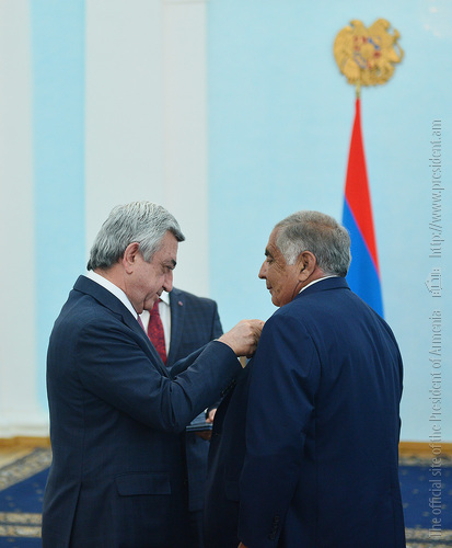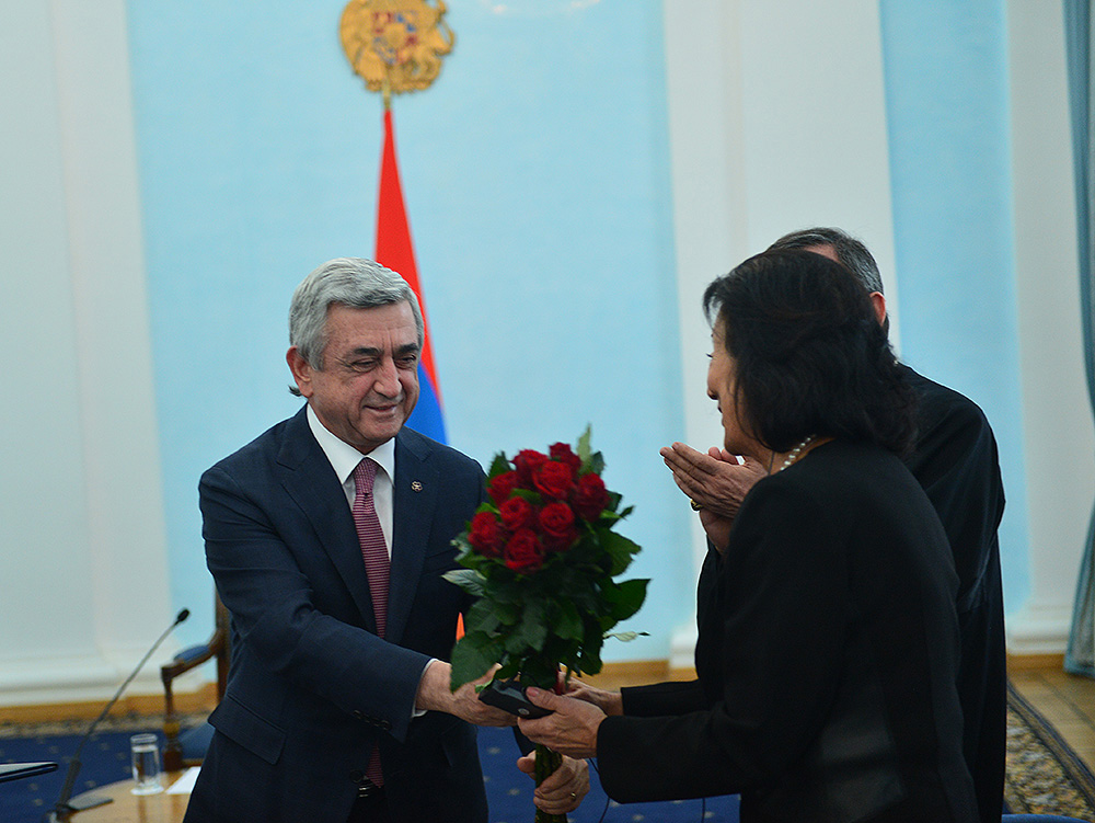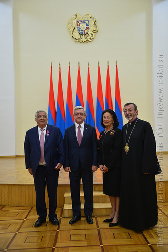 В ходе встречи Президент Республики вручил благотворителям Эдварду и Жанет Мардиганянам высокие государственные награды – медали «За заслуги перед Отечеством» I степени, которых они удостоены на днях по случаю 25-летия независимости РА и за значительный вклад в дело укрепления связей Родина-Диаспора, поздравил и поблагодарил за многолетнюю патриотическую деятельность.