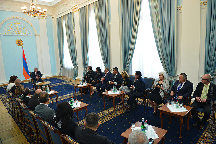 Президент Серж Саргсян ответил на интересующие участников встречи вопросы, которые касались перспектив развития Армении, экономических приоритетов, государственной политики по привлечению инвестиций и стимулированию экспорта, программ содействия сирийским армянам и ряда других тем.