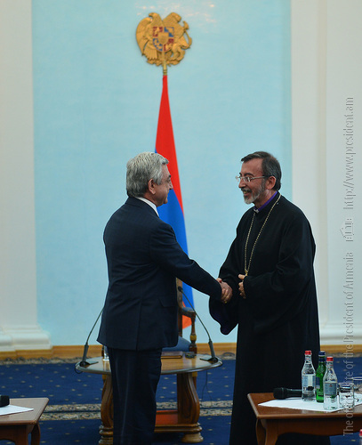 Президент Серж Саргсян сегодня принял делегацию Фонда армянской помощи (ФАП) во главе с предстоятелем Восточной епархии США Армянской Апостольской церкви, президентом Фонда армянской помощи архиепископом Хажаком Парсамяном.
