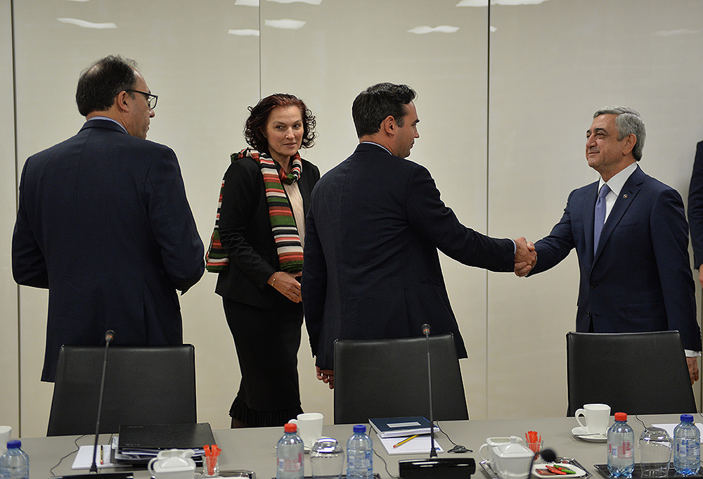 Вы приняли участие в Варшавском саммите, потому что Ваша страна внесла важный вклад в осуществляемую в Афганистане миссию НАТО "Решительная поддержка". Очень благодарен за участие Армении в военном присутствии НАТО в Афганистане, направленном на борьбу с терроризмом, и за вклад в это дело. Армения также помогает нашей миротворческой миссии в Косово, что способствует обеспечению стабильности на Западных Балканах. Армянские войска помогают установить стабильность в этих странах. Мы благодарны за внесённый Вами вклад, который помогает сделать Евроатлантический район стабильным и наиболее безопасным.