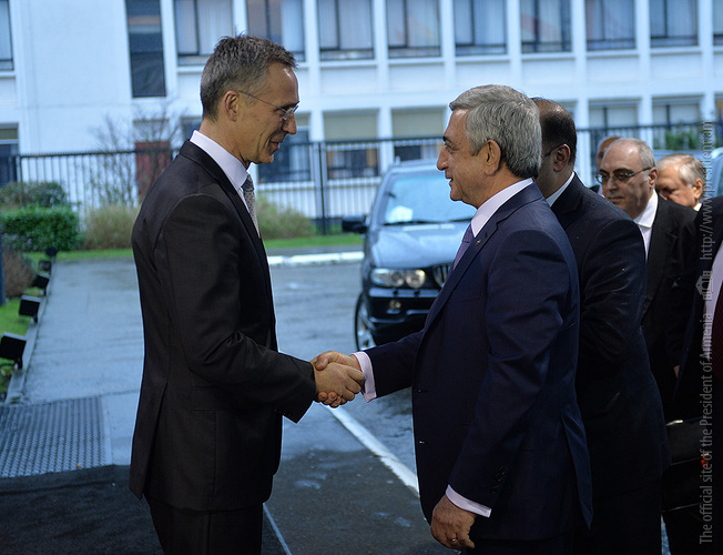 Президент Серж Саргсян сегодня в рамках рабочего визита в Королевство Бельгии в штаб-квартире НАТО встретился с Генеральным секретарём НАТО Йенсом Столтенбергом.