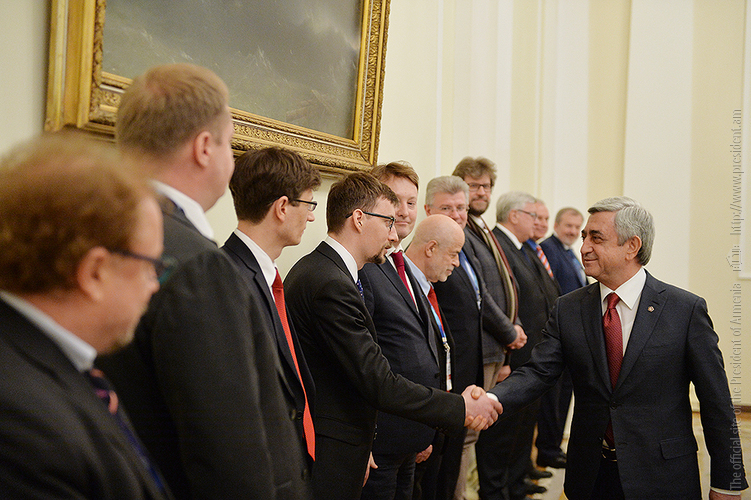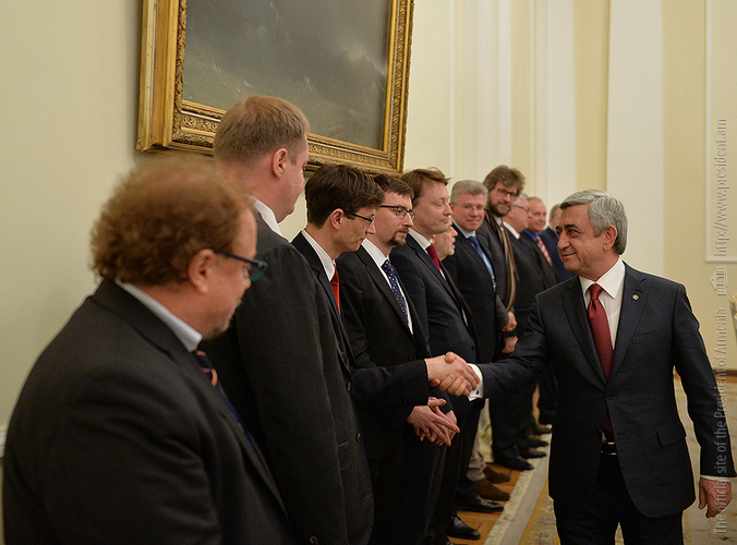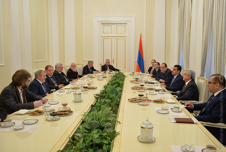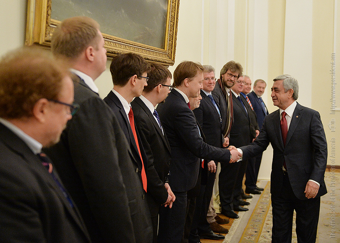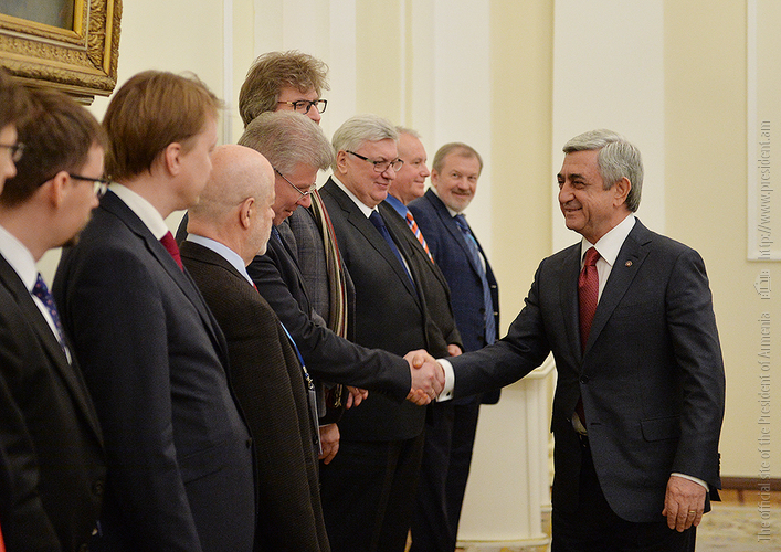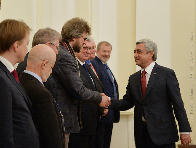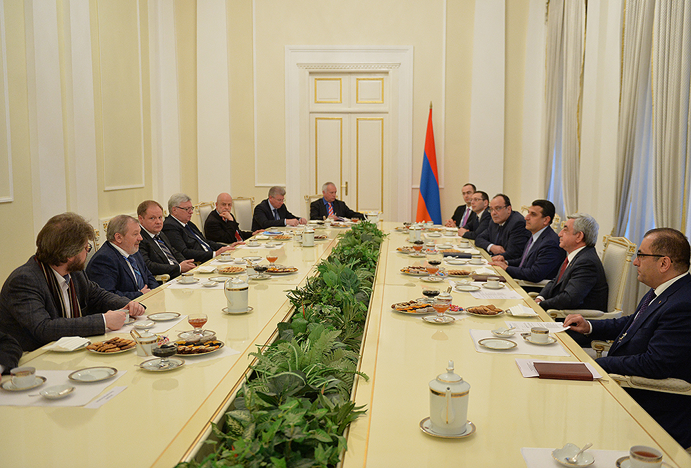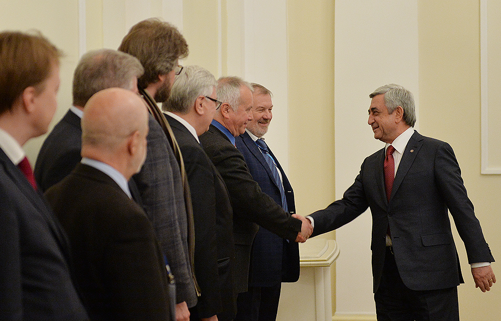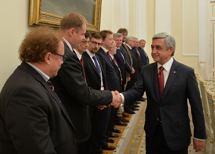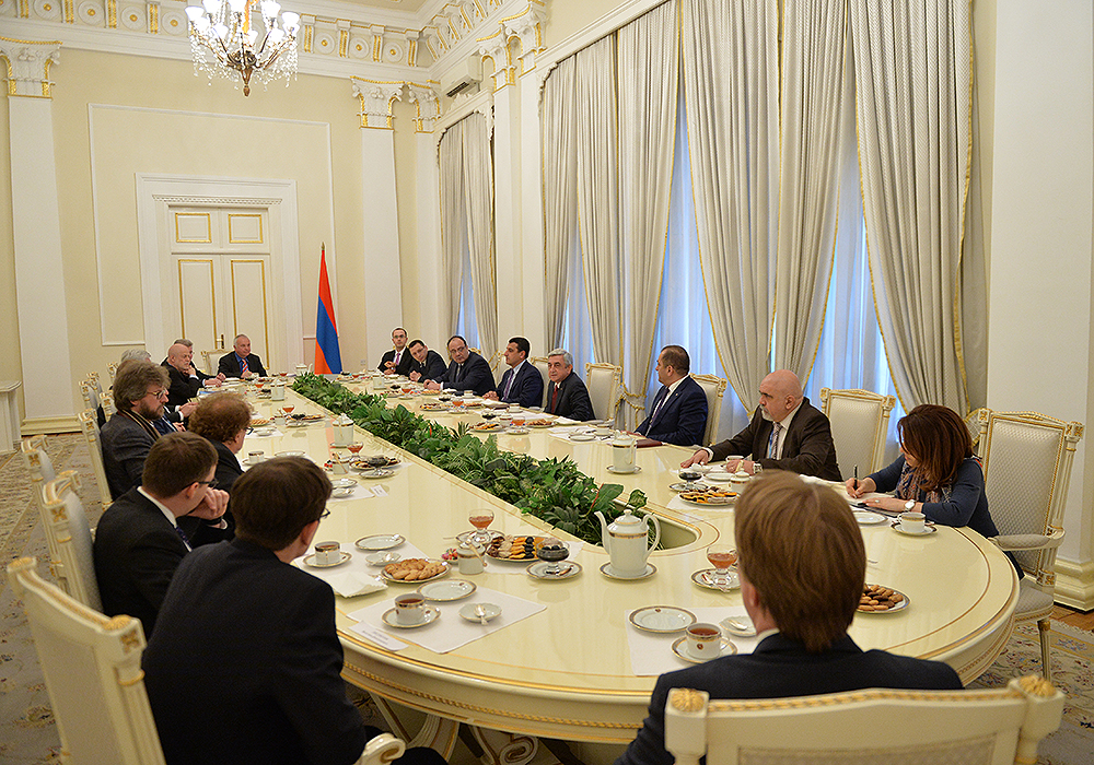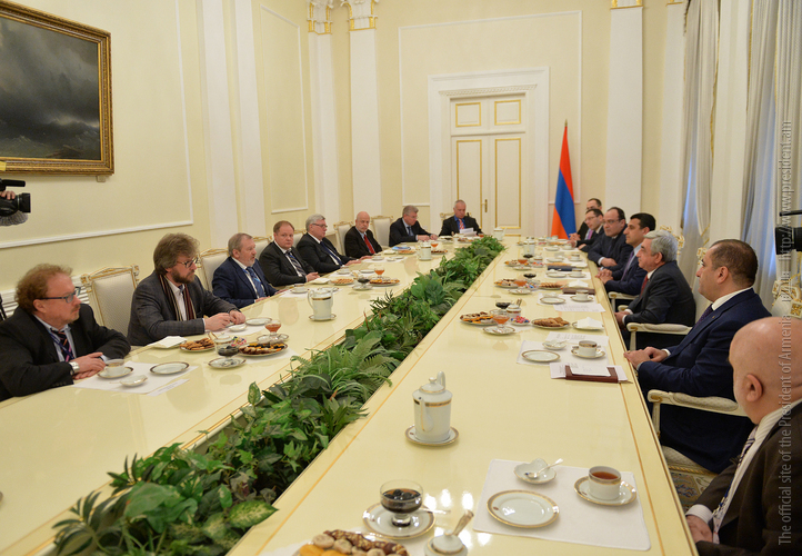 Президент Серж Саргсян сегодня принял группу авторитетных участников ереванского заседания международного дискуссионного клуба "Валдай". Темой выездного заседания клуба было "Время перемен: мир в эпоху глобальной непредсказуемости". В рамках мероприятия свои точки зрения представили эксперты клуба и представители научного сообщества Армении, приглашённые на обсуждения государственные официальные лица.