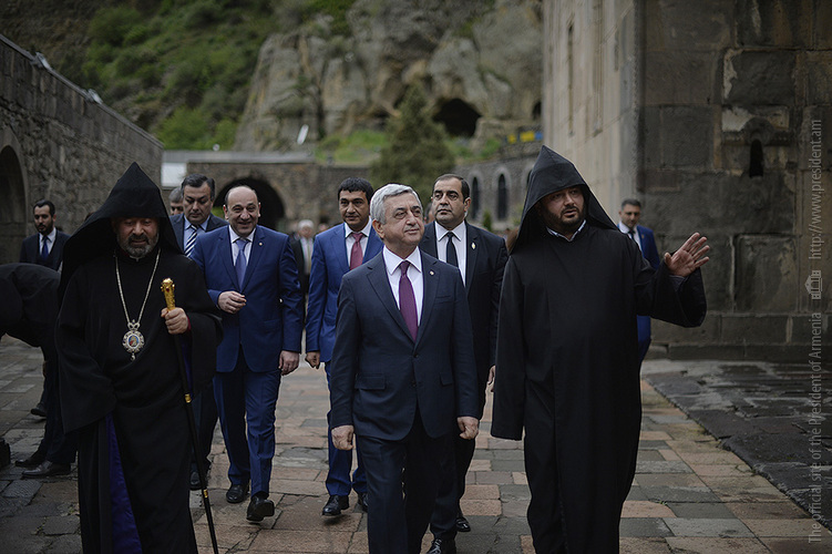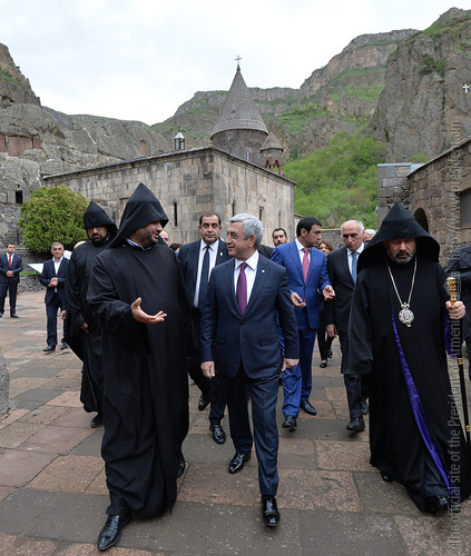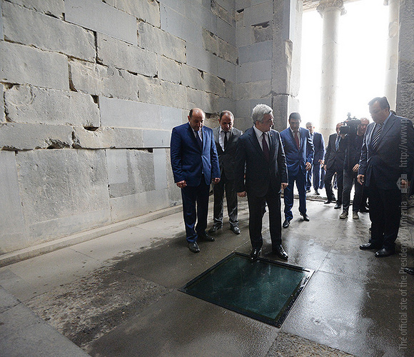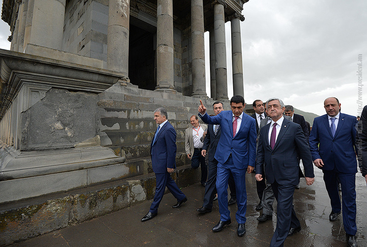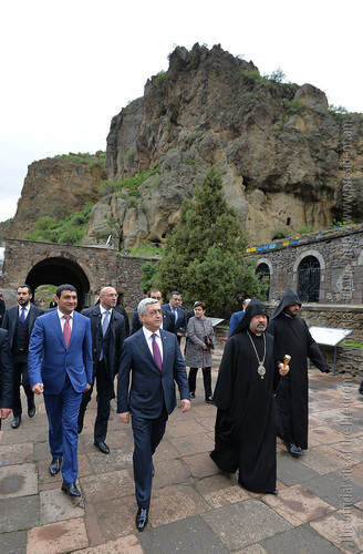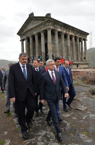 Президент Серж Саргсян сегодня с рабочим визитом посетил общины Гарни и Гохт Котайкского марза. Президент Республики в сопровождении исполняющего обязанности вице-премьера, министра международной экономической интеграции и реформ Ваче Габриеляна, и.о. министра экономического развития и инвестиций Сурена Караяна, и.о. министра культуры Армена Амиряна, руководителей органов местного и территориального управления и ряда других официальных лиц совершил экскурсию по историко-культурному музею-заповеднику "Гарни". Президент ознакомился с планами внедрения в музее-заповеднике современных технических возможностей по развитию инфраструктур и организации туристических посещений, а также с ходом организации намеченных по программе "Развитие местной экономики и инфраструктур" дорожно-строительных и других работ и возможными инвестиционными проектами в частно-государственном формате, побеседовал с жителями общины Гарни.