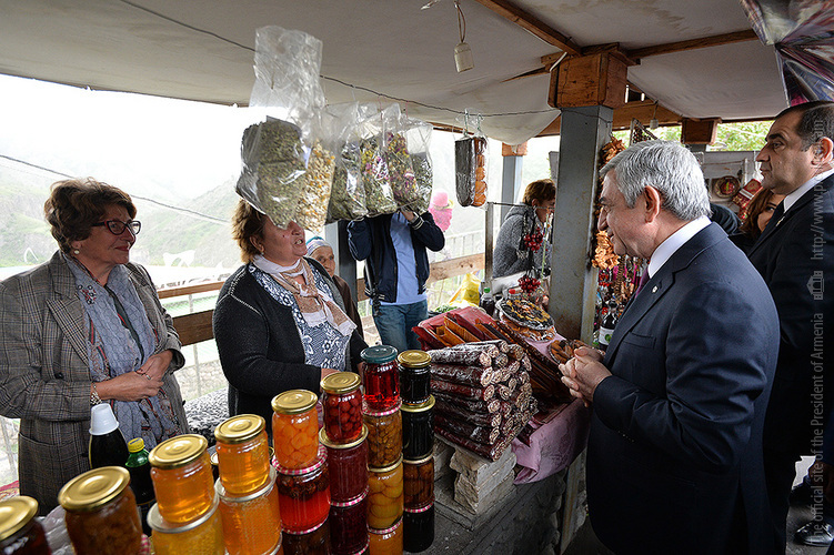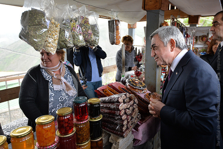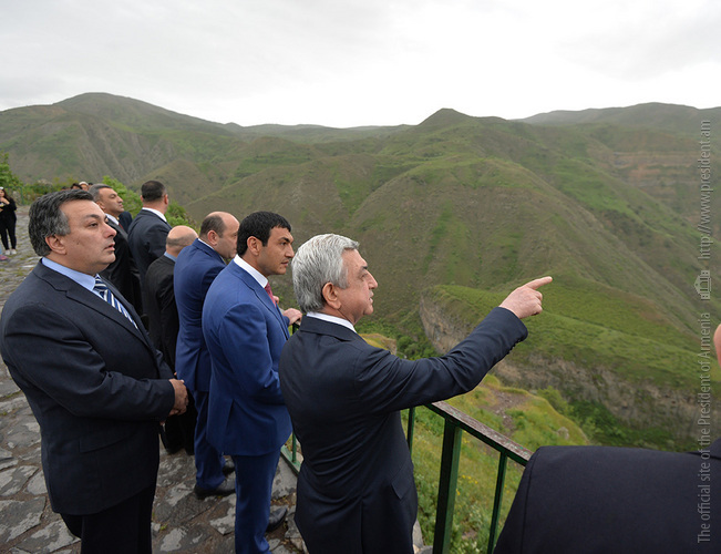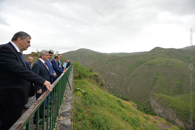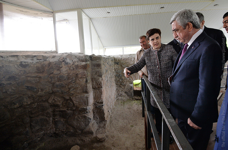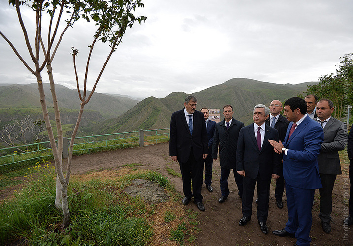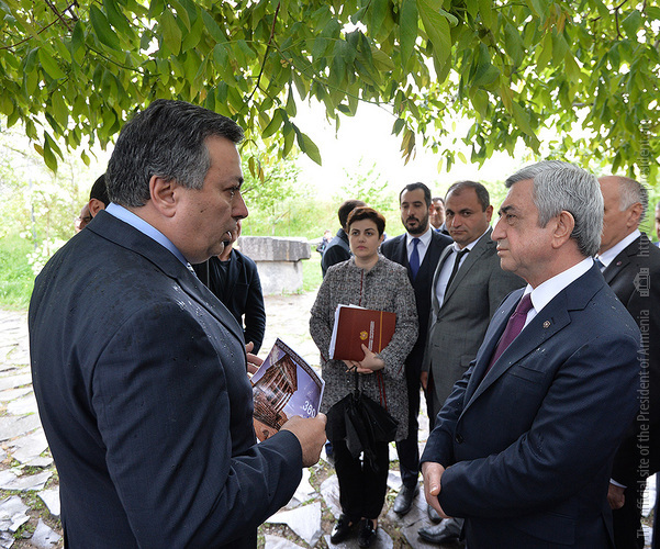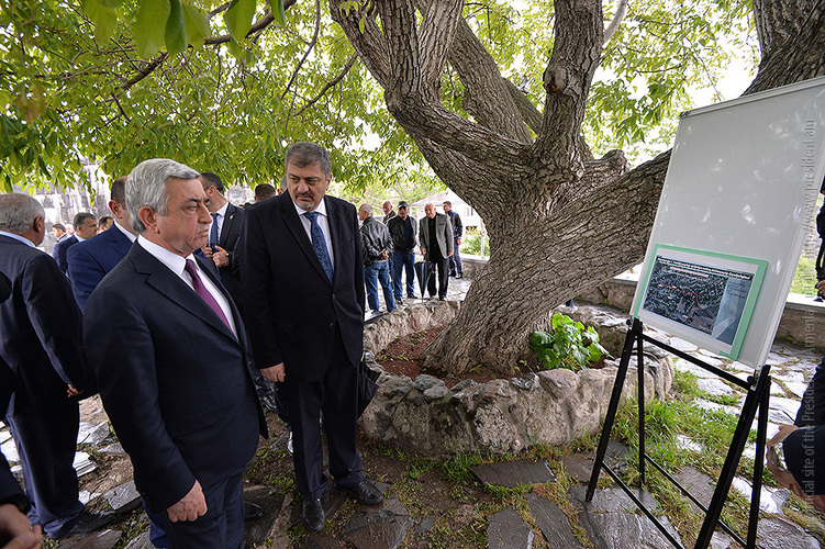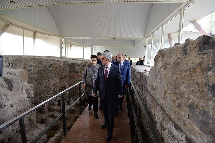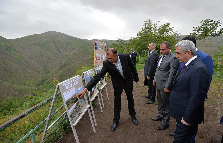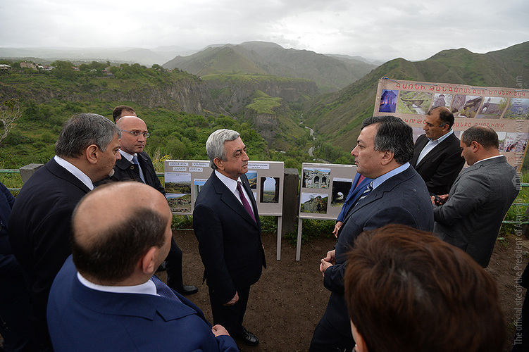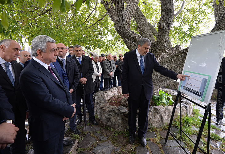 В ходе экскурсии доложено о ходе выполнения поручений, которые были даны во время ранее состоявшегося у Президента Республики совещания, посвящённого обсуждению приоритетов Котайкского марза, в том числе, развития возможностей туристического потенциала.
