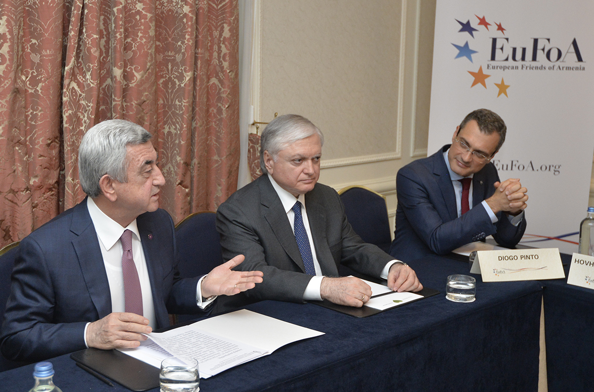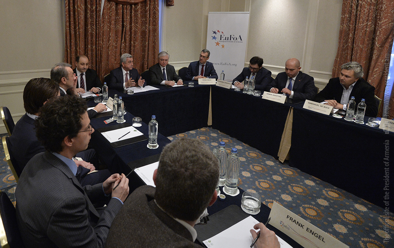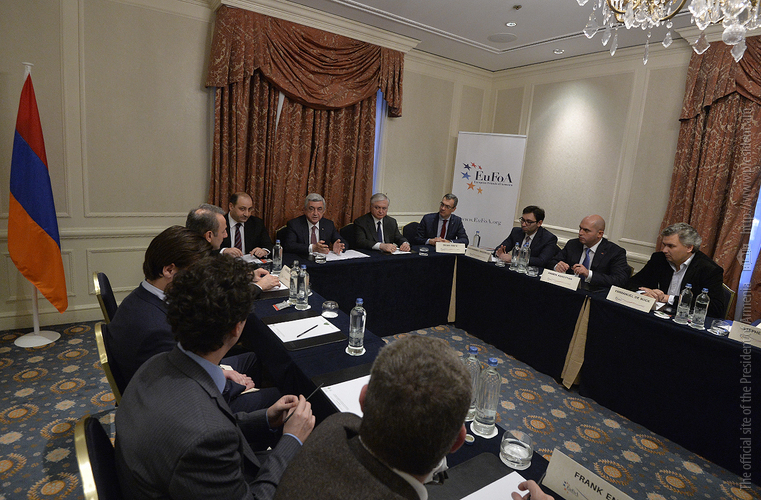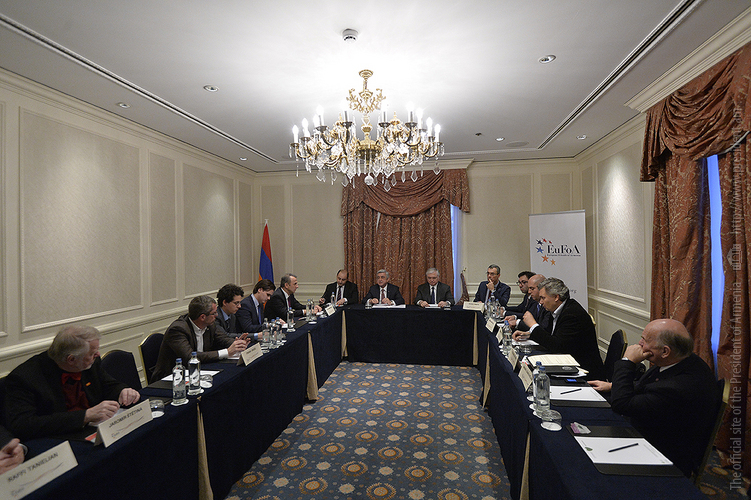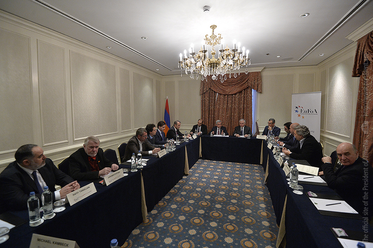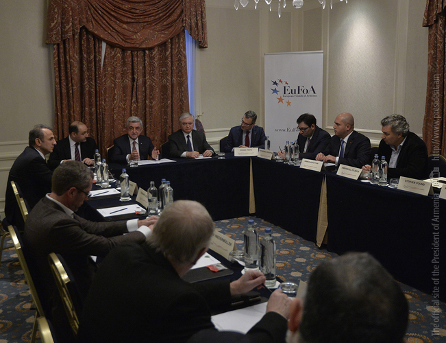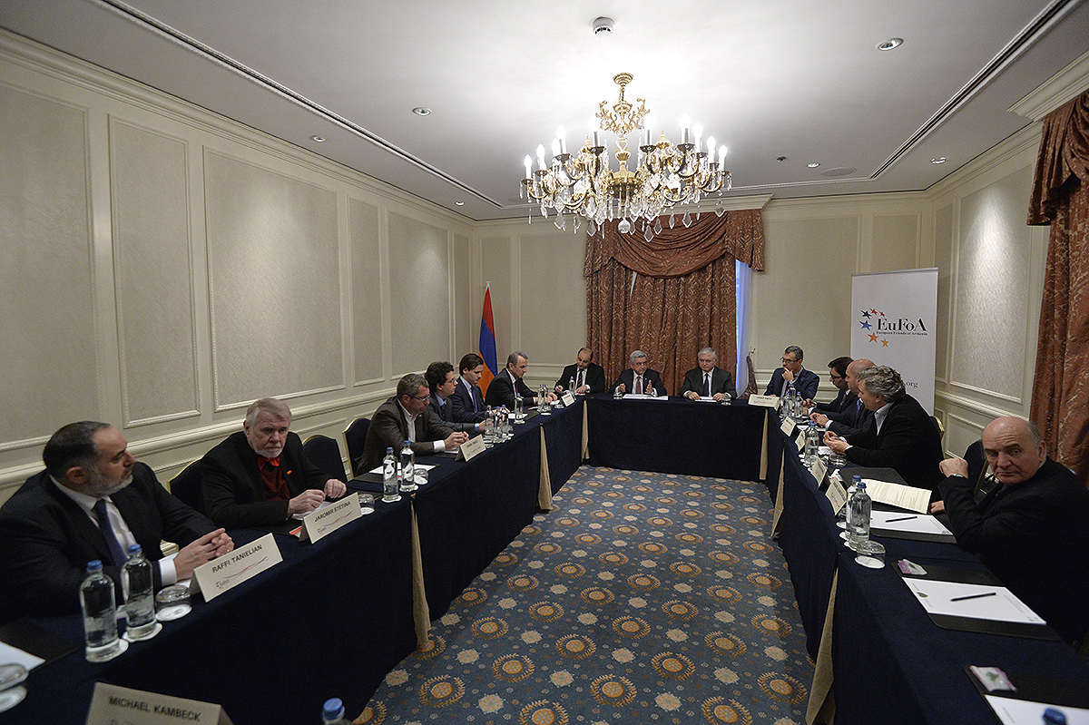 Президент Республики приветствовал участников встречи и подчеркнул важность подобных контактов с друзьями Армении, которые, по оценке Президента, приняли на себя важную и ответственную миссию. Серж Саргсян выразил благодарность организации за постоянную поддержку Армении, отметив, что «Европейские друзья Армении» делая слышимым голос Армении на европейских площадках, всесторонне представляя касающиеся страны вопросы и поднимая уровень осведомлённости об Армении в Европе и таким образом формируя мнение об Армении, делают ценную и значительную работу, одновременно способствуя укреплению сотрудничества с европейскими странами и структурами и сплачивая друзей Армении.