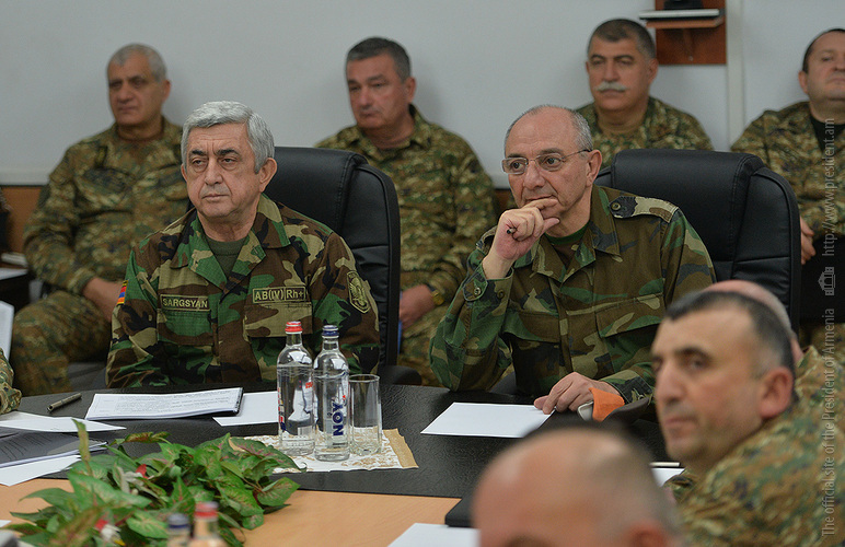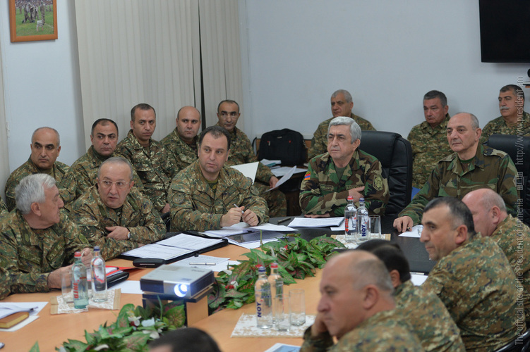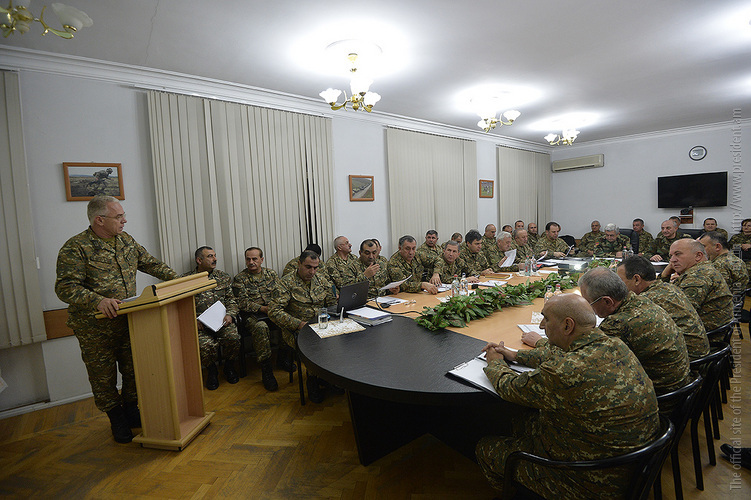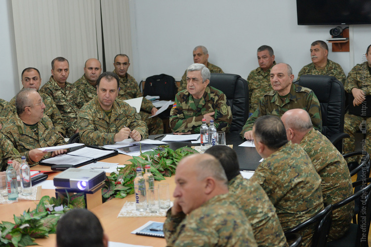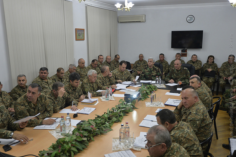 Президент Саргсян вместе с Президентом Арцаха Бако Саакяном посетил штаб Армии обороны, где состоялось традиционно проводимое в конце года совещание с участием министров обороны Армении и Арцаха и представителей высшего командного состава. Обсуждались вопросы, касающиеся армейского строительства. Участники совещания заслушали доклад командующего Армией обороны.
