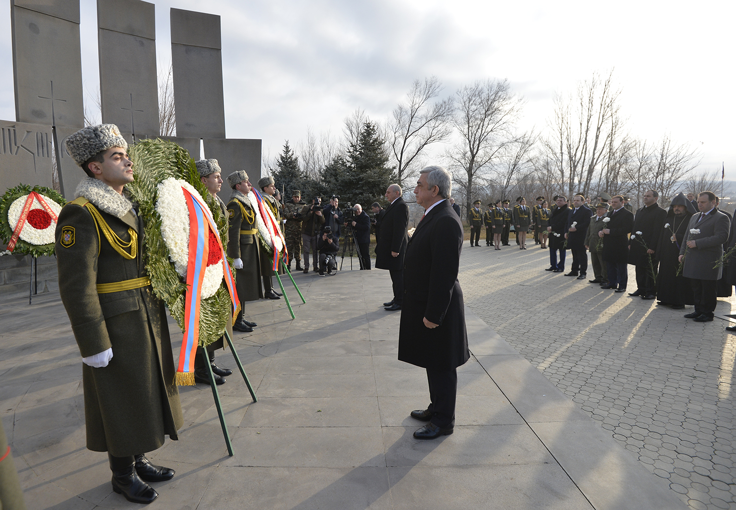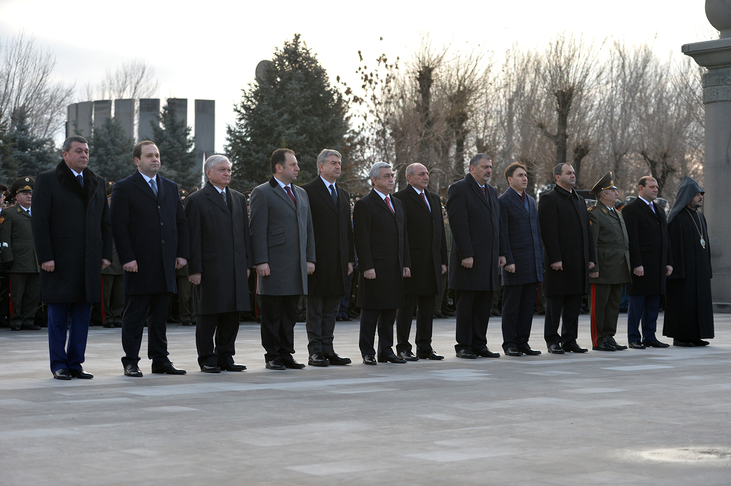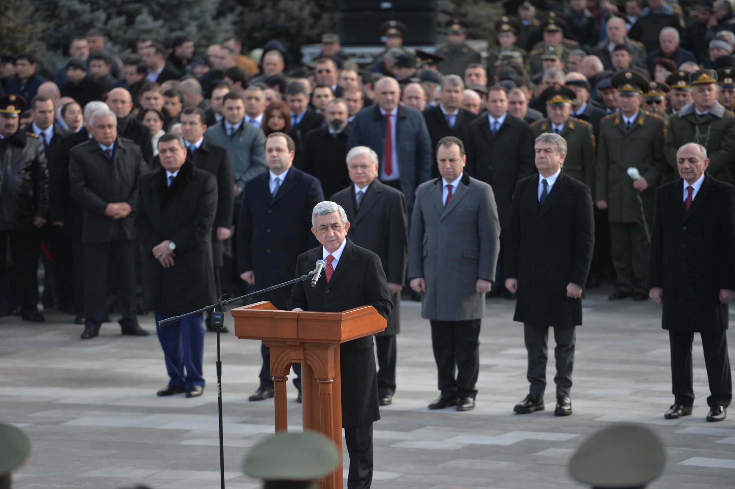 По случаю Дня армии Президент Серж Саргсян в сопровождении Президента НКР Бако Саакяна, членов Совета национальной безопасности, руководящего состава МО и ВС сегодня посетил воинский пантеон "Ераблур", воздал дань уважения памяти воинов, пожертвовавших своими жизнями во имя независимости Отечества.