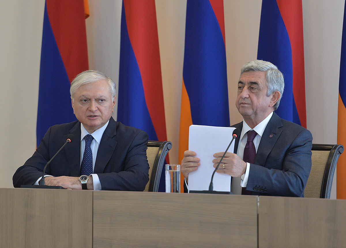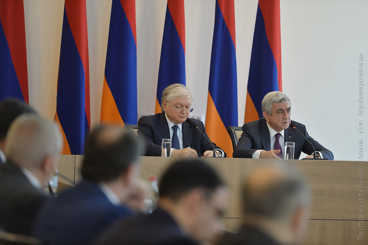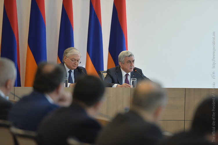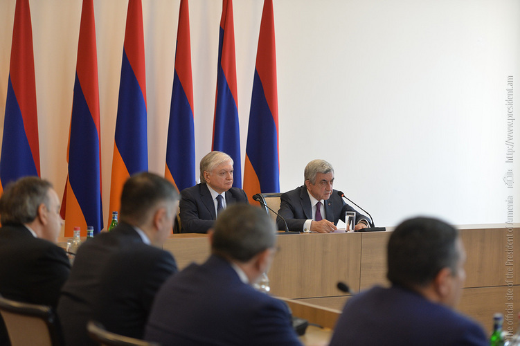 На встрече с руководящим составом МИД-а Президент представил свои замечания относительно внешнеполитических задач РА и некоторых недостатков министерства иностранных дел в направлении их решения.
