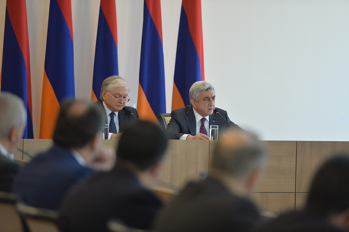 Президент Серж Саргсян в Министерстве иностранных дел сегодня встретился с руководящим составом МИД.