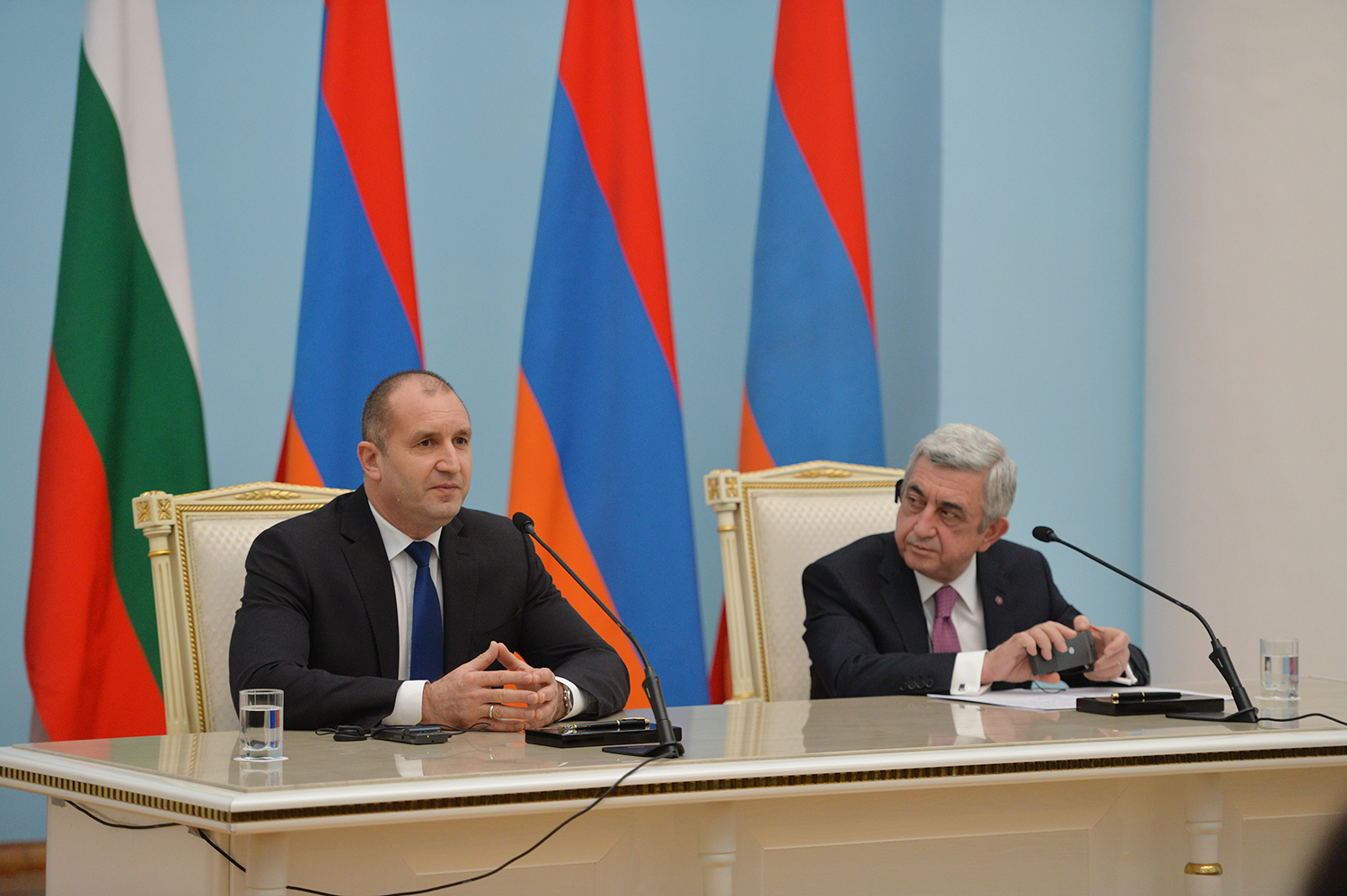Президенты Серж Саргсян и Румен Радев подвели итоги переговоров в заявлениях перед представителями средств массовой информации. Президенты Армении и Болгарии ответили на интересовавшие журналистов вопросы.