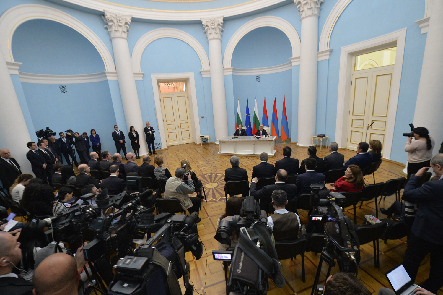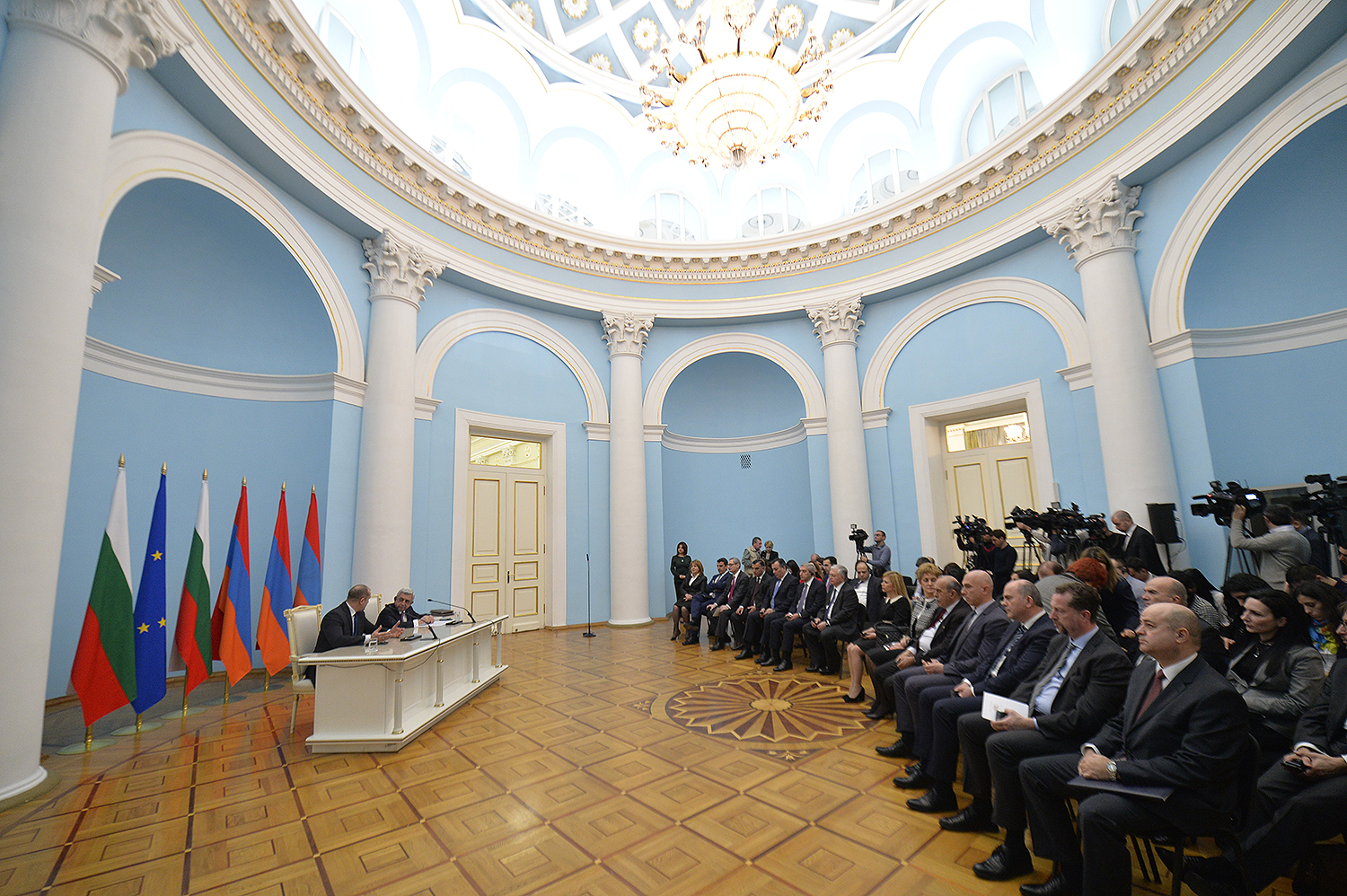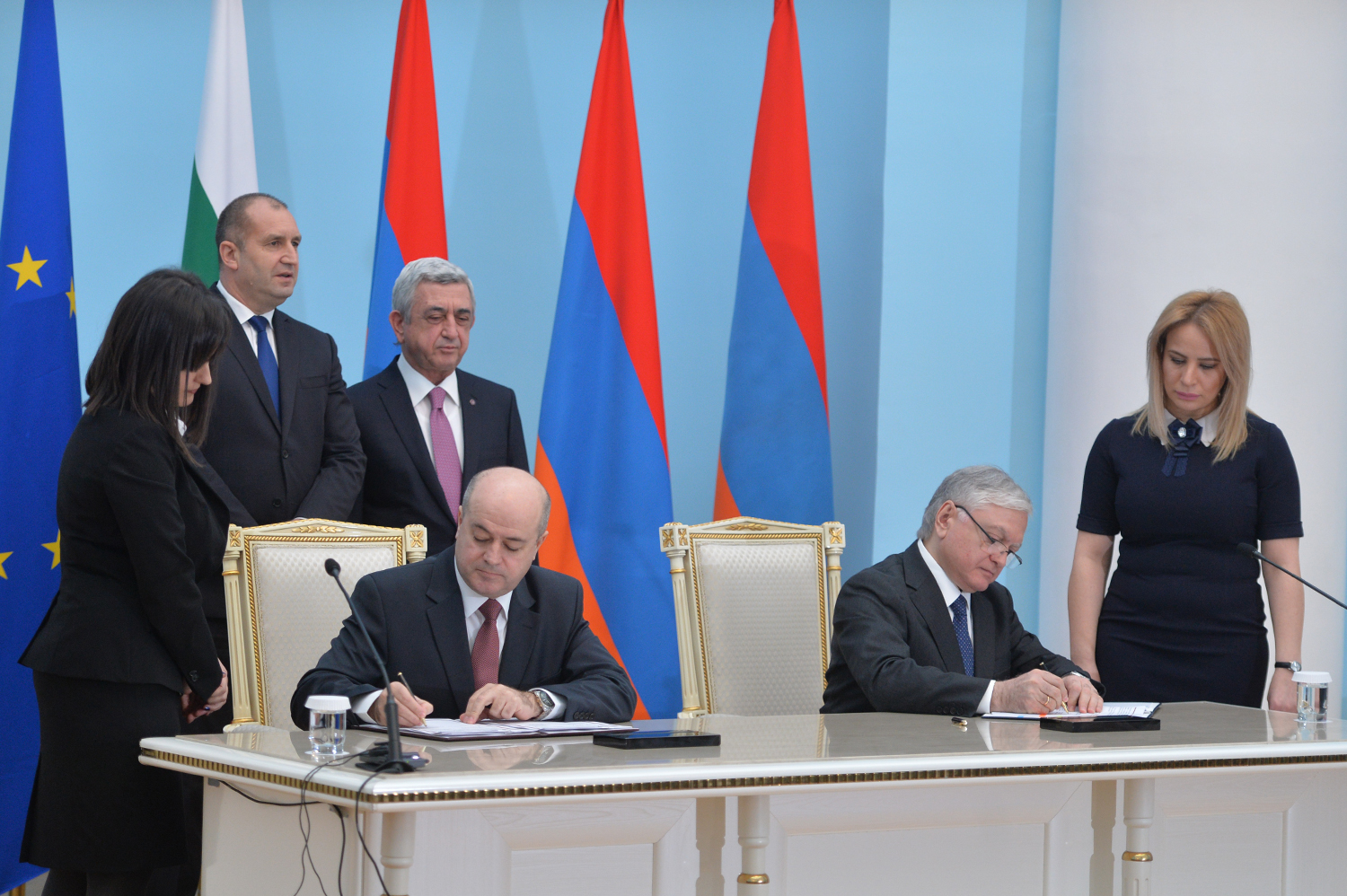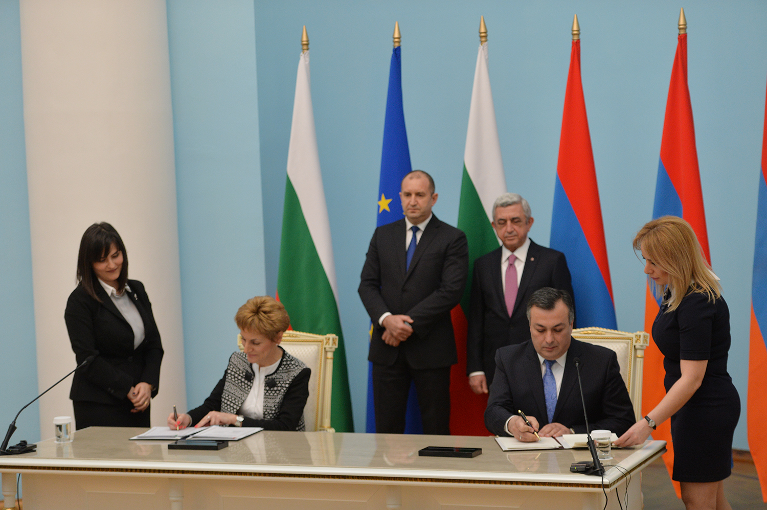 В рамках государственного визита Президента Болгарии в резиденции Президента сегодня после отдельной беседы президентов Сержа Саргсяна и Румена Радева состоялись переговоры в расширенном составе с участием делегаций двух стран, после чего прошла церемония подписания документов, направленных на расширение и углубление двустороннего сотрудничества между Республикой Армения и Республикой Болгария в ряде отраслей.