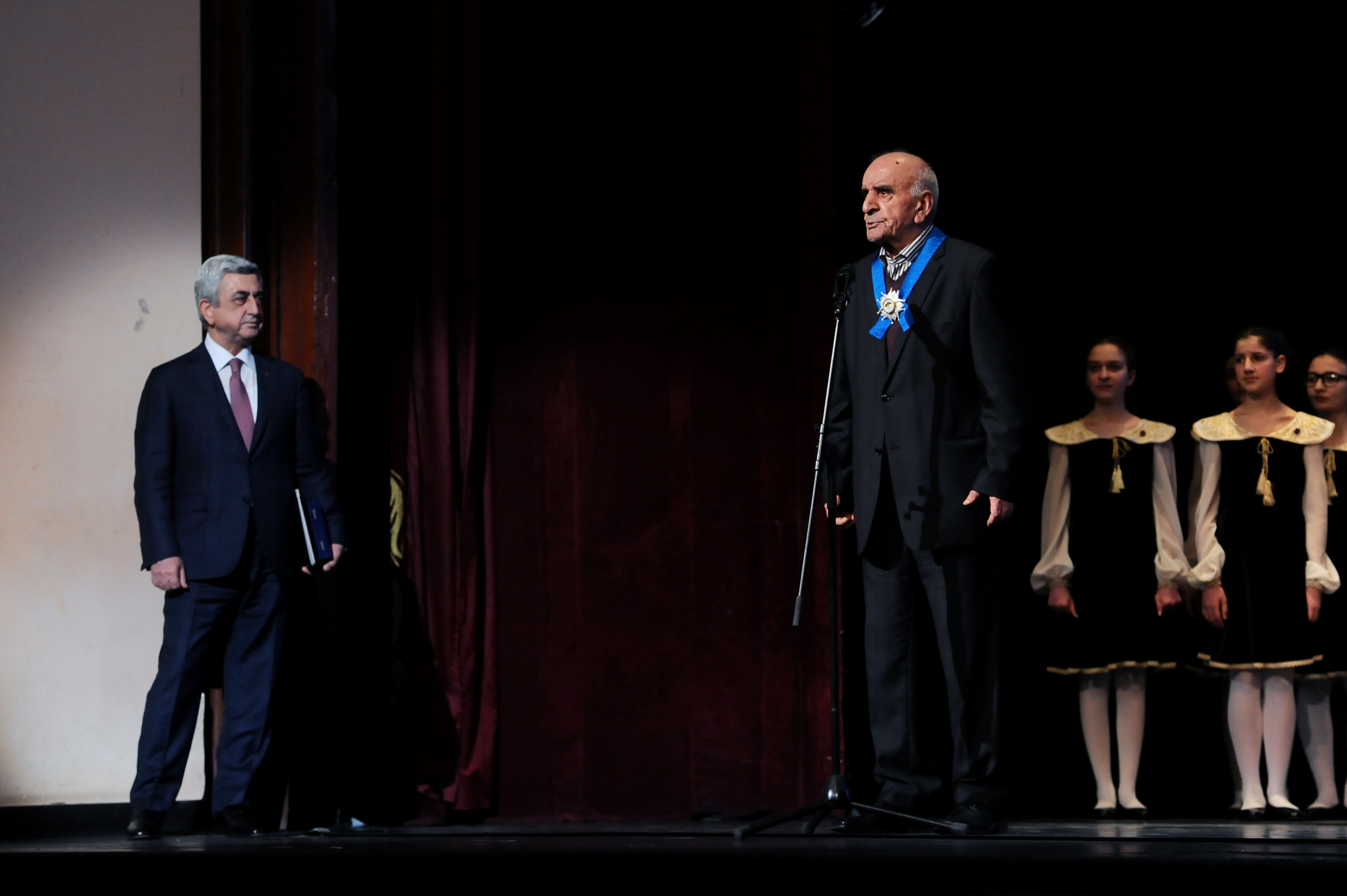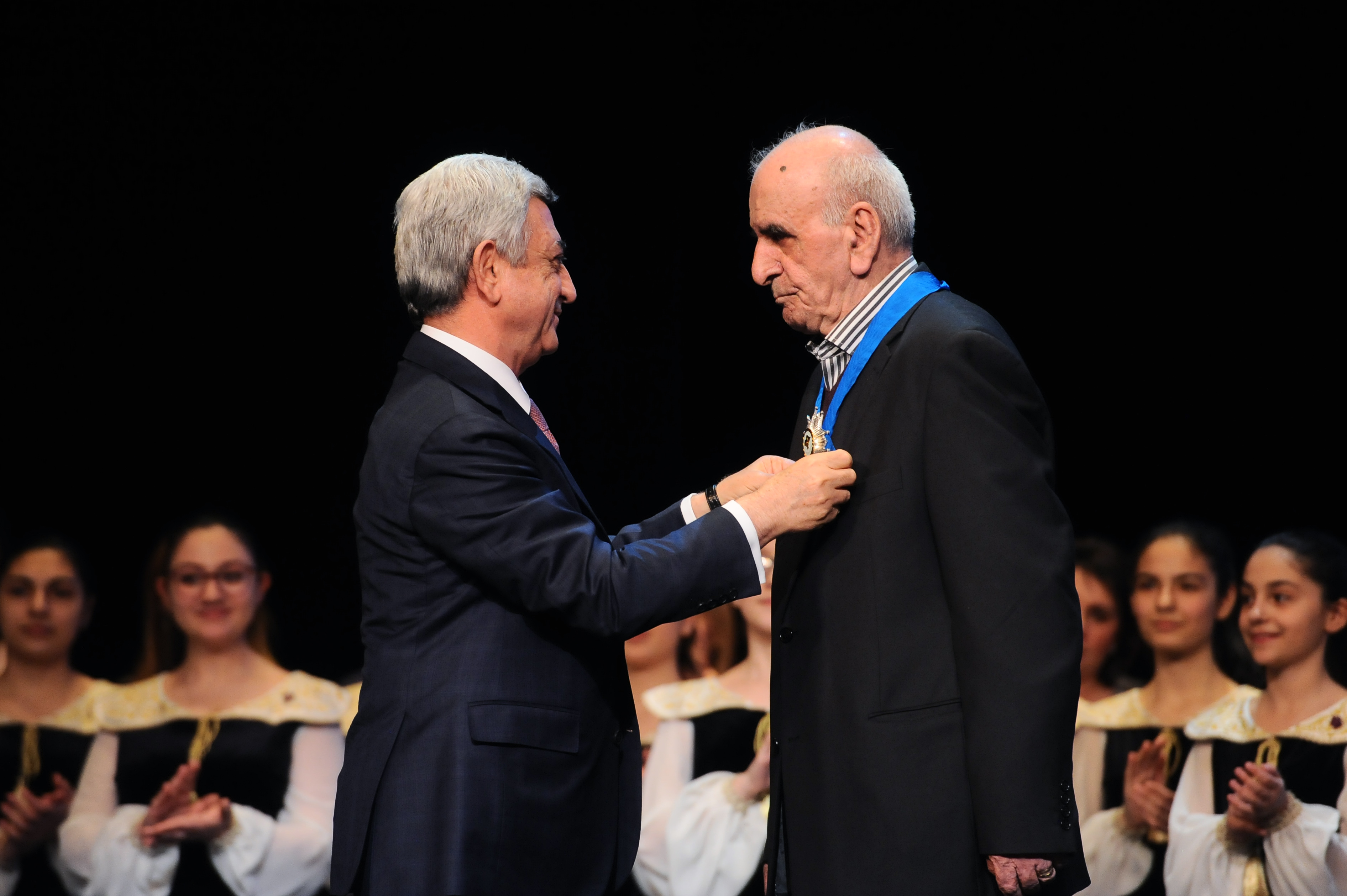 «Многоуважаемый Президент Серж Саргсян, мы знаем, что наша страна долгое время находится в военном положении. В этих условиях Вы находите время поддерживать деятелей искусства и помогать им. В их числе также и я. Глубокая благодарность Вам за всё это. Многоуважаемый господин Президент, как хорошо, что Вы есть. Пусть все силы мира будут Вашими», - в ответном слове высказал свои добрые пожелания маэстро.