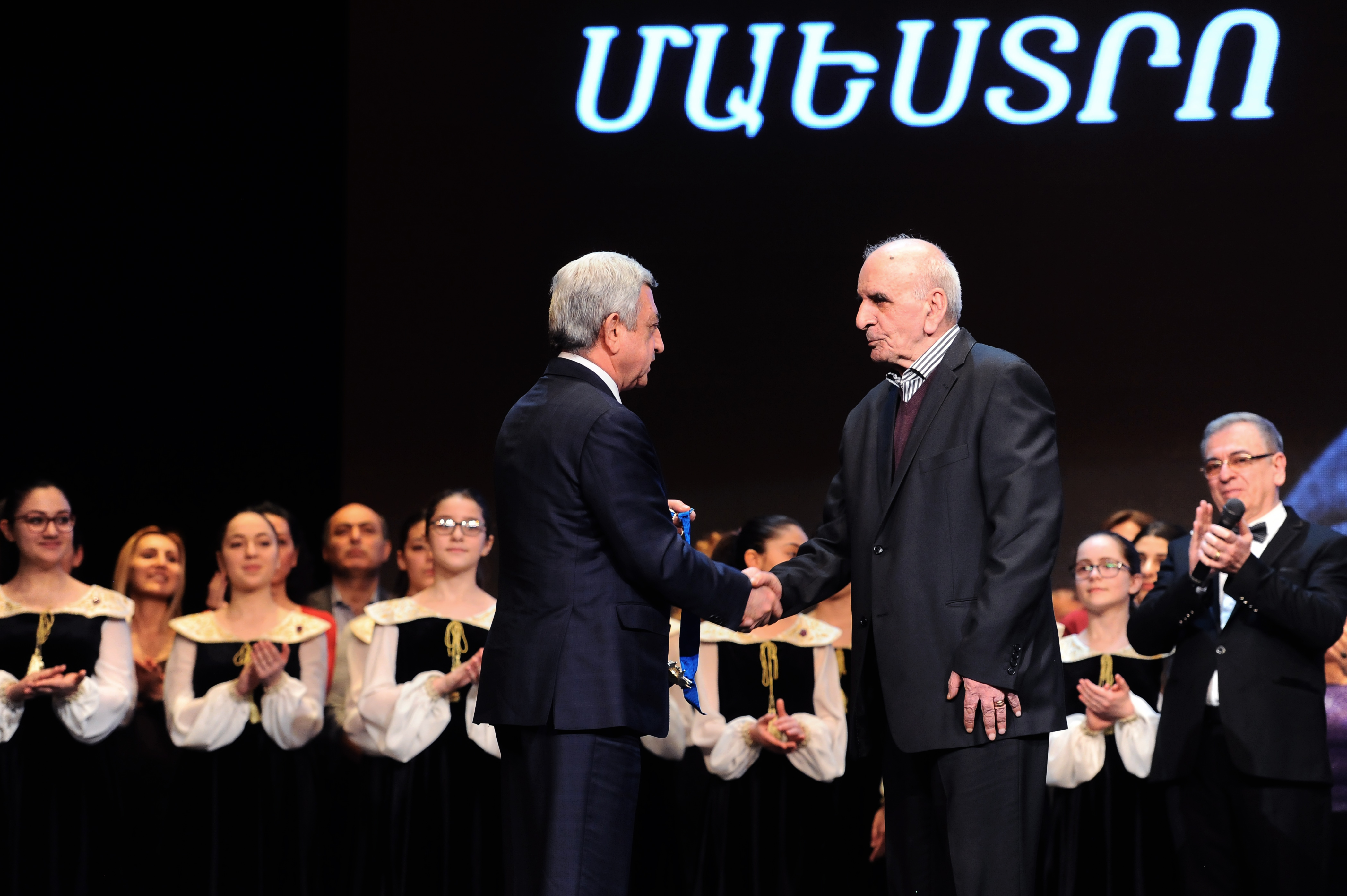 Вы счастливый человек, Вы смогли десятилетиями служить любимому Вами делу, тем самым – армянскому народу, то есть – Армении. И та всенародная любовь к Вам происходит также от того, что Вы подарили нашему народу многие моменты гордости. Я очень хорошо себя чувствую, когда в рамках кинофестиваля «Золотой абрикос» во время нашего ужина наши молодые люди подходили к маэстро, хотели с ним сфотографироваться, несмотря на то обстоятельство, что там присутствовали также другие всемирно известные деятели. Это, маэстро, уже другой подход, это уже иная плоскость.