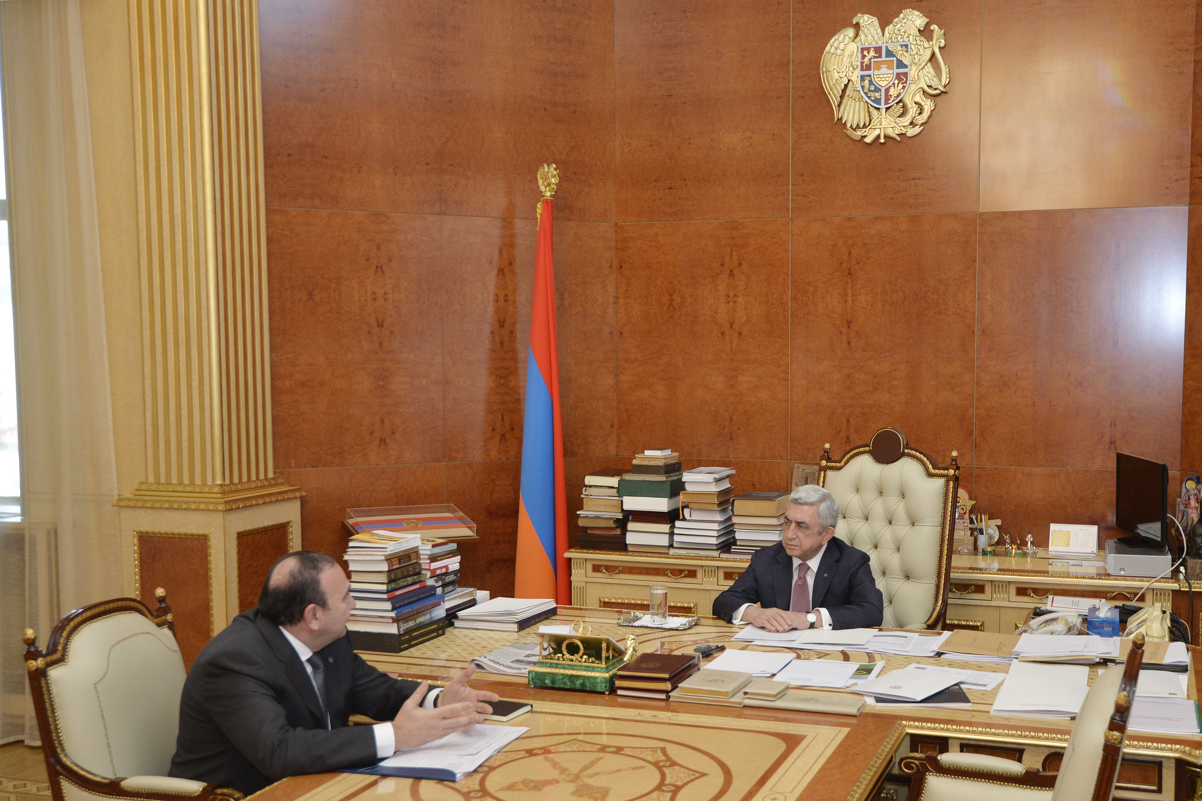 Во время рабочей встречи с Президентом Республики министр образования и науки Левон Мкртчян сегодня доложил о ходе выполнения поручений Президента, работах, выполненных в направлении обеспечения качественного общего и высшего образования в республике, реализации с этой целью инновационных программ. Министр также представил приоритетные задачи министерства и планы на 2018 год.