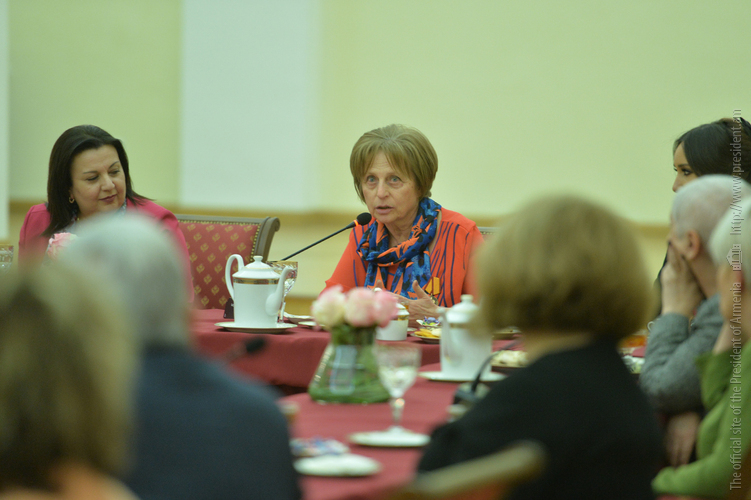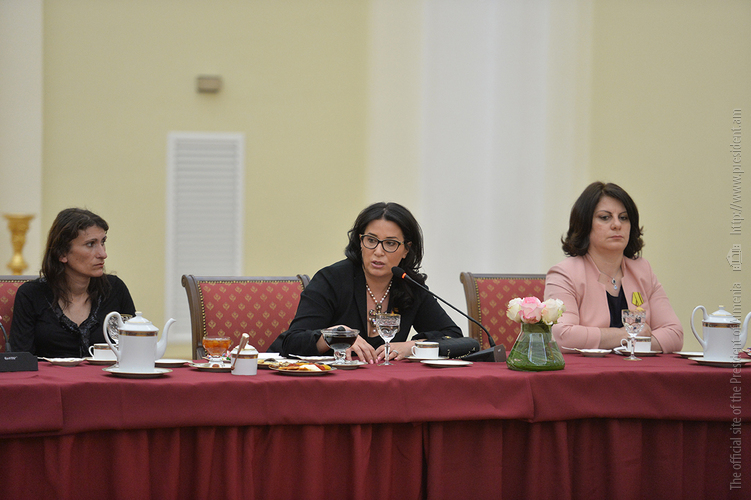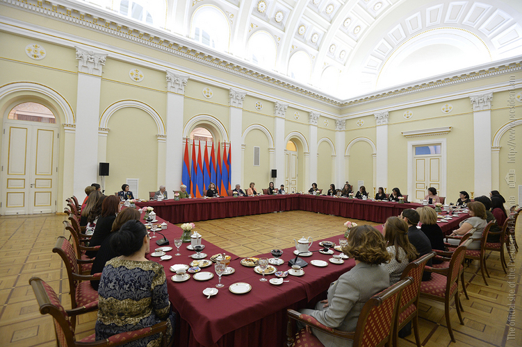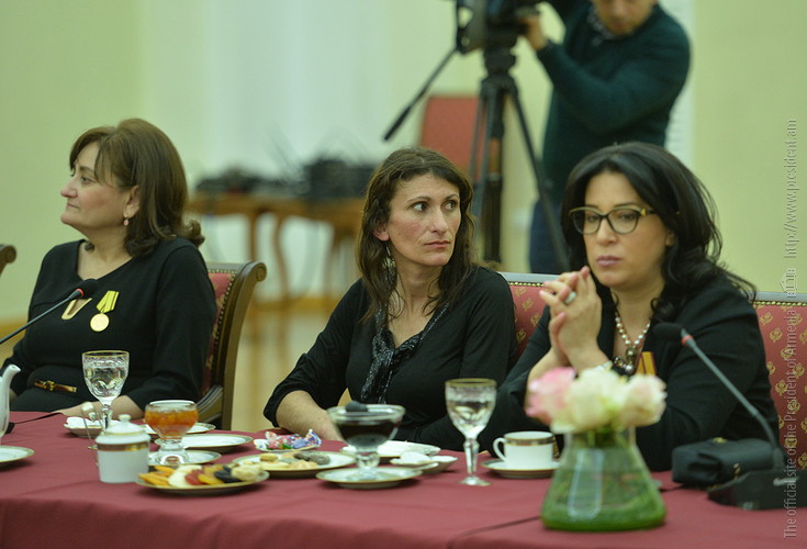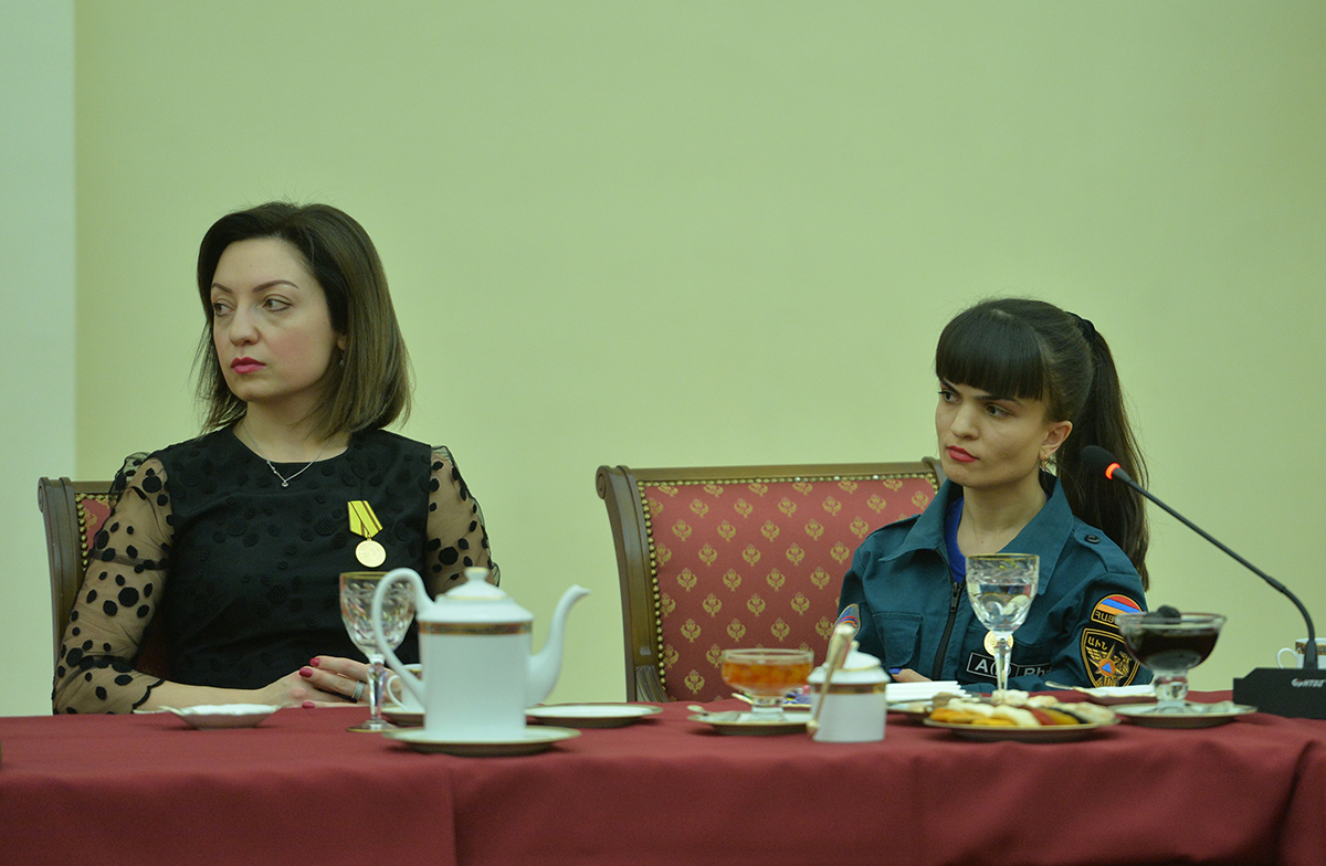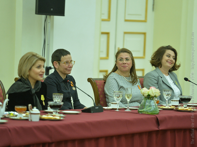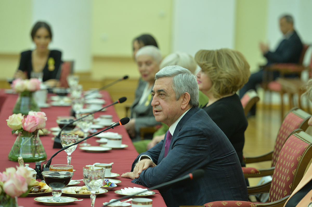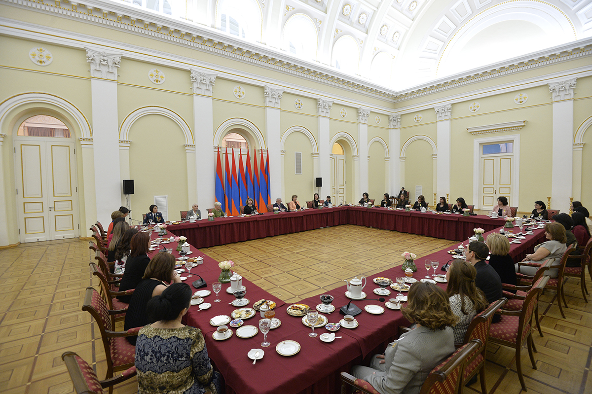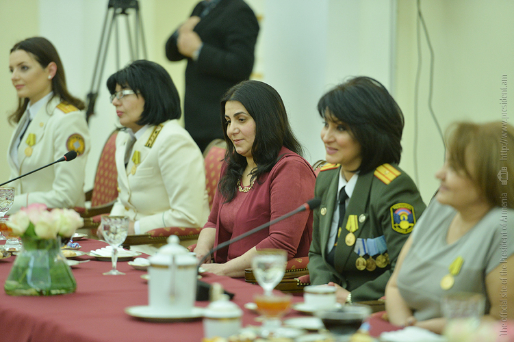 После торжественной церемонии награждения Президент Серж Саргсян за чайным столом встретился с участвовавшими во встрече женщинами. Президент предложил им представить свои точки зрения, замечания, предложения относительно того, что нужно сделать для ещё большего увеличения роли женщин в общественно-политической жизни государства, стимулирования их участия системе государственного управления.