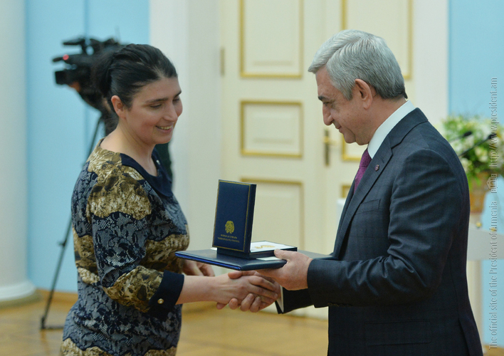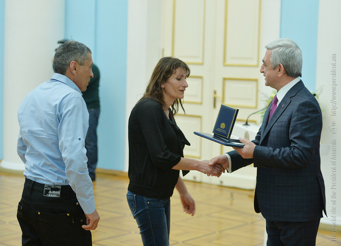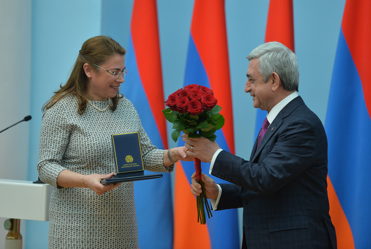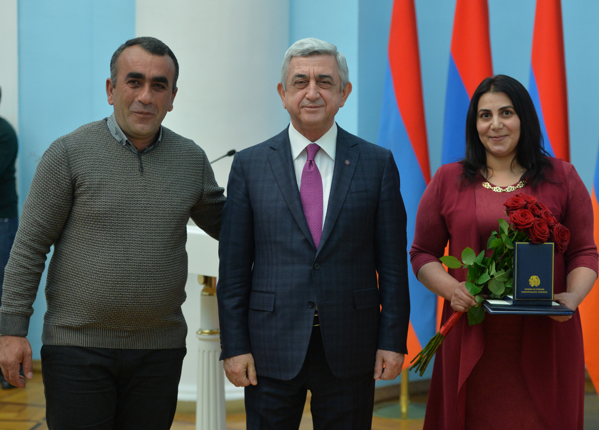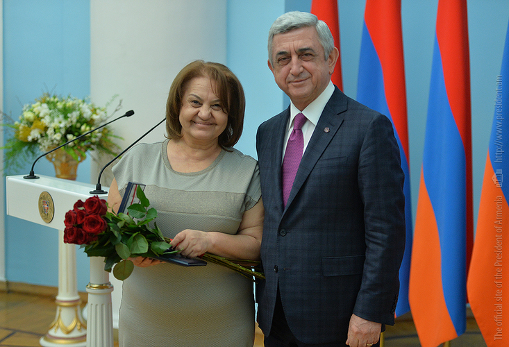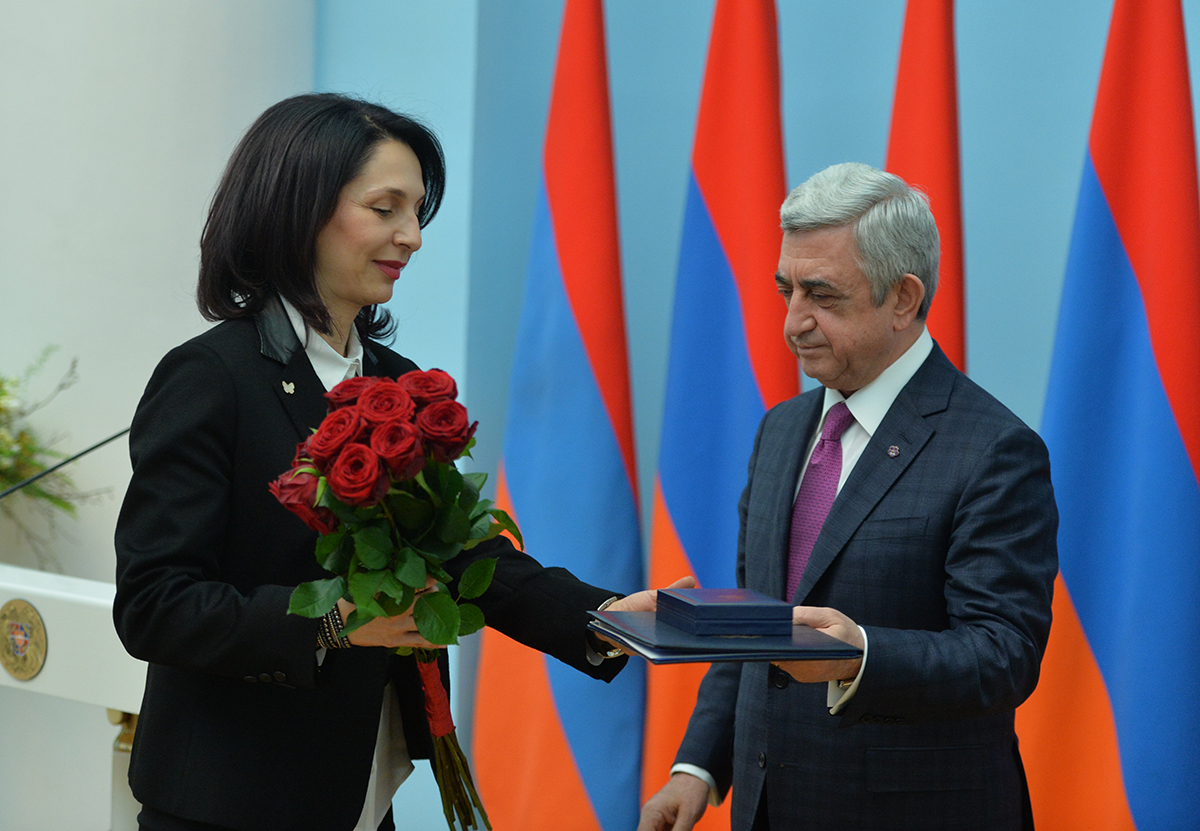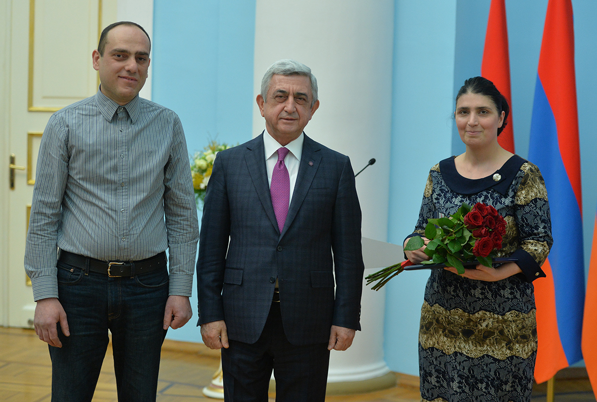 Накануне Женского праздника Президент Серж Саргсян и госпожа Рита Саргсян сегодня в резиденции Президента принимали группу женщин, которые внесли свой вклад в различные сферы, отличились эффективным и добросовестным трудом, а также многодетных родителей. Президент Республики поздравил участников встречи и в их лице всех женщин Республики с наступающим праздником. Президент также поощрил высокими государственными наградами приглашённых в резиденцию женщин, а многодетным матерям за большой вклад в становление и укрепление семьи, обеспечение детям полноценного и гармоничного физического, духовного и нравственного развития наградил медалью Родительской славы, а также поощрил денежными премиями.