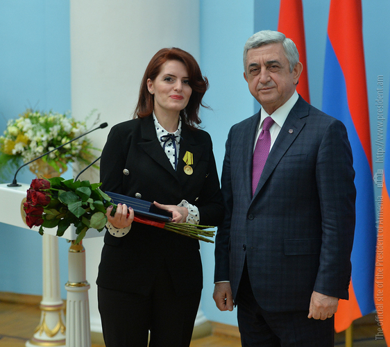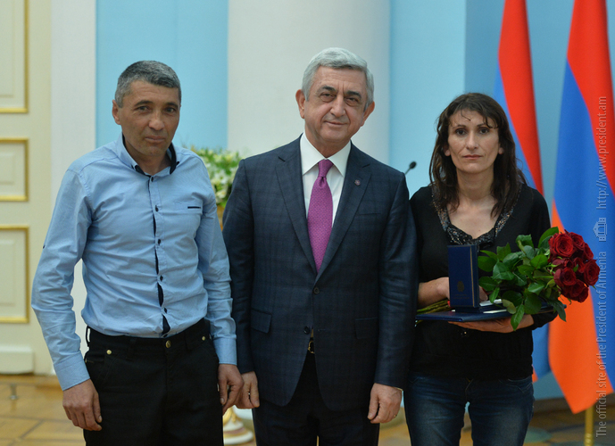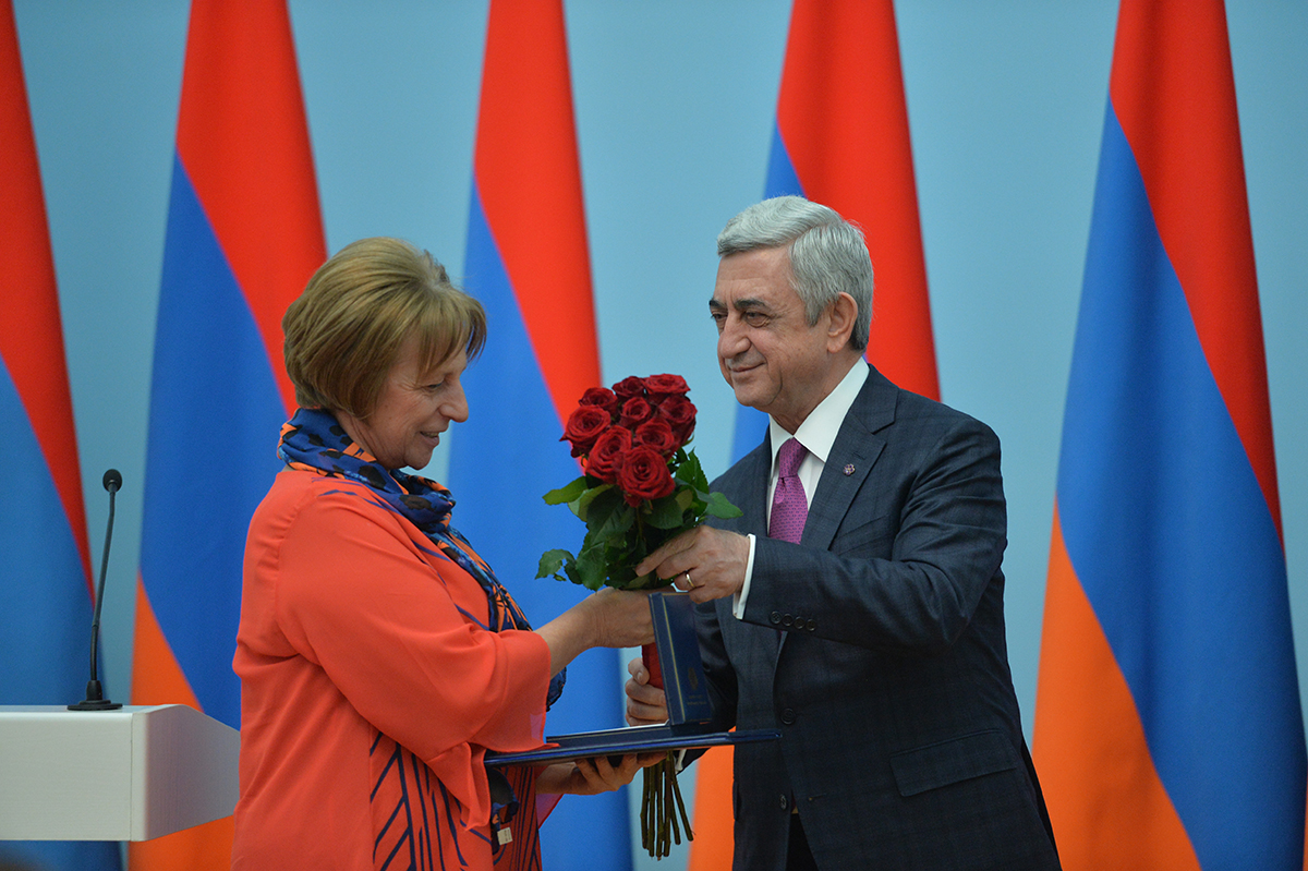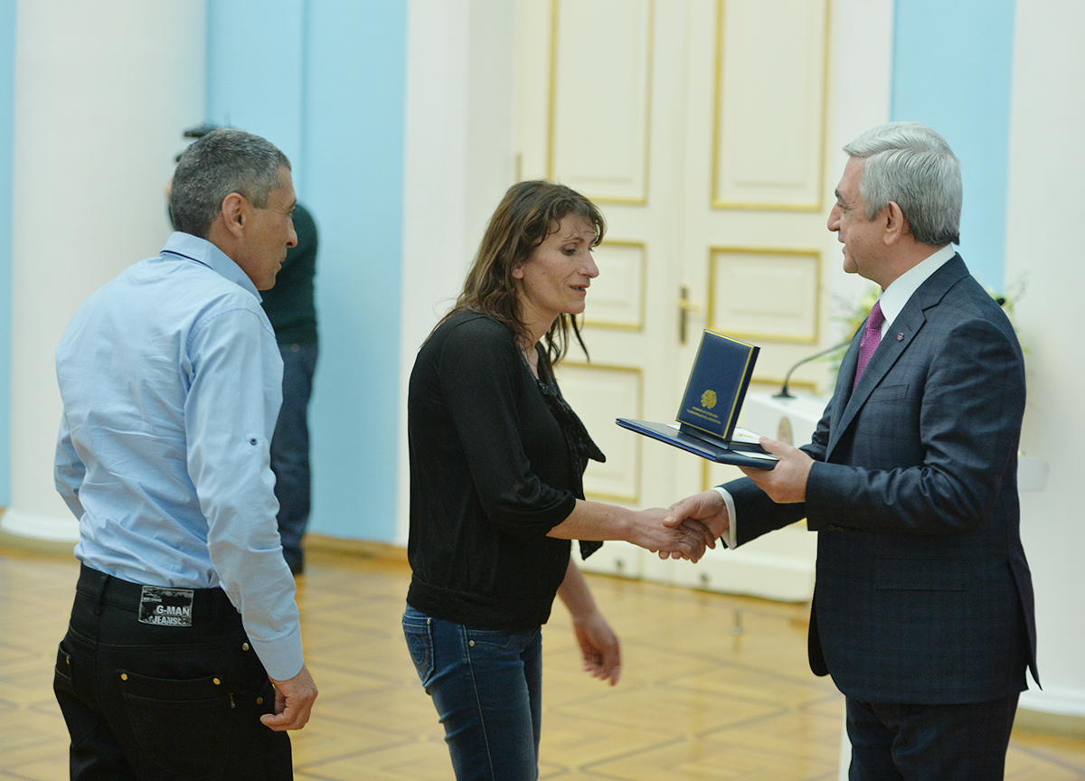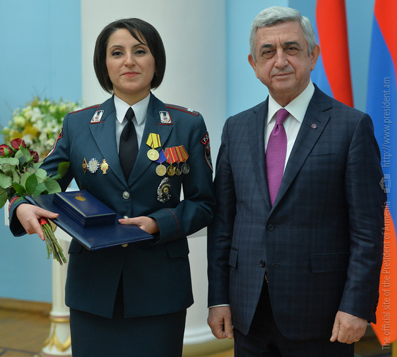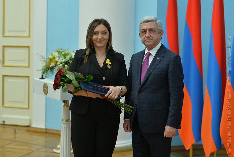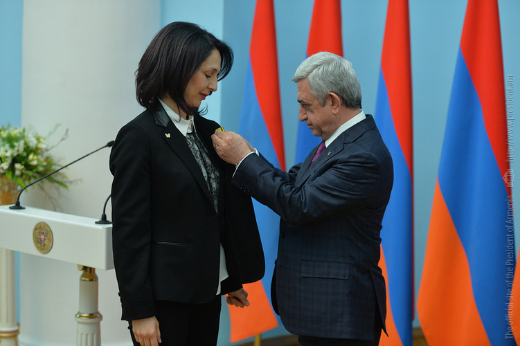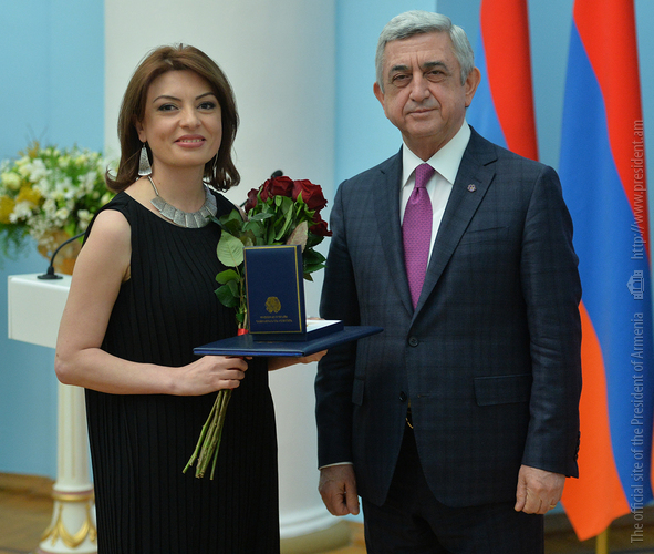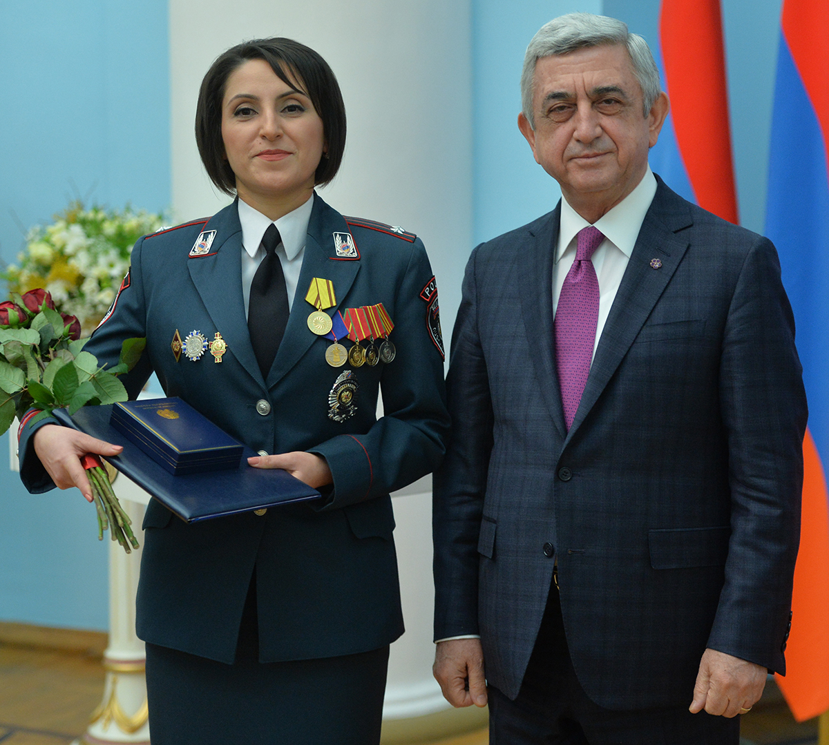 Накануне Женского праздника Президент Серж Саргсян и госпожа Рита Саргсян сегодня в резиденции Президента принимали группу женщин, которые внесли свой вклад в различные сферы, отличились эффективным и добросовестным трудом, а также многодетных родителей. Президент Республики поздравил участников встречи и в их лице всех женщин Республики с наступающим праздником. Президент также поощрил высокими государственными наградами приглашённых в резиденцию женщин, а многодетным матерям за большой вклад в становление и укрепление семьи, обеспечение детям полноценного и гармоничного физического, духовного и нравственного развития наградил медалью Родительской славы, а также поощрил денежными премиями.