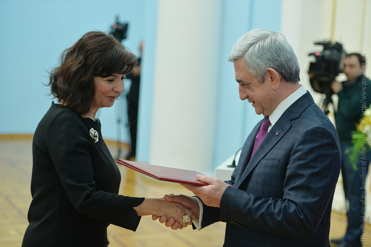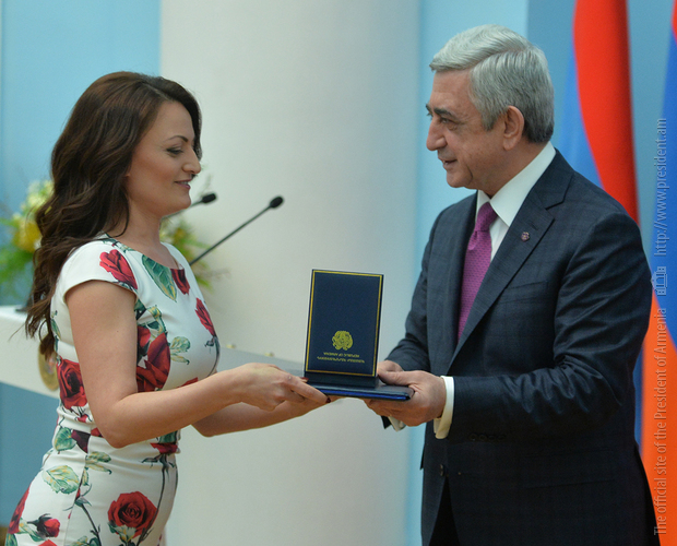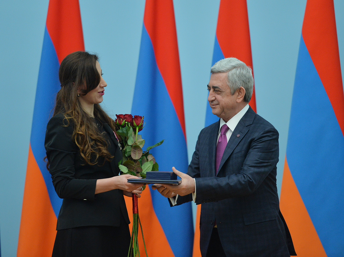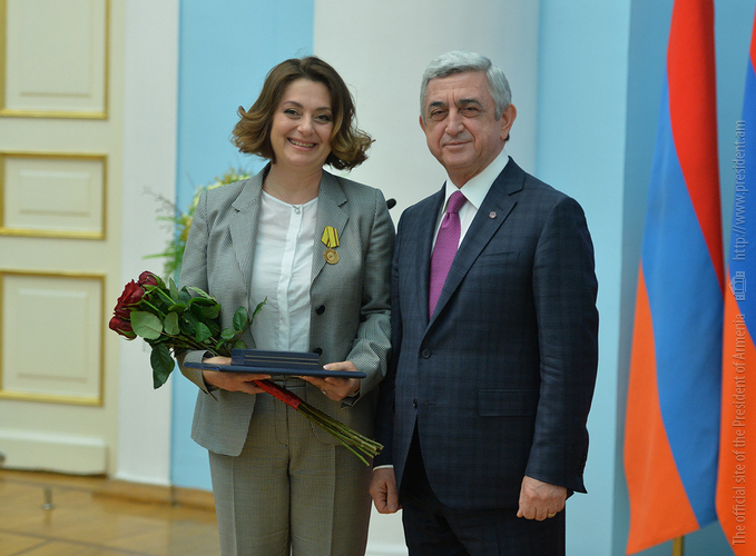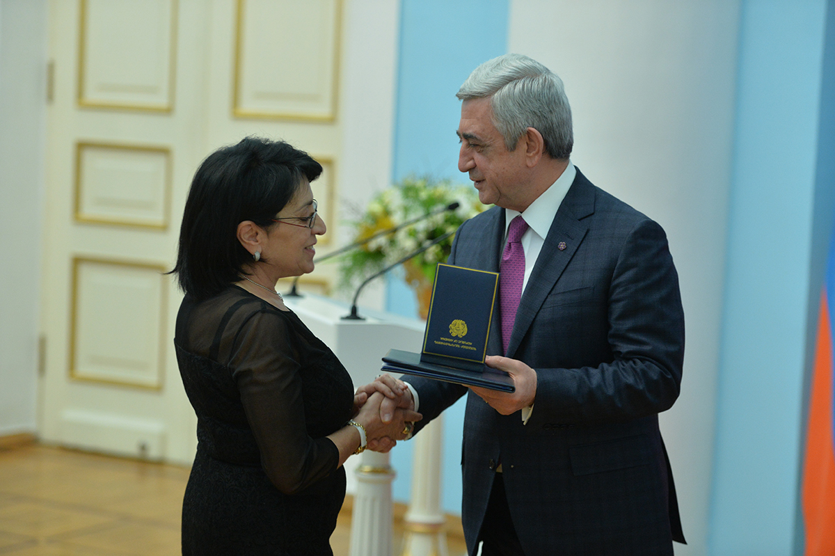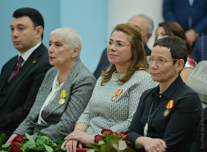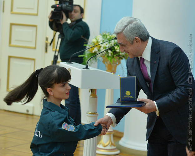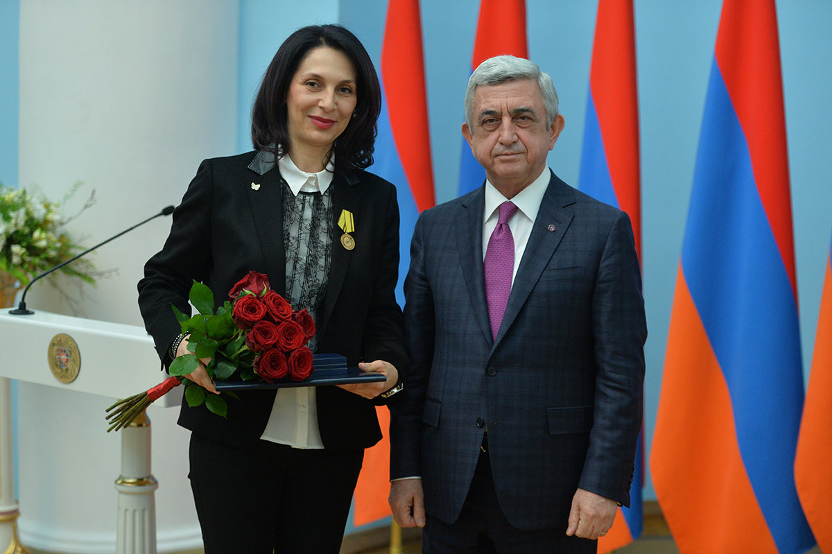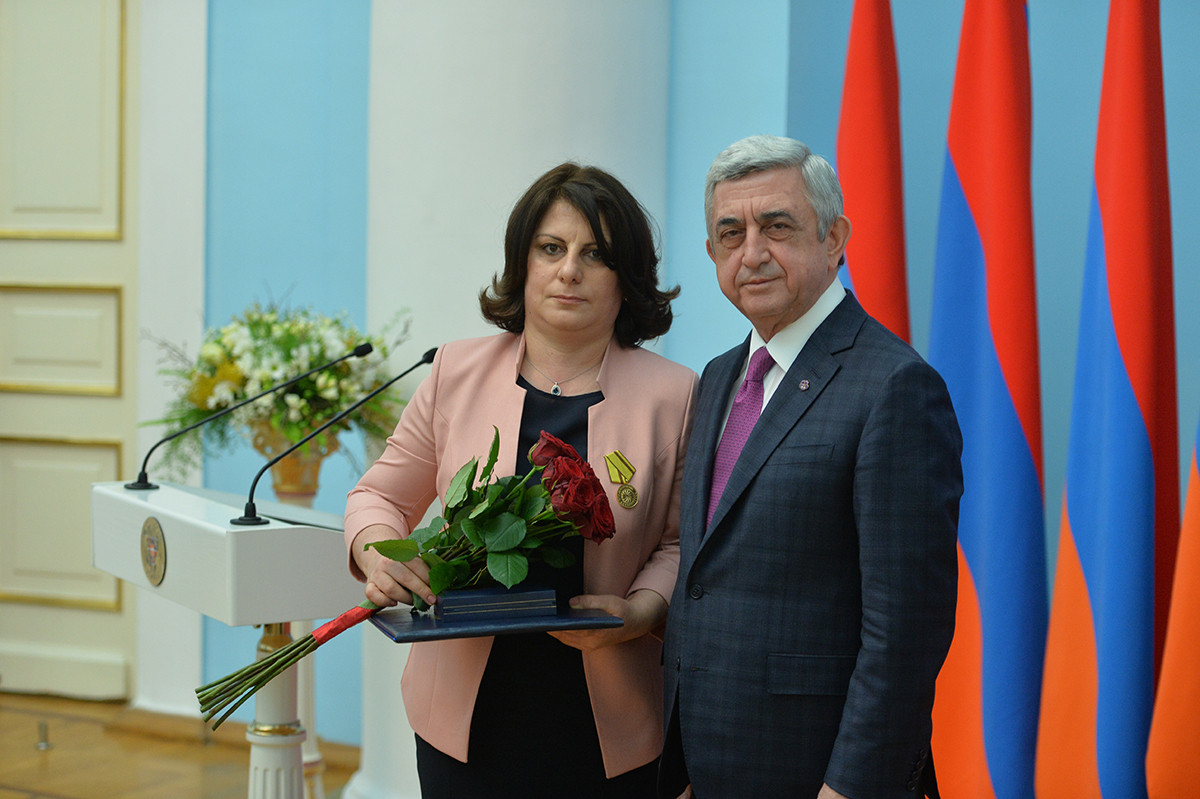 Накануне Женского праздника Президент Серж Саргсян и госпожа Рита Саргсян сегодня в резиденции Президента принимали группу женщин, которые внесли свой вклад в различные сферы, отличились эффективным и добросовестным трудом, а также многодетных родителей. Президент Республики поздравил участников встречи и в их лице всех женщин Республики с наступающим праздником. Президент также поощрил высокими государственными наградами приглашённых в резиденцию женщин, а многодетным матерям за большой вклад в становление и укрепление семьи, обеспечение детям полноценного и гармоничного физического, духовного и нравственного развития наградил медалью Родительской славы, а также поощрил денежными премиями.