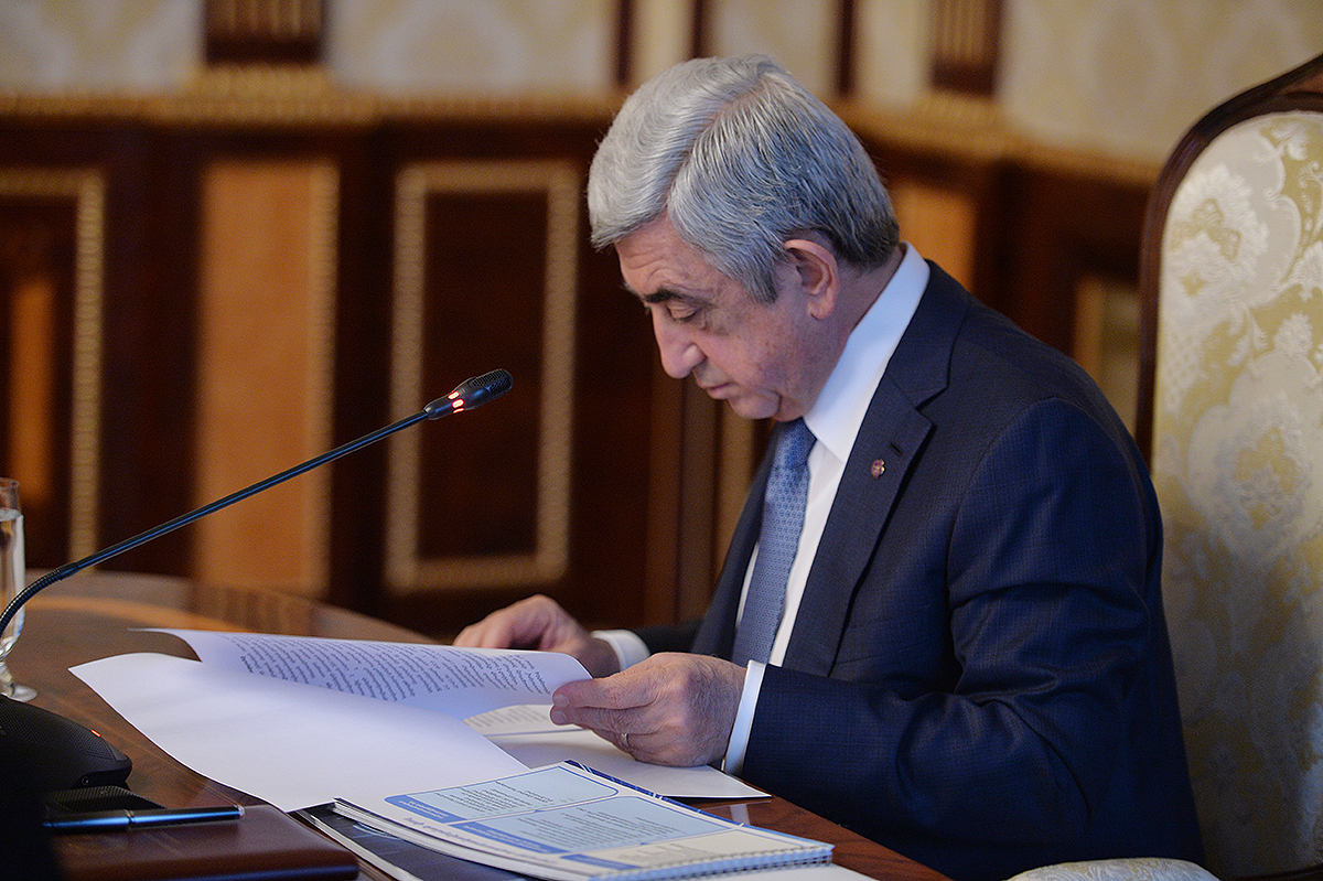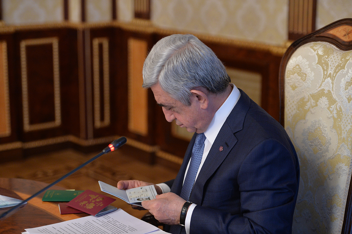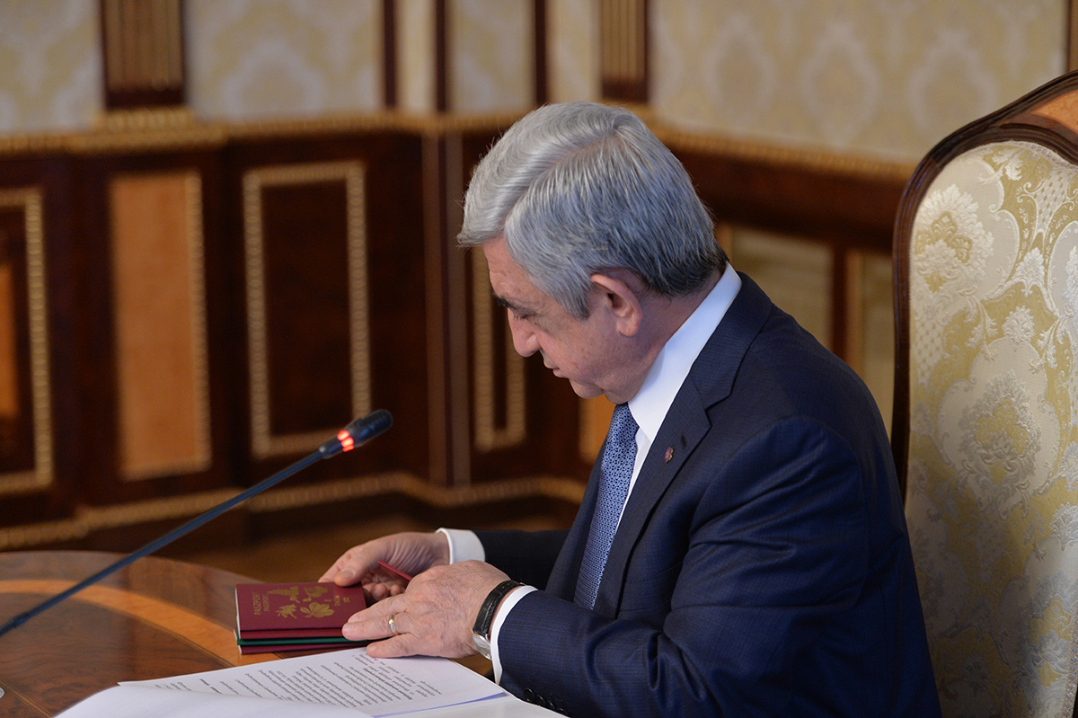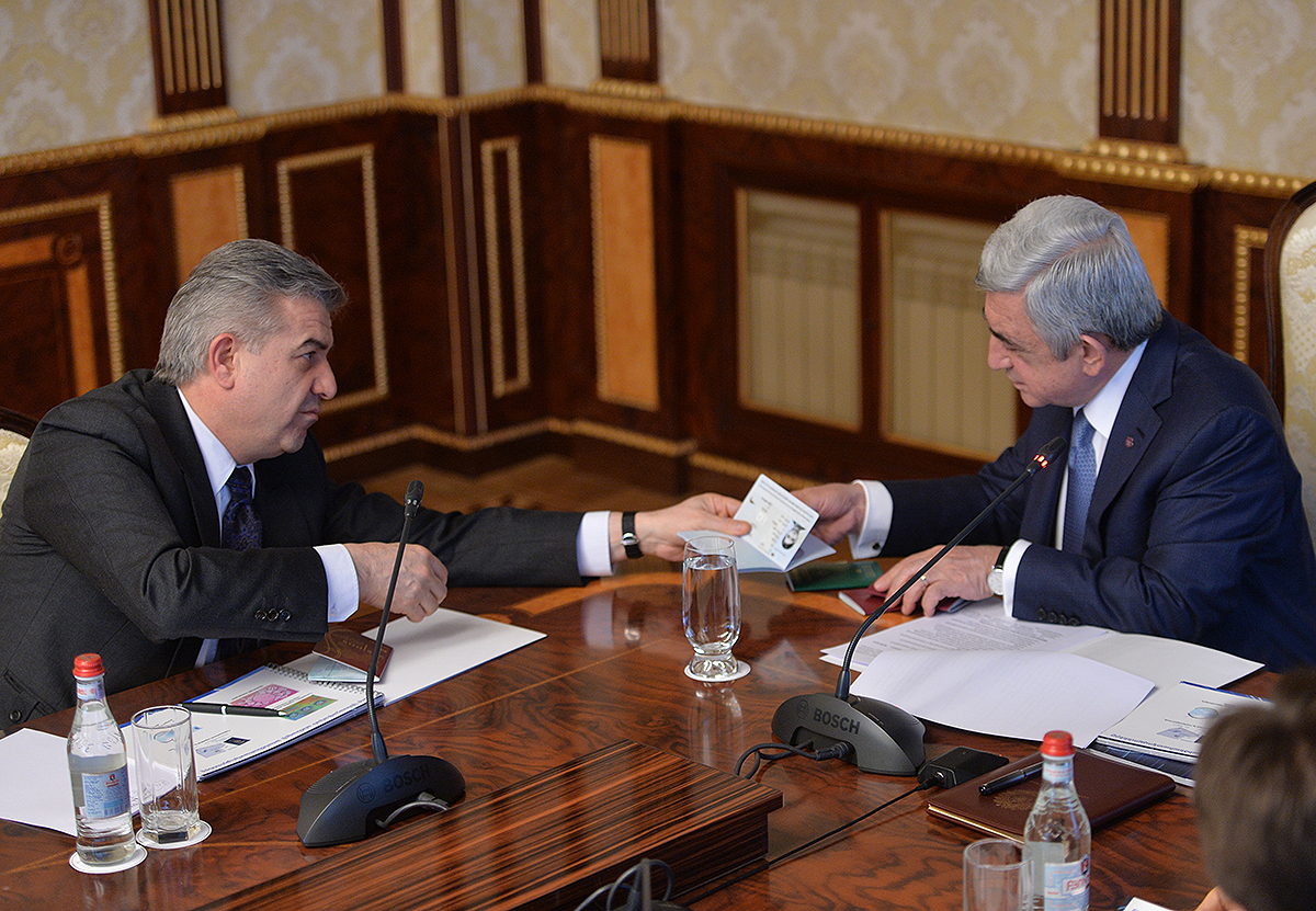 У Президента Республики сегодня состоялось совещание, посвящённое ходу работ, реализуемых в рамках международного тендера на получение права подписать концессионное соглашение с целью выпуска биометрических паспортов и идентификационных карт Республики Армения, а также для внедрения, обслуживания и передачи автоматизированной системы модернизированной инфраструктуры публичных сертификатов.