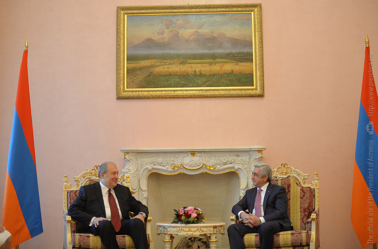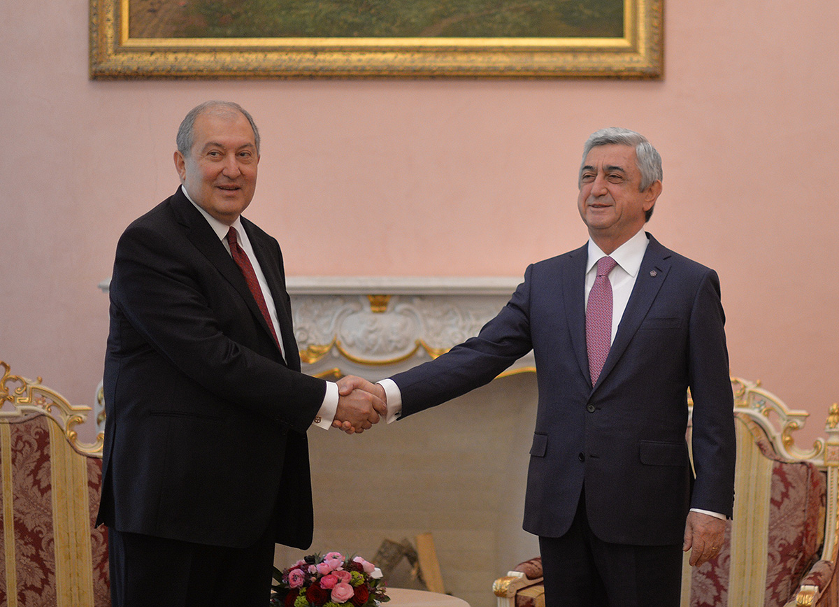 Во время приема в Позолоченном зале резиденции Президента Президент Серж Саргсян, отметив, что через считанные минуты состоится церемония вступления в должность новоизбранного Президента, еще раз пожелал Армену Саргсяну успехов.