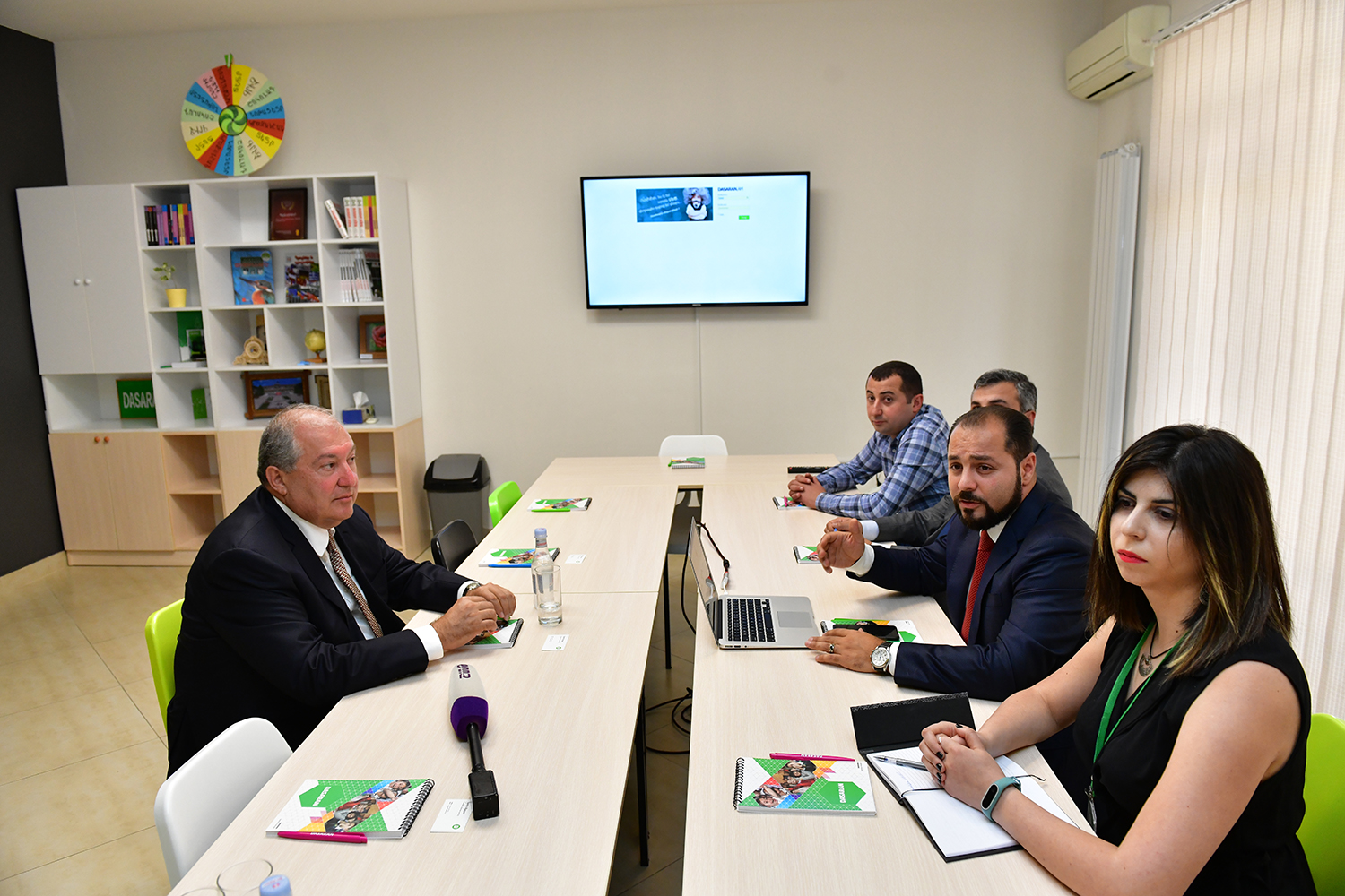 Из образовательного комплекса «Мхитар Себастаци» президент отправился в образовательный центр «Дасаран». Учредитель-президент центра Сурен Алоян познакомил президента Республики со структурой организации и проделанными работами.