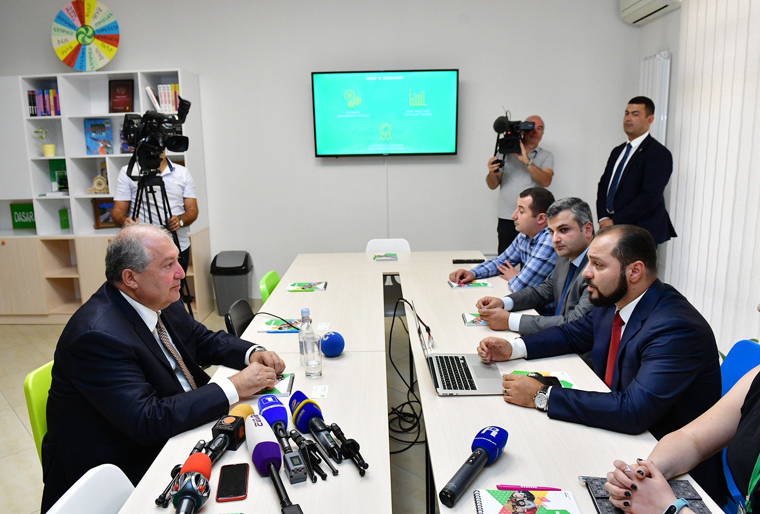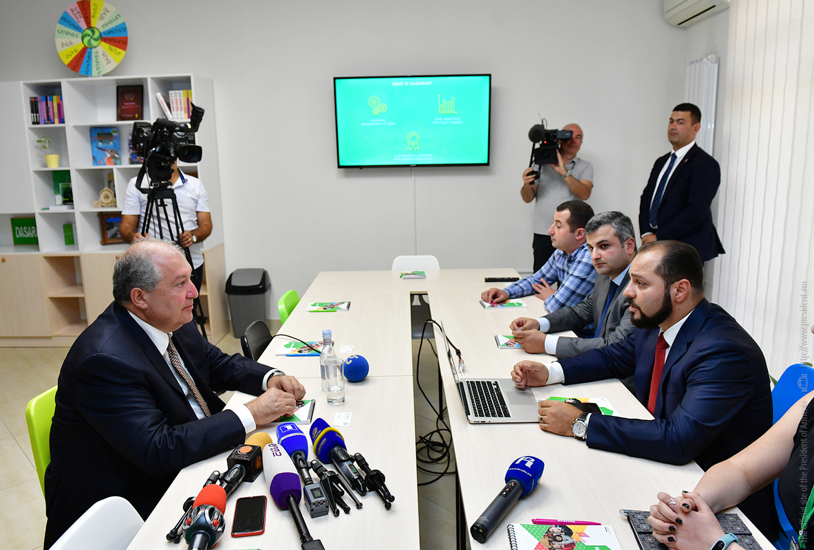 В конце визита президенту Республики представили образовательную программу «Дасаран», в частности, разработанный «Дасараном» инструмент статистического онлайн анализа E-stat, который даёт возможность целостным образом рассматривать все слои общеобразовательной системы и анализировать эффективность школ, успеваемость учеников, а также динамику демографических показателей.