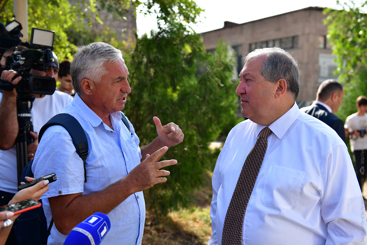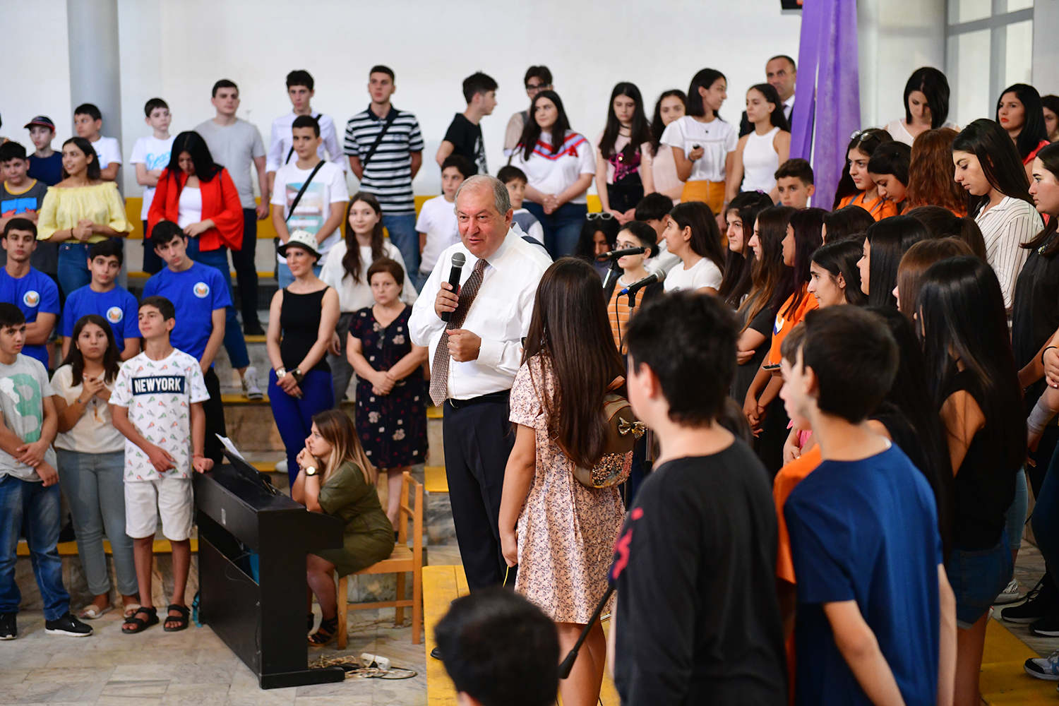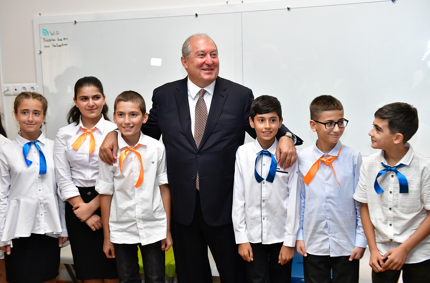В основном корпусе образовательного комплекса, поздравив учеников, президент Армен Саркисян отметил: «Ваша школа – блестящий пример того, что если каждый из вас действительно во что-то верит, если каждый из вас имеет план, видение и готов посвятить свою жизнь, время, энергию для того, чтобы воплотить это видение в реальность, то однажды из ничего создастся громадная школа, однажды даже при самых маленьких в мире материальных и физических возможностях, мы получим максимальное».