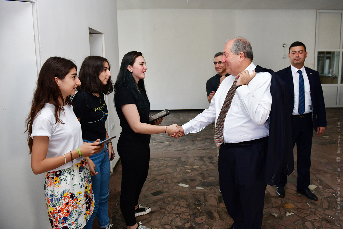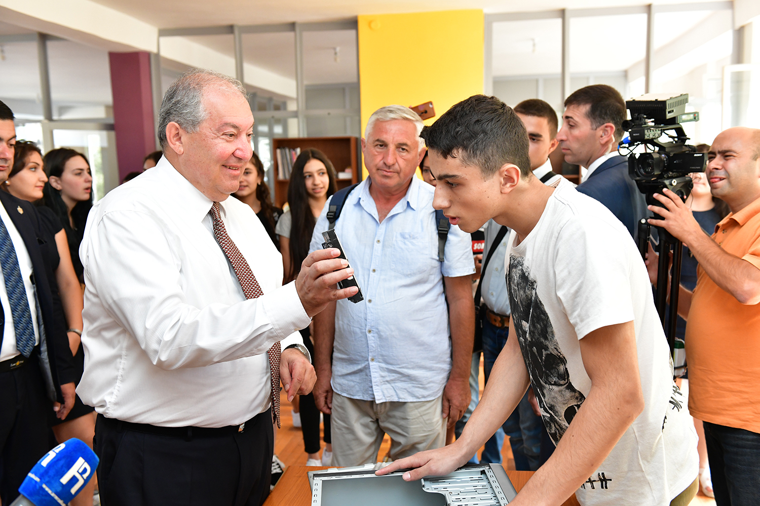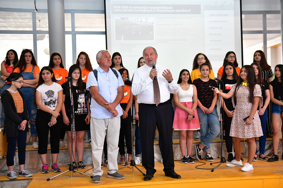 Президент пожелал воспитанникам продолжать то хорошее дело, которое начали учредитель школы и его коллеги, и руководствоваться полученными в образовательном комплексе ценностями. «Хочу видеть в каждом из вас творческую силу новой Армении, хочу, чтобы вы вступали как защитники новой родины. Интересы родины нужно защищать везде, являясь лучшими в мире – лучшими физиками, экологами, вообще, лучшими специалистами. Эту нашу маленькую, но драгоценную родину сделайте одной из лучших стран в мире», - подчеркнул он.