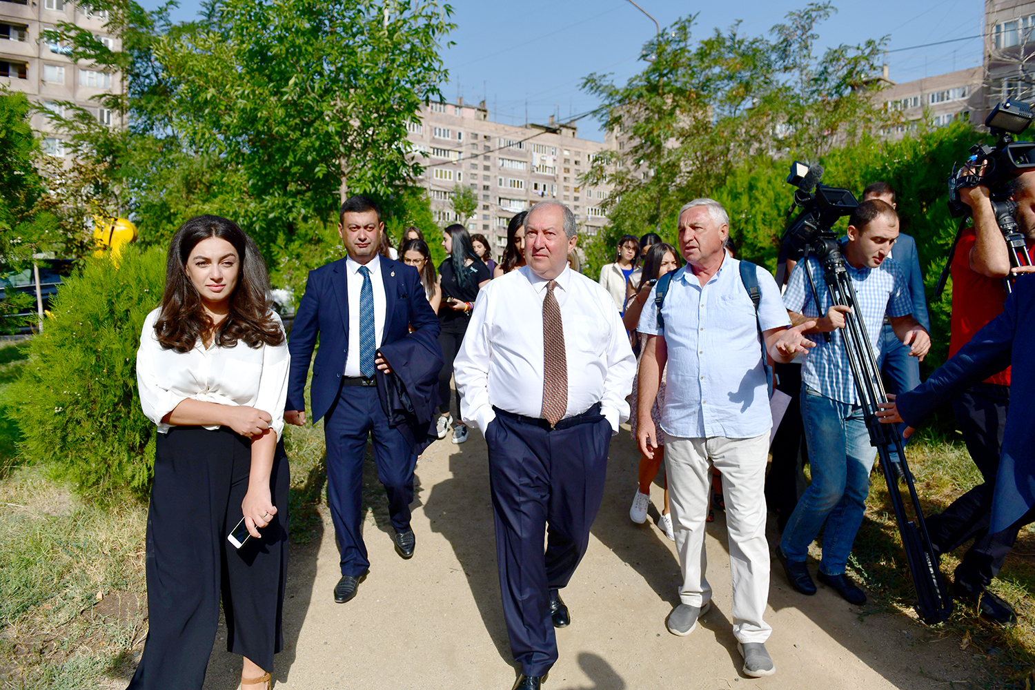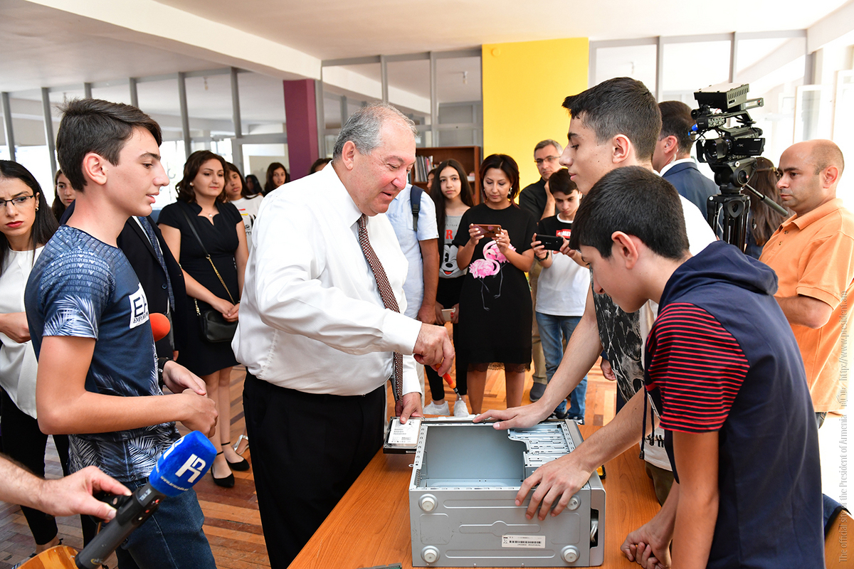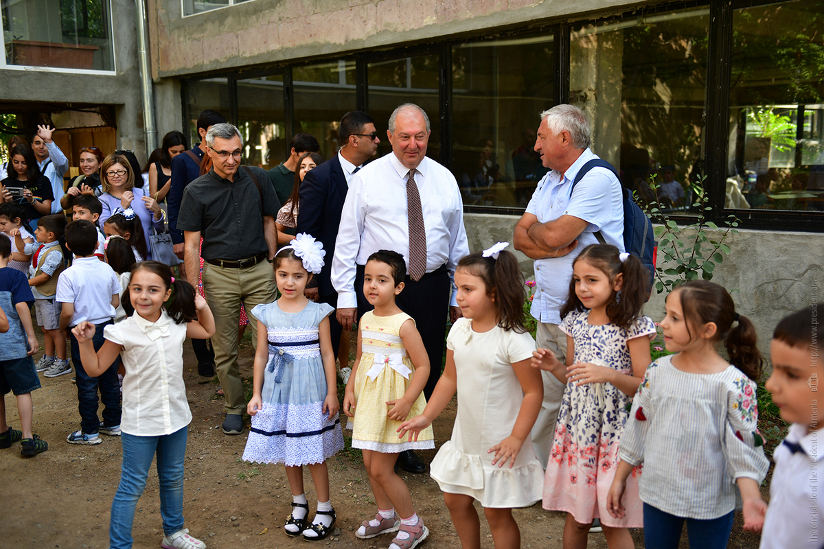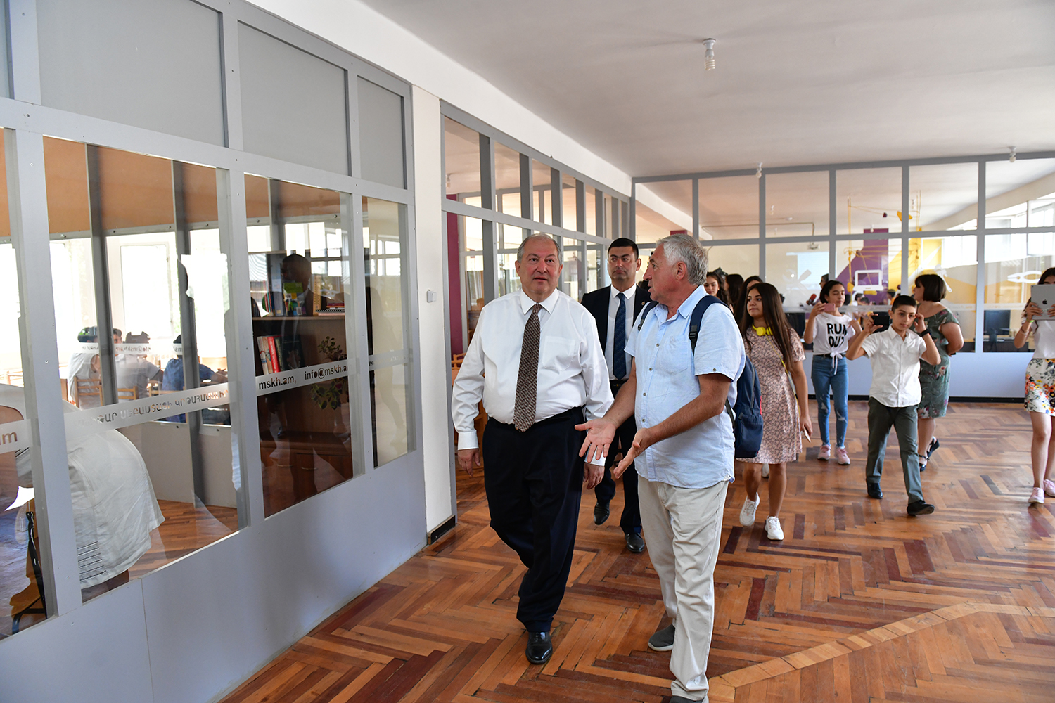 По случаю начала нового учебного года президент Республики Армен Саркисян сегодня посетил образовательный комплекс «Мхитар Себастаци». В сопровождении директора Ашота Блеяна президент совершил экскурсию по образовательному комплексу, ознакомился с основными инфраструктурами, учебными условиями и возможностями.