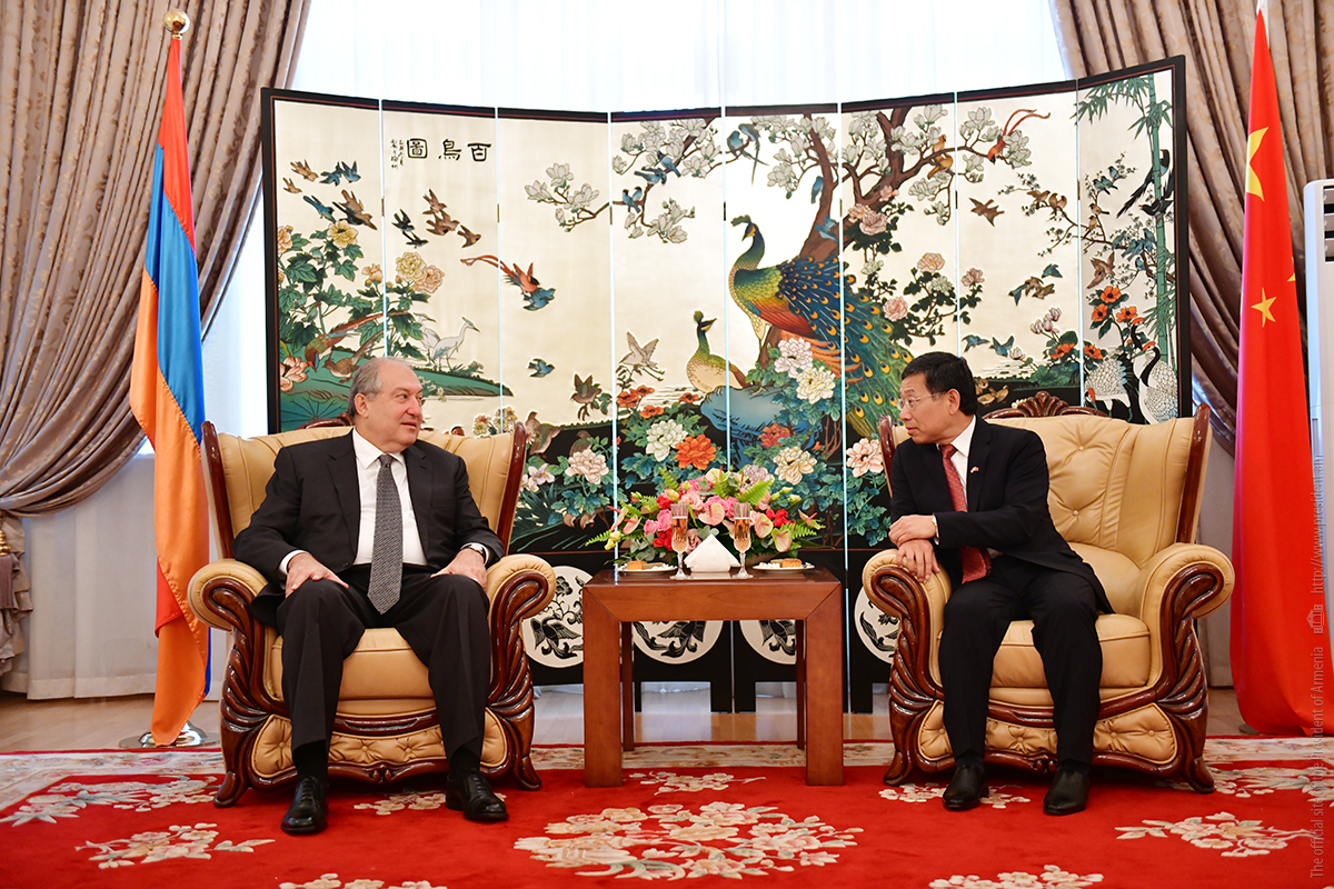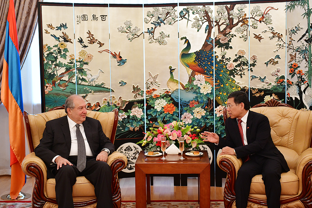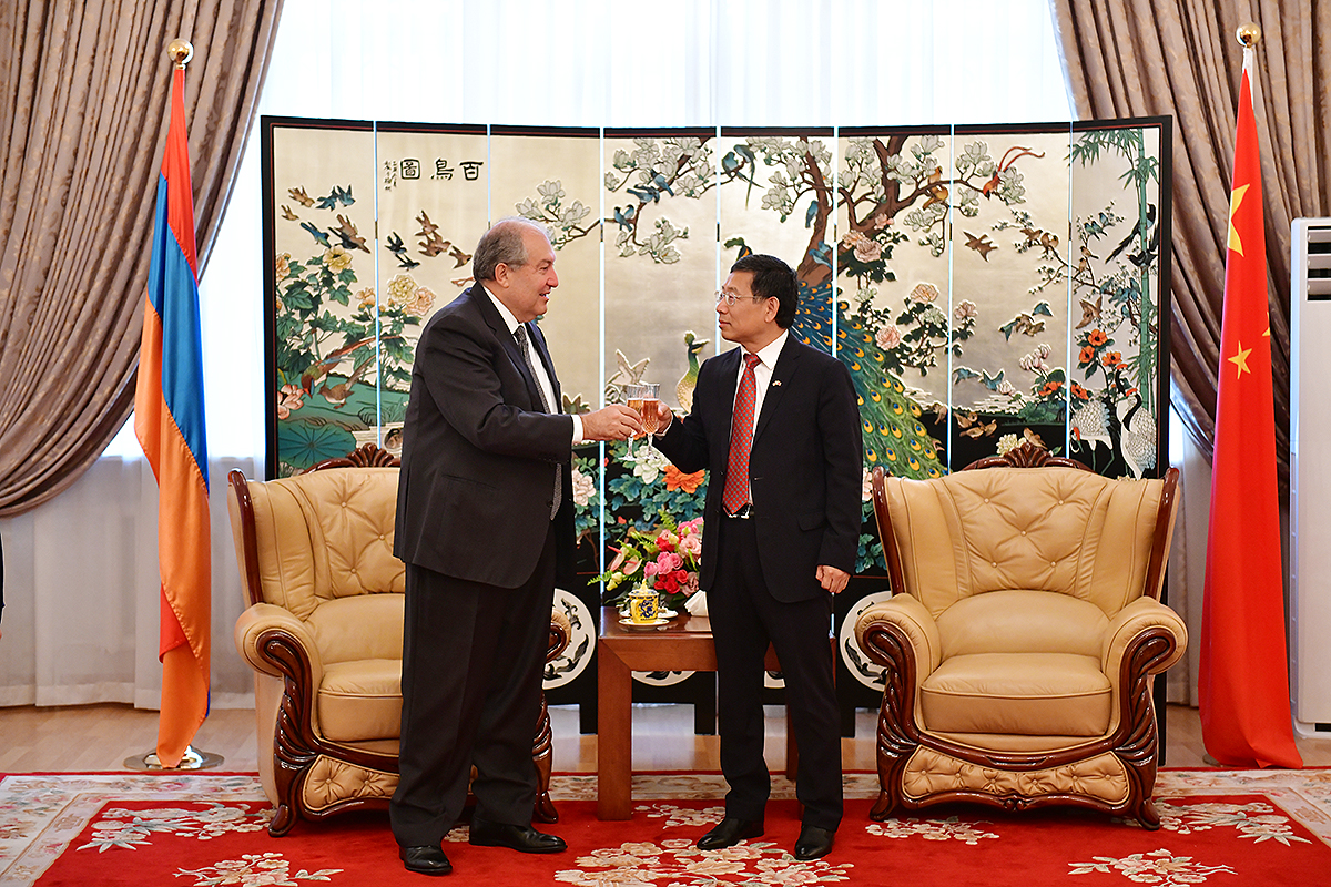 Президент Республики Армен Саркисян сегодня посетил посольство Китайской Народной Республики в Армении. Президент поздравил посла Тянь Эрлуна, персонал посольства и в их лице дружественный народ Китая с предстоящим праздником – Днём образования Китайской Народной Республики.