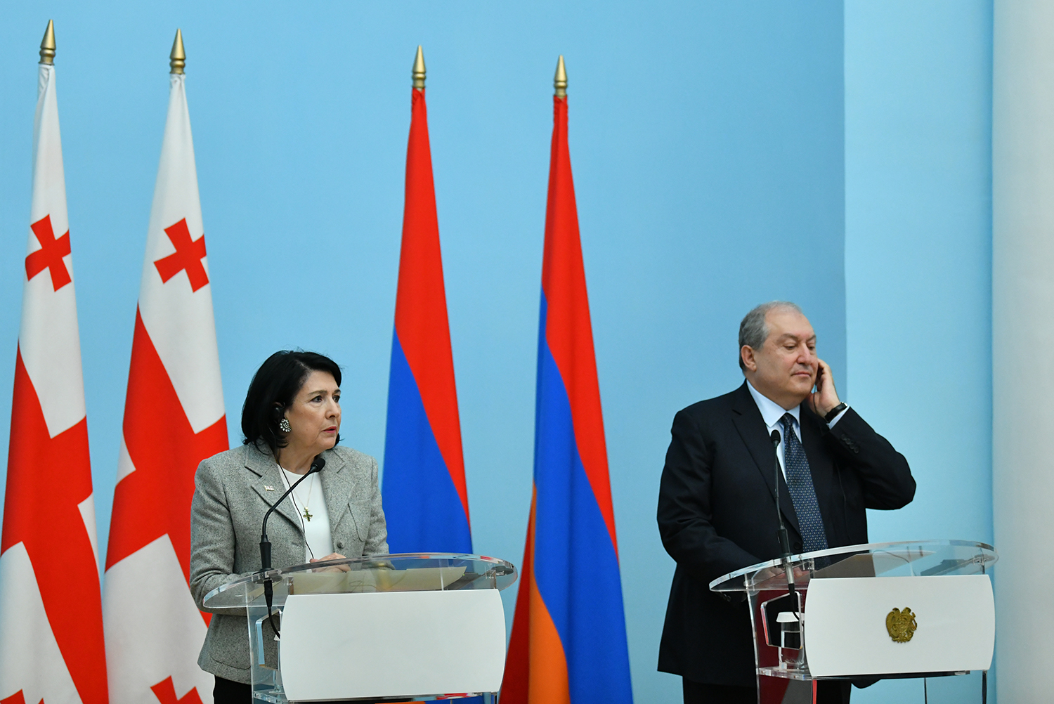 Президенты Республики Армения и Республики Грузия Армен Саркисян и Саломе Зурабишвили подвели итоги переговоров в заявлениях для средств массовой информации.