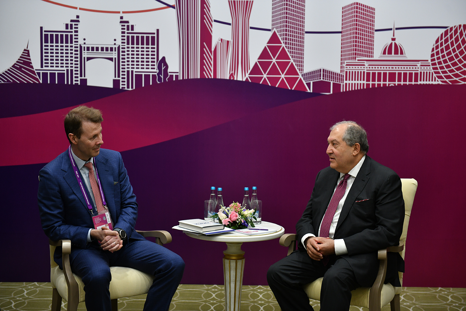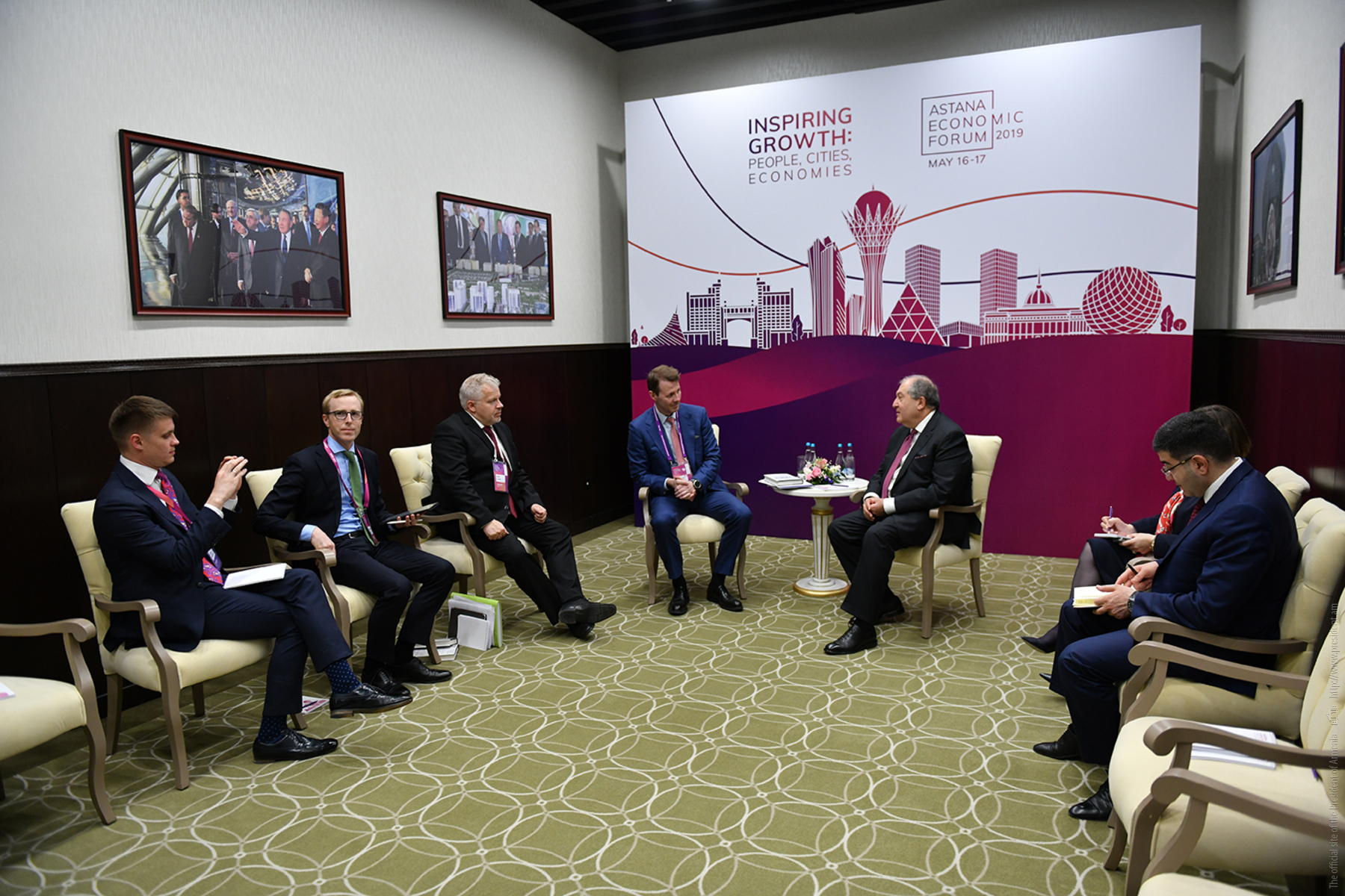 В рамках проходящего в Нур-Султане ежегодного 12-го экономического форума Президент Республики Армения Армен Саркисян встретился с Председателем Совета директоров знаменитой компании Nokia Ристо Силасма.