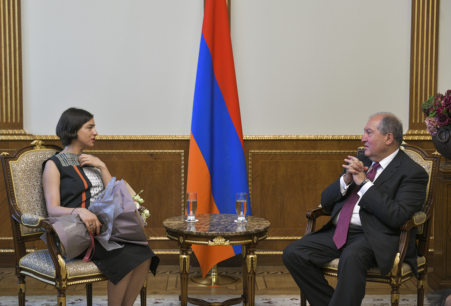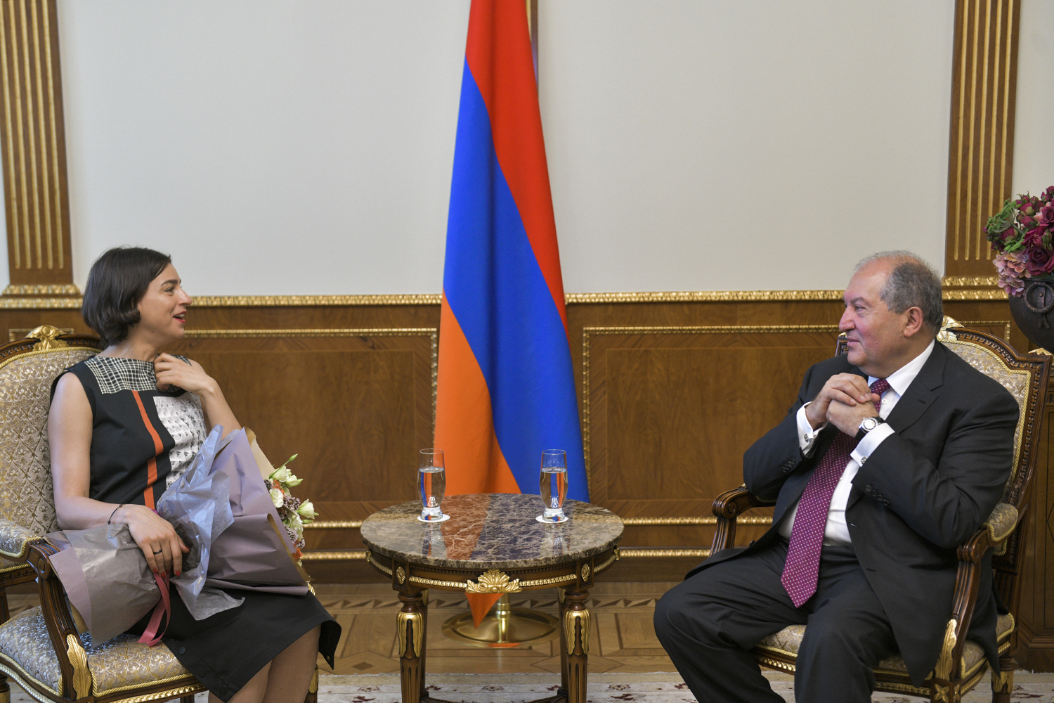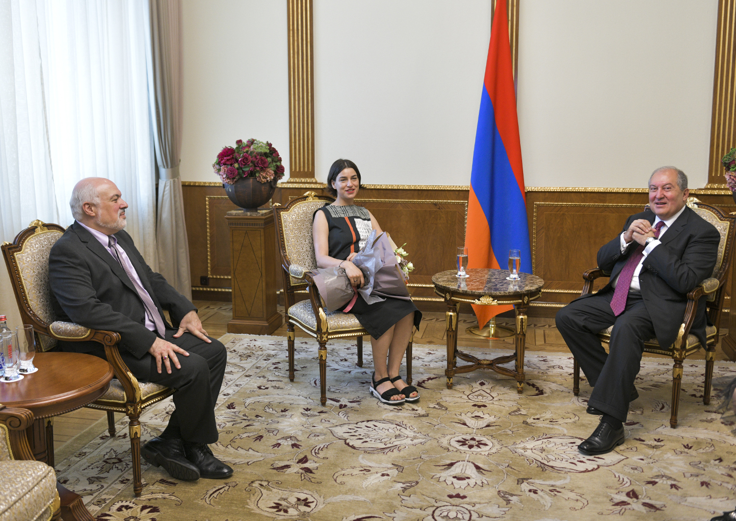 Президент Республики Армен Саркисян сегодня принял всемирно известную певицу, сопрано, лауреата Международной оперной премии 2019г. в номинации «Лучшая оперная певица» Асмик Григорян и художественного руководителя Национального Академического театра оперы и балета имени Александра Спендиаряна Константина Орбеляна.