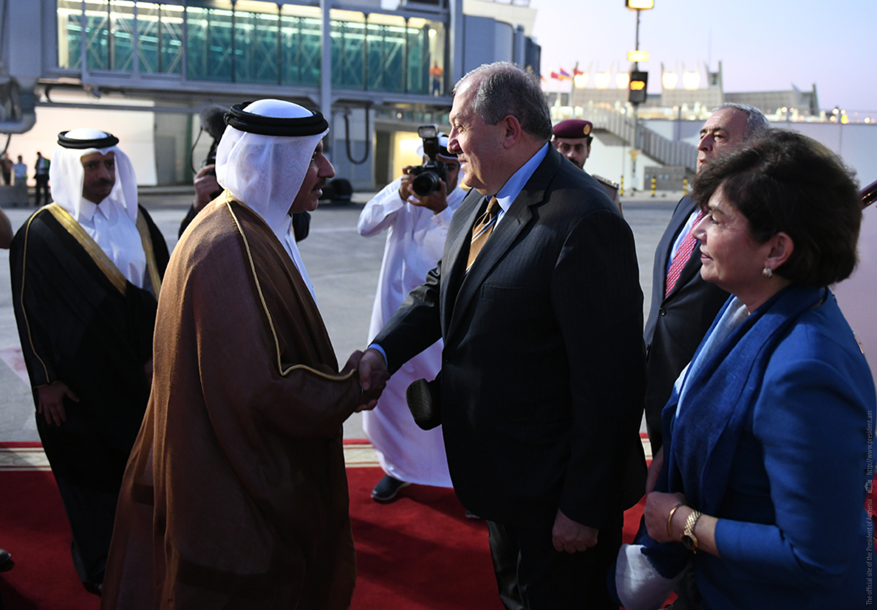 Президент Республики Армения Армен Саркисян с супругой, госпожой Нунэ Саркисян прибыл с официальным визитом в Государство Катар.
