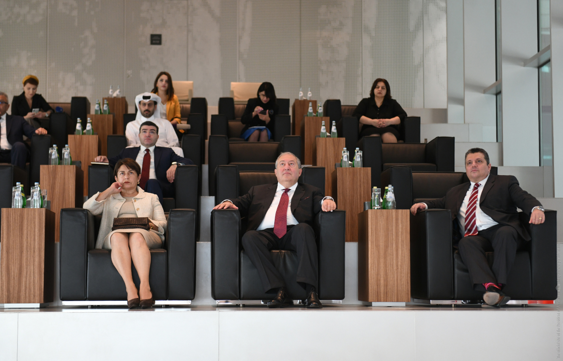 Президенту Армении представили основные направления и структуру деятельности Катарского фонда, реализуемые им программы. Его проинформировали, что Фонд провозгласил своей целью помощь стране в том, чтобы «посредством раскрытия человеческого потенциала превратиться в наукоёмкую экономику». Фонд включает в себя ряд учреждений, в том числе, научно-технический парк, библиотеку, Город Образования. В Городе Образования размещены филиалы ряда авторитетных университетов – Джоджтаунского, Корнельского и других, а также Лондонского университетского колледжа, что создаёт уникальную академическую и научно-исследовательскую модель. Среди известных инициатив фонда – Всемирный инновационный саммит образования, который проводится с 2009 года и является глобальной площадкой представления инноваций и новых подходов в сфере образования.