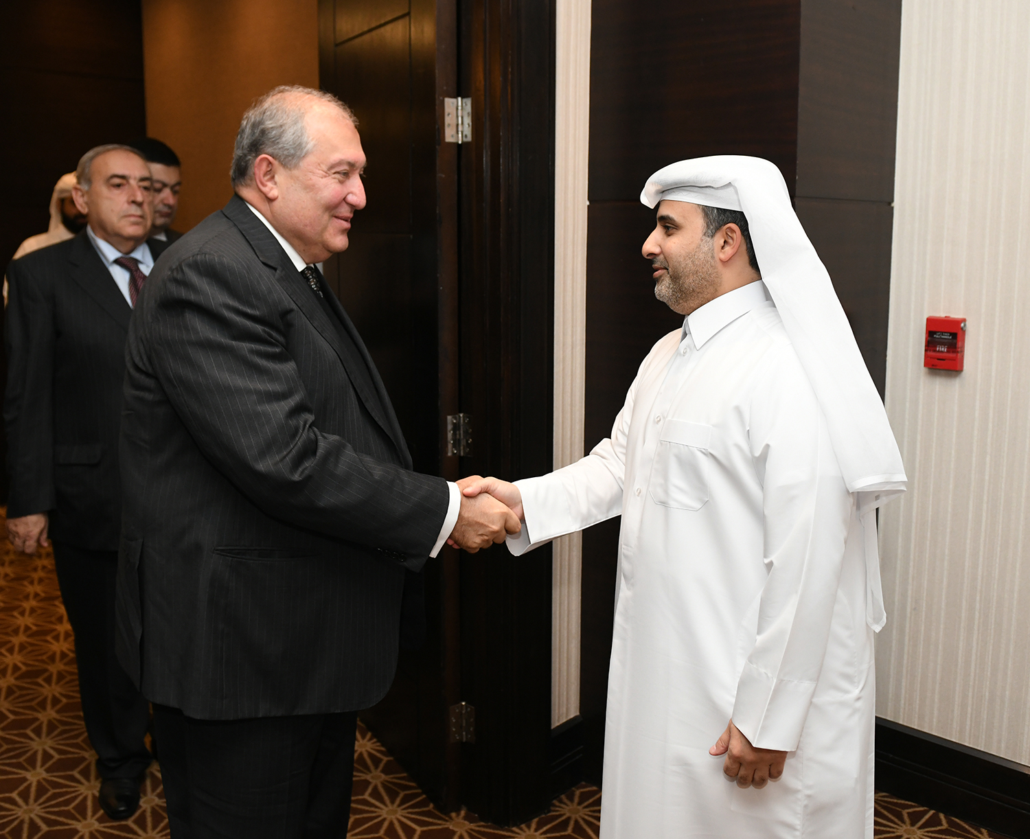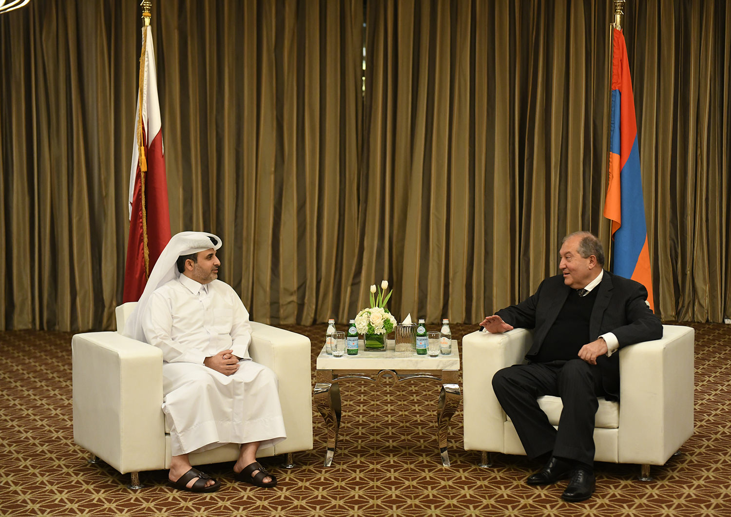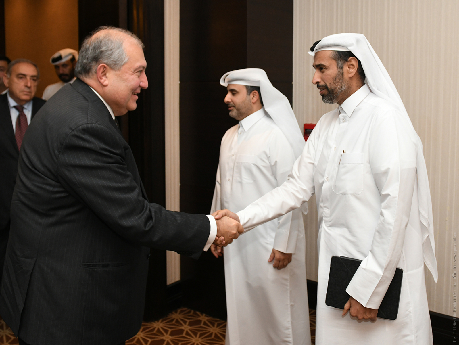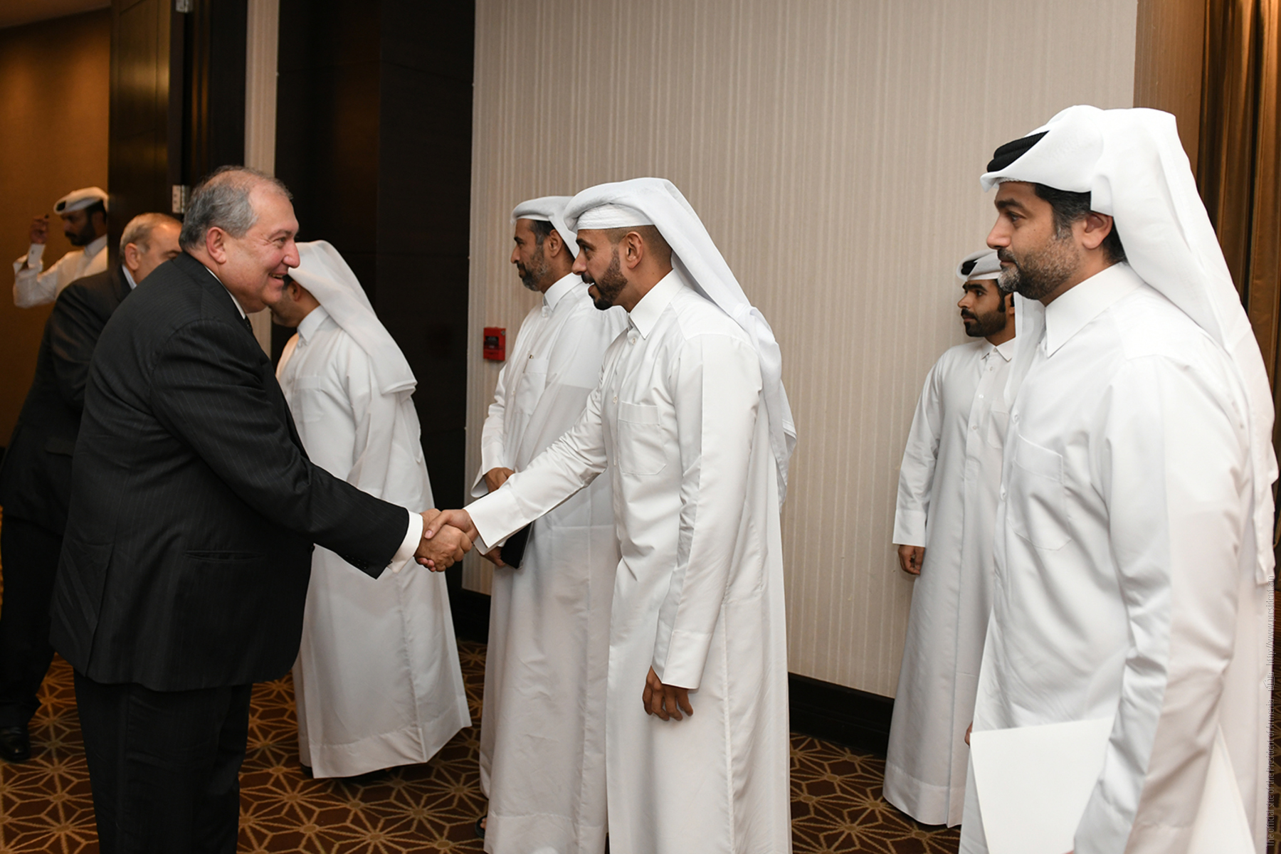 Находящийся с официальным визитом в Государстве Катар Президент Республики Армения Армен Саркисян в Дохе встретился с Министром по делам муниципалитетов и окружающей среды Государства Катар Абдуллой бин Абдулазизом бин Турки аль-Субайе.